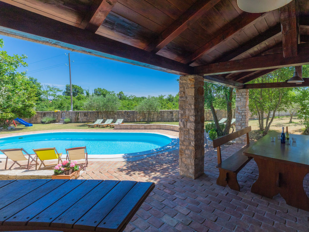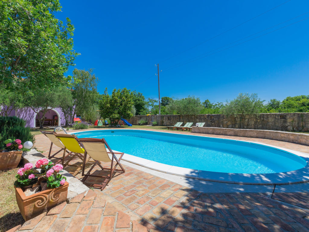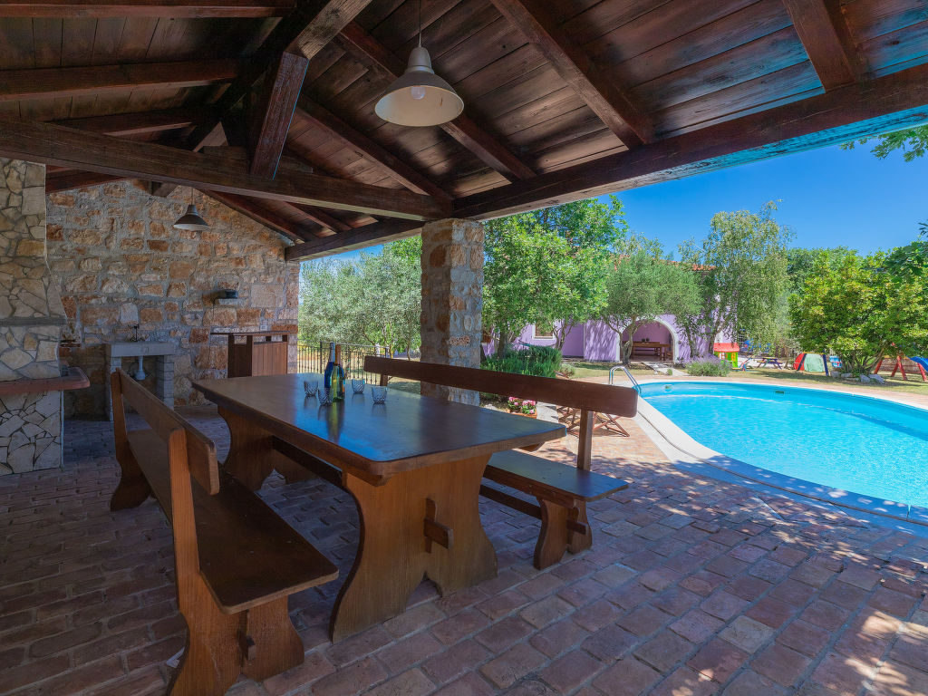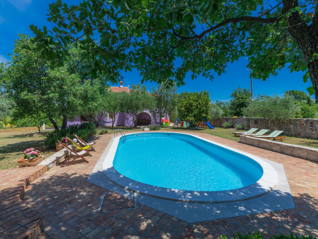 Kinderfreundliche, schöne Villa "Elda". 500 m vom Zentrum von Rakalj, ruhige, erhöhte Lage, 2 km vom Meer, 2 km vom Strand. Zur Alleinbenutzung: Grundstück 2'000 m2 (eingezäunt), Naturgarten, Schwimmbad (10 x 5 m, 140 cm tief, 04.05.-28.09.). Poolhaus mit Dusche und WC, Grill, Kinderspielplatz (Schaukel). Im Hause: Internetzugang, Billard. Zur Verfügung: Fahrräder (2). Parkplatz (überdacht) beim Haus auf dem Grundstück. Einkaufsgeschäft, Restaurant 500 m, Steinstrand 2 km, Felsstrand 2 km. Bitte beachten: Babyausstattung auf Anfrage. Das Schwimmbecken ist ovalförmig.