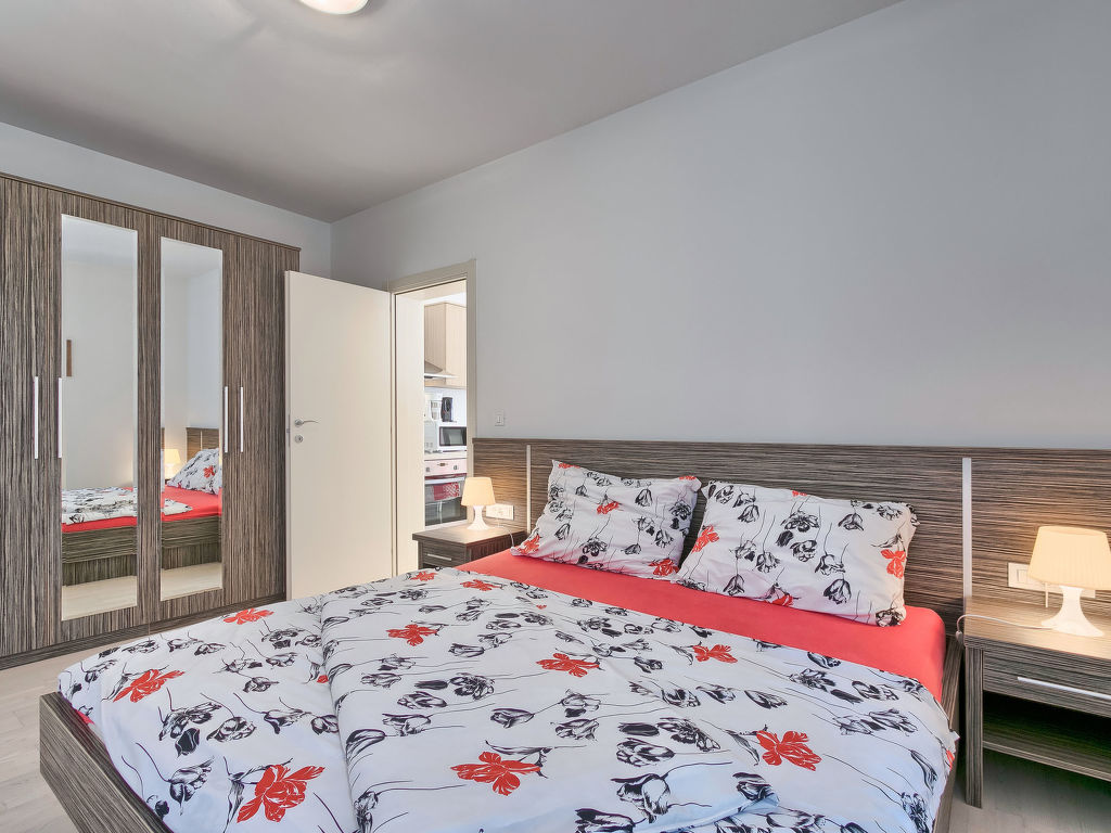 2-Zimmer-Wohnung 42 m2 im 1. Stock. Wohn-/Esszimmer mit 1 Doppeldiwanbett und Sat-TV (Flachbildschirm), Klimaanlage. Ausgang zur Terrasse. 1 Zimmer mit 1 Doppelbett (2 x 80 cm, Länge 200 cm). Offene Küche (2 Glaskeramikherd Platten, Mikrowelle, Tiefkühler). Dusche/WC. Terrasse 6 m2. Terrassenmöbel. Sicht auf den Garten. Zur Verfügung: Internet (Wireless LAN, gratis).