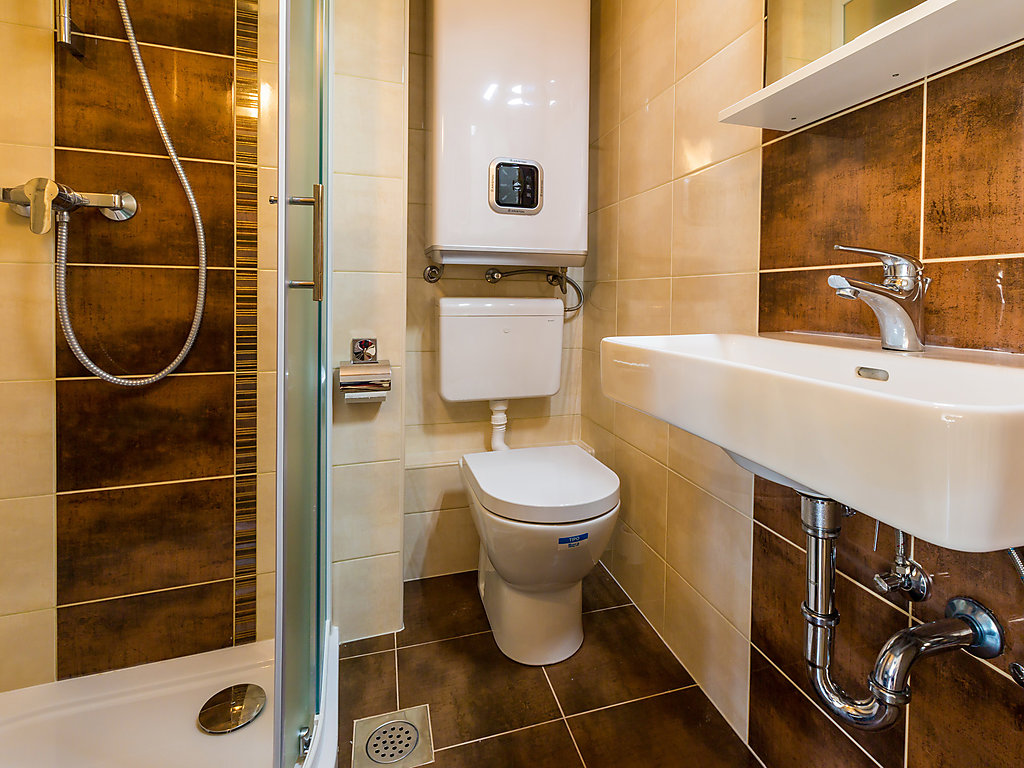 Mehrfamilienhaus "Leko". 130 m vom Zentrum von Novi Vinodolski, sonnige Lage, exzellente Lage: Absolut zentral und dennoch ruhig, 450 m vom Meer, 450 m vom Strand. Zur Mitbenutzung: Schwimmbad eckig (8 x 3 m, 150 cm tief, saisonale Verfügbarkeit: 01.Mai.-15.Okt.). Aussendusche, Gartenmöbel, Grill. Im Hause: Internetzugang, Tischtennis, Tischfussball, Waschmaschine (zur Mitbenutzung, extra). Abholservice vom Flughafen (extra). Schmale Zufahrt bis zum Haus. Parkplatz beim Haus auf dem Grundstück. Einkaufsgeschäft, Supermarkt 130 m, Sandstrand, Steinstrand 650 m, betonierter Strand 450 m. Bitte beachten: Es kann auf Anfrage ein Transfer ab Flughafen zum Ferienobjekt organisiert werden. Private Bootsanlegestelle (extra) auf Anfrage. Parkplatz in 200 m (eingezäunt).