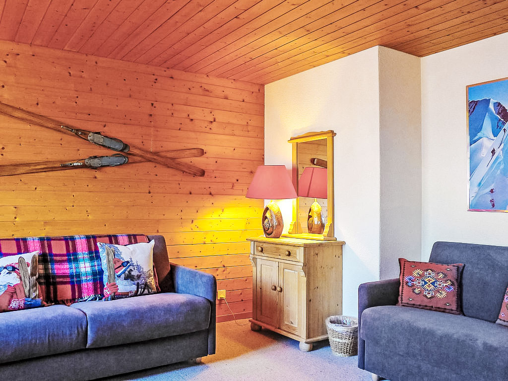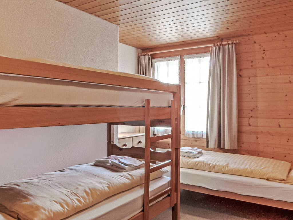 4-Zimmer-Wohnung 108 m2 im 2. Stock. Komfortabel und gemütlich eingerichtet: Wohn-/Esszimmer mit 1 Diwanbett (80 cm, Länge 180 cm), 1 Doppeldiwanbett (140 cm, Länge 180 cm), offenem Kamin, Kabel-TV, Radio und DVD. 2 Zimmer, jedes Zimmer mit 1 Doppelbett (2 x 80 cm, Länge 200 cm), Dusche/WC. 1 Zimmer mit 1 Bett (90 cm, Länge 190 cm), 1 x 2 Etagenbetten (90 cm, Länge 190 cm). Kleine Küche (4 Kochplatten, Backofen, Geschirrspüler, Toaster, Wasserkocher, elektrische Kaffeemaschine, Kapseln für die Kaffeemaschine (Nespresso) extra, Fondue Set (Käse)). Bad/WC. Heizung. Balkon. Schöne Sicht auf die Berge. Zur Verfügung: Bügeleisen, Haartrockner, Holz (extra). Internet (Wireless LAN, gratis). Bitte beachten: Nichtraucher-Unterkunft.