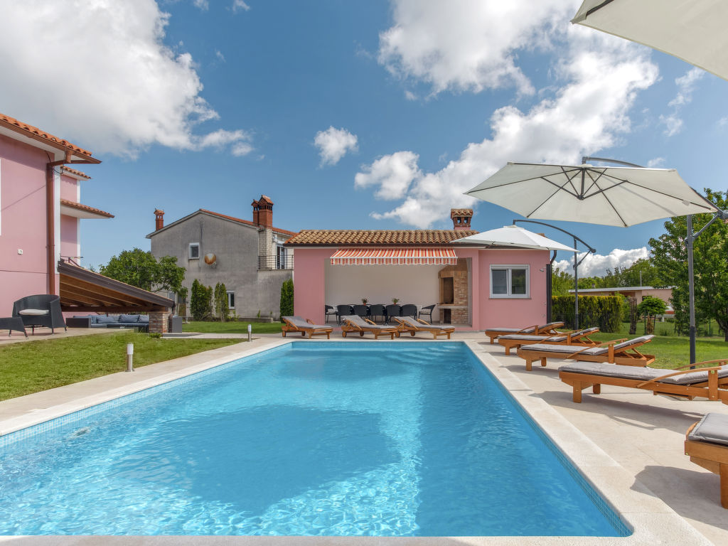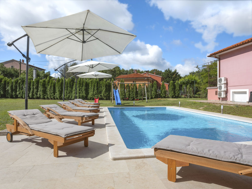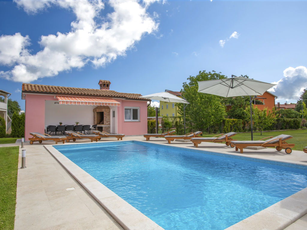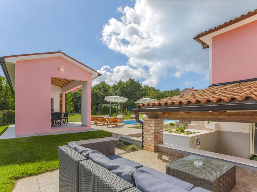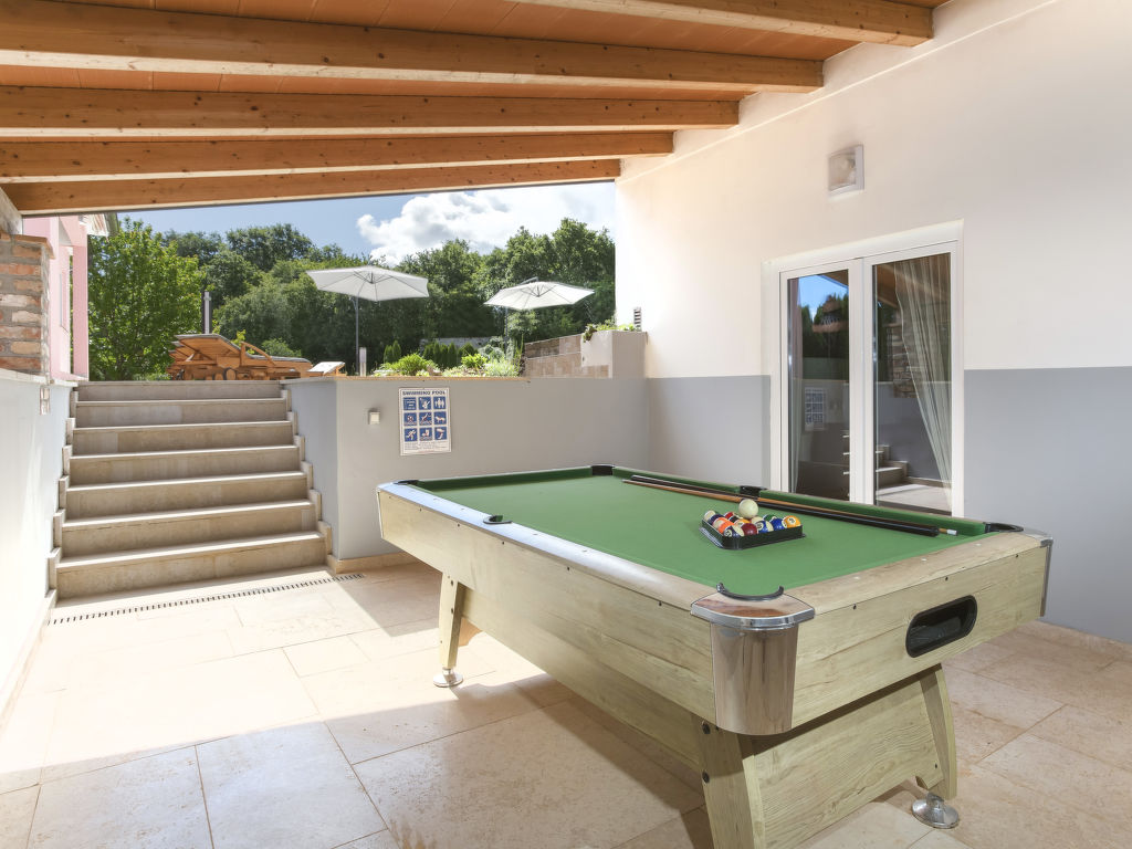 Einfamilienhaus "Dordana (LBN440)", auf 2 Stockwerken. 3 km vom Zentrum von Labin, am Ortsrand, 8 km vom Zentrum von Rabac, in einem Wohnquartier, 8 km vom Meer. Zur Alleinbenutzung: Grundstück 2'000 m2 (eingezäunt), Garten Pflanzen, Schwimmbad eckig (9 x 4 m, 40 m2, 135 cm tief, 02.05.-10.10.) mit Innentreppe. Aussendusche, Tischtennis, Badminton, Terrasse (14 m2), Gartenmöbel, Grill. Im Hause: Internetzugang, Billard, Waschmaschine. Parkplatz (für 6 Autos) auf dem Grundstück. Einkaufsgeschäft 800 m, Kieselstrand 8 km. Jacht-Hafen 8 km. Zur Alleinbenutzung:Sommerküche (2 Kochplatten, Kühlschrank). Die Einheit besteht aus dem Haupthaus und einer Ferienwohnung, die zusammen als Einheit vermietet werden.