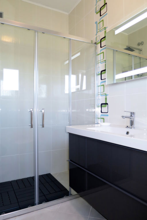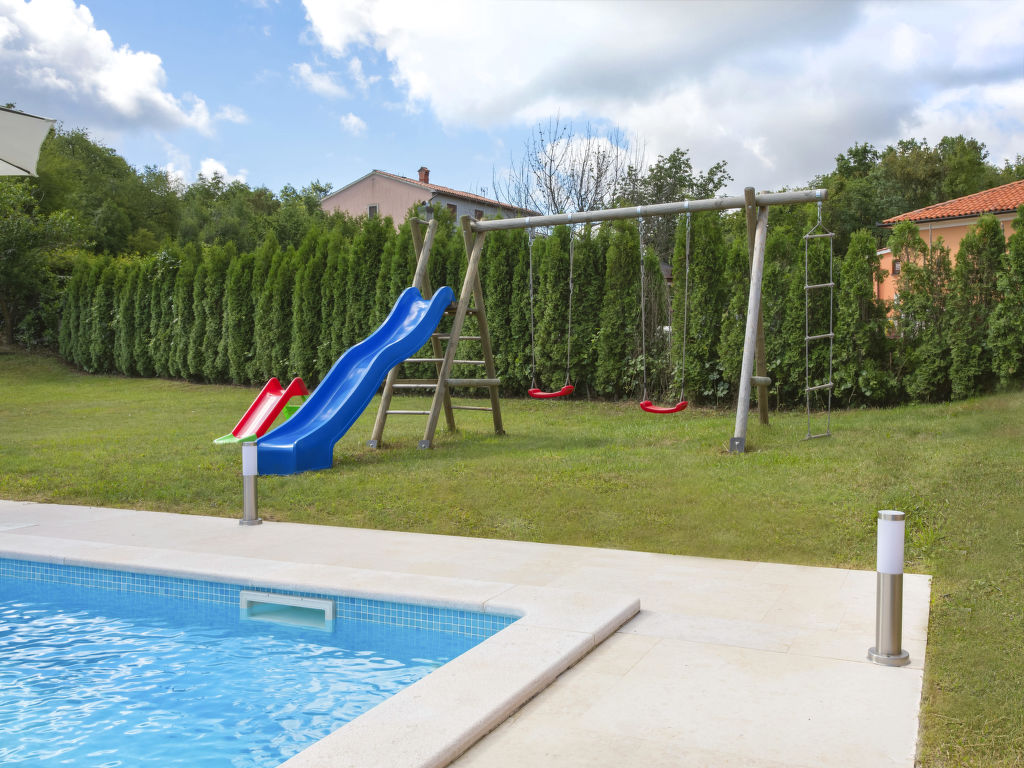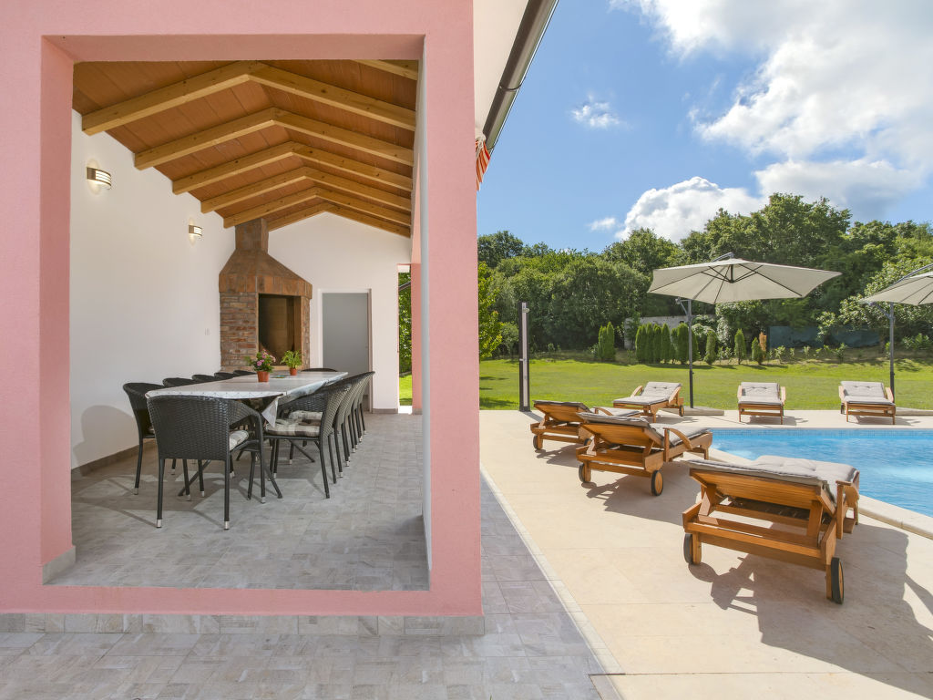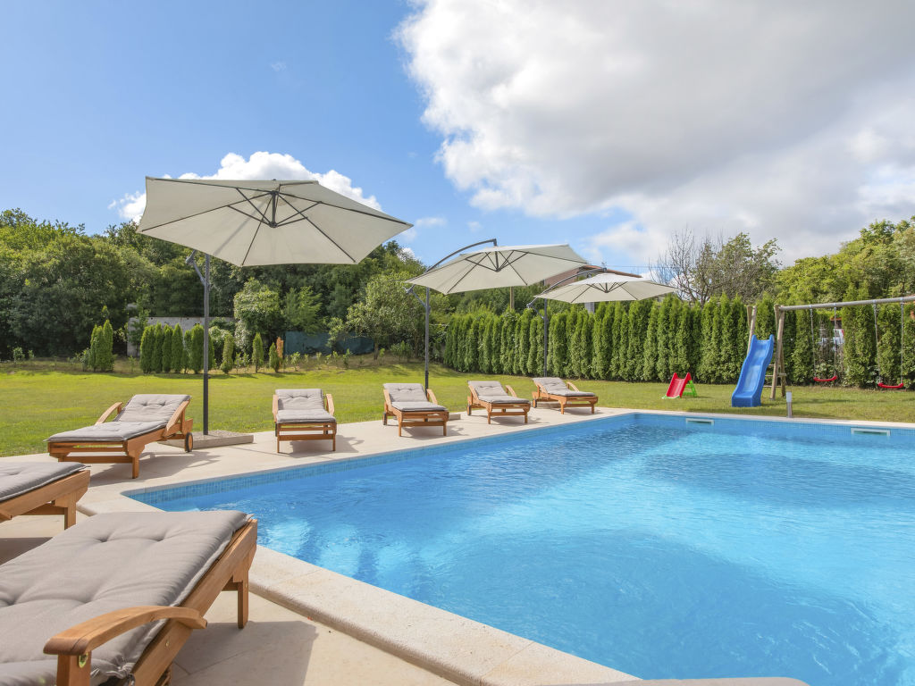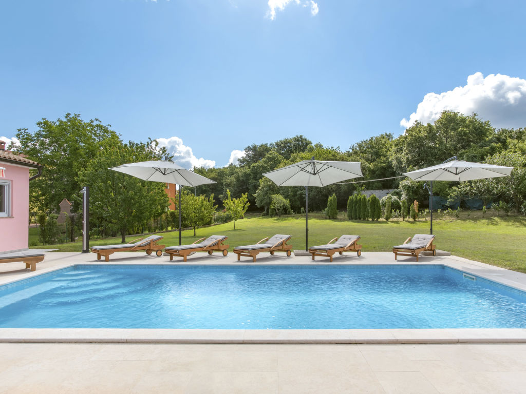 Einfamilienhaus "Dordana (LBN440)", auf 2 Stockwerken. 3 km vom Zentrum von Labin, am Ortsrand, 8 km vom Zentrum von Rabac, in einem Wohnquartier, 8 km vom Meer. Zur Alleinbenutzung: Grundstück 2'000 m2 (eingezäunt), Garten Pflanzen, Schwimmbad eckig (9 x 4 m, 40 m2, 135 cm tief, 02.05.-10.10.) mit Innentreppe. Aussendusche, Tischtennis, Badminton, Terrasse (14 m2), Gartenmöbel, Grill. Im Hause: Internetzugang, Billard, Waschmaschine. Parkplatz (für 6 Autos) auf dem Grundstück. Einkaufsgeschäft 800 m, Kieselstrand 8 km. Jacht-Hafen 8 km. Zur Alleinbenutzung:Sommerküche (2 Kochplatten, Kühlschrank). Die Einheit besteht aus dem Haupthaus und einer Ferienwohnung, die zusammen als Einheit vermietet werden.
