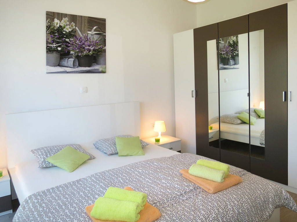 7-Zimmer-Haus 198 m2 auf 2 Stockwerken. Wohn-/Esszimmer mit Sat-TV (Flachbildschirm), Klimaanlage. Ausgang zur Terrasse. 1 Zimmer mit 2 Betten. Offene Küche (4 Kochplatten, Backofen, Geschirrspüler, Toaster, Wasserkocher, Mikrowelle, Tiefkühler, elektrische Kaffeemaschine). Dusche/WC. Obergeschoss: 1 Zimmer mit 2 Betten und Klimaanlage. 2 Zimmer, jedes Zimmer mit 1 franz. Bett (160 cm), Klimaanlage. (Aussentreppe) 1 Zimmer mit 1 Doppelbett. 1 Zimmer mit 1 franz. Bett (160 cm). Offene Küche (4 Kochplatten, Backofen, Mikrowelle, elektrische Kaffeemaschine). Bad/WC, 3 Duschen/WC. Heizung. Terrasse. Terrassenmöbel, Liegestühle. Sicht auf das Schwimmbad. Zur Verfügung: Bügeleisen, Babybett. Internet (Wireless LAN, gratis). Bitte beachten: Nichtraucher-Haus. Das Haus besteht aus einem Wohn-/Esszimmer, offener Küche, Schlafzimmer im Erdgeschoss und 3 Schlafzimmern im ersten Stock. Die Ferienwohnung im ersten Stock hat einen separaten Eingang und ist über eine Außentreppe erreichbar. Die Wohnung besteht aus 2 Schlafzimmern und einer offenen Küche. Bei Belegung mit weniger Personen als der maximalen Personenzahl stehen nicht alle Wohneinheiten zur Verfügung.