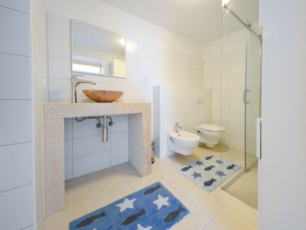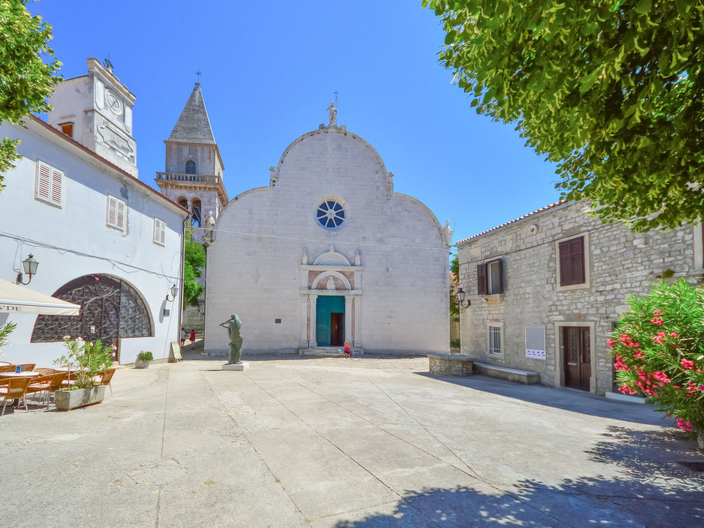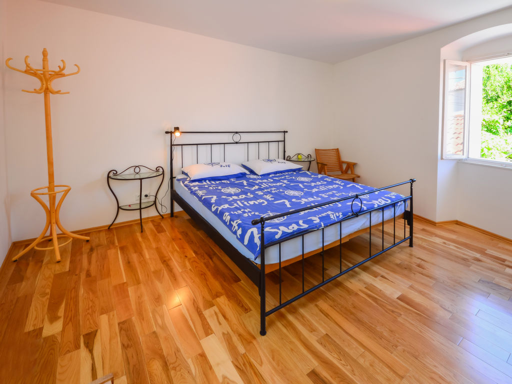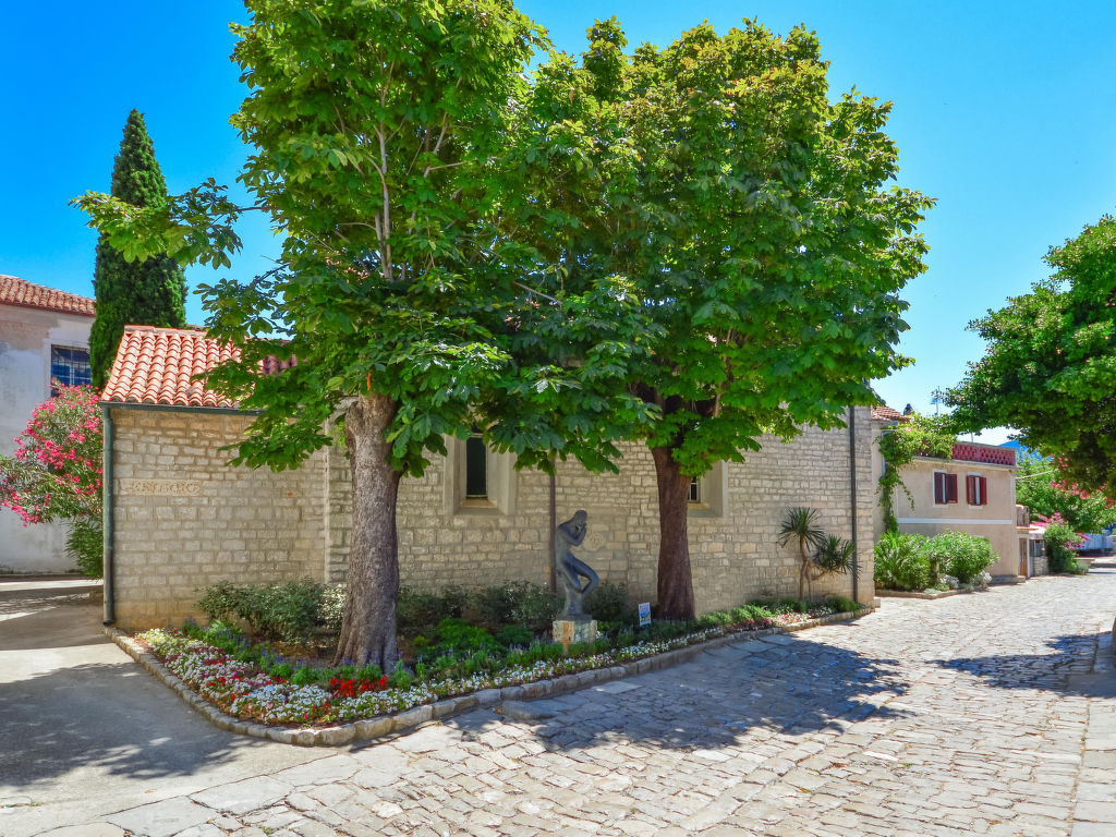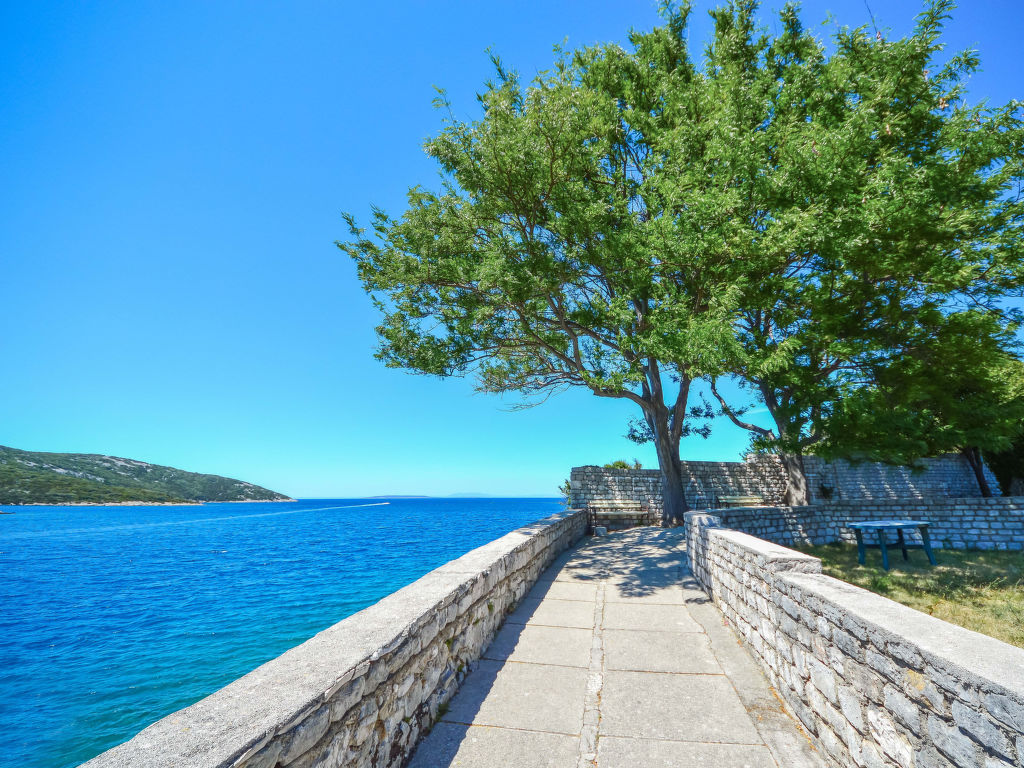 Einfamilienhaus "Dubravka", auf 2 Stockwerken. Im Ortszentrum von Osor, 20 km vom Zentrum von Mali Lošinj, 35 km vom Zentrum von Cres, 100 m vom Meer, 200 m vom Strand, im Grünen. Zur Alleinbenutzung: Grundstück 220 m2 (eingezäunt). Aussendusche, Terrasse (64 m2), Gartenmöbel, Grill. Im Hause: Waschmaschine. Öffentliche Parkplätze 150 m. Einkaufsgeschäft 100 m, Restaurant 150 m, Kieselstrand, betonierter Strand 200 m.