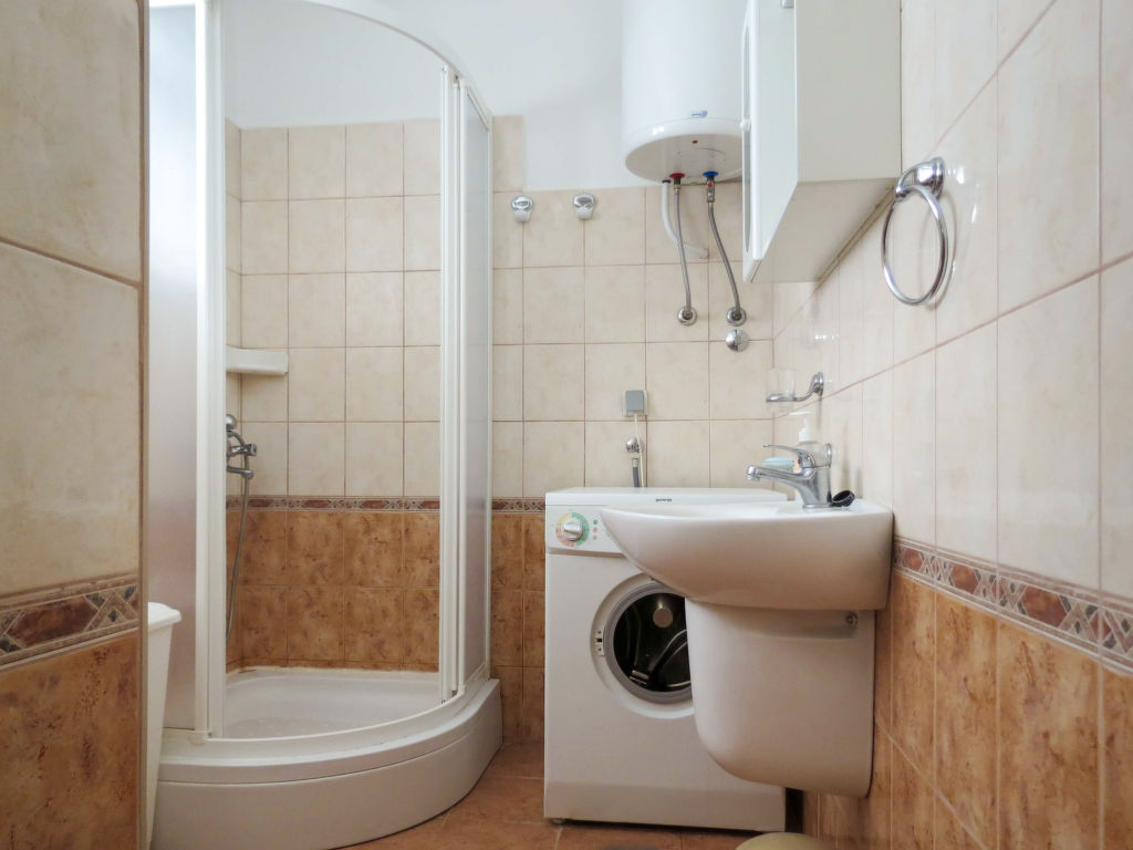 4-Zimmer-Haus 105 m2 auf 2 Stockwerken. Schön und gemütlich eingerichtet: 1 Zimmer 35 m2 mit 3 Betten (90 cm, Länge 200 cm), Esstisch, Sat-TV und Klimaanlage. Offene Küche (4 Kochplatten). Dusche/WC. Obergeschoss: (Aussentreppe) Wohn-/Esszimmer 20 m2 mit Sat-TV (Flachbildschirm), Klimaanlage. Ausgang zur Terrasse. 1 Zimmer mit 2 Betten (90 cm, Länge 200 cm). 1 Zimmer mit 1 Bett (90 cm, Länge 200 cm), 1 Doppelbett (2 x 90 cm, Länge 200 cm). Ausgang zum Balkon. Küche (4 Kochplatten, Geschirrspüler, Mikrowelle, Tiefkühler, elektrische Kaffeemaschine). Dusche/WC, sep. WC. Balkon 5 m2, Terrasse 25 m2, Terrasse 5 m2 teilweise überdacht. Terrassenmöbel. Herrliche Sicht auf das Meer. Zur Verfügung: Waschmaschine, Babybett. Internet (Wireless LAN, gratis).