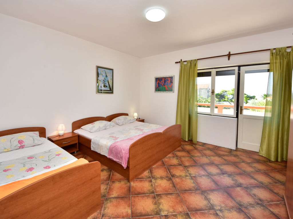 Zweifamilienhaus "Ljiljana". 500 m vom Zentrum, alleinstehende, ruhige Lage, 350 m vom Meer, im Grünen. Zur Mitbenutzung: Grundstück 4'000 m2, Garten mit Bäumen, Wiese, Obstgarten. Sitzplatz, Gartenmöbel, Grill, Kinderspielplatz (Schaukel, Sandkasten). Im Hause: Internetzugang. Parkplatz beim Haus. Einkaufsgeschäft 200 m, Kieselstrand, Steinstrand 350 m.