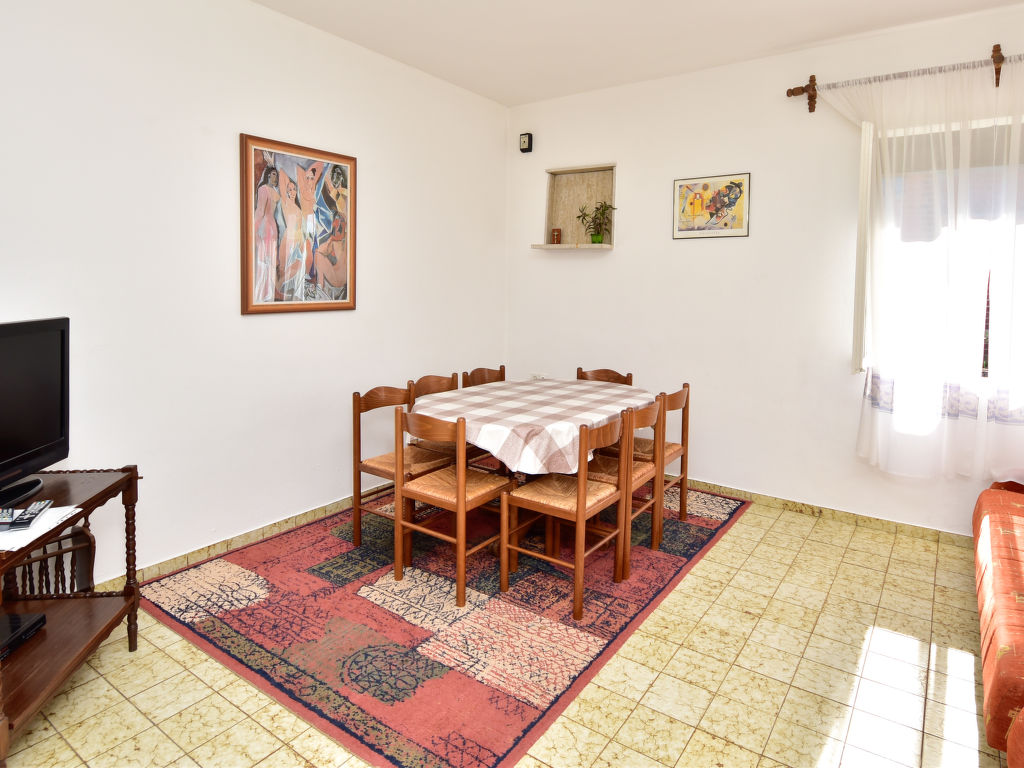 4-Zimmer-Wohnung 110 m2 im 1. Stock. Grosses Wohn-/Esszimmer mit Sat-TV und Klimaanlage. 1 Doppelzimmer. 2 Zimmer, jedes Zimmer mit 1 Bett und 1 Doppelbett. Ausgang zur Terrasse. Kochnische (4 Kochplatten, Backofen). 2 Bäder/WC. Grosse Terrasse 40 m2. Terrassenmöbel. Eingeschränkte Fernsicht auf das Meer. Zur Verfügung: Babybett (extra). Internet (Wireless LAN, gratis).