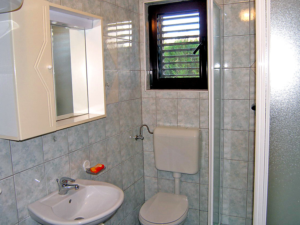 Doppelhaus "Ana". Ausserhalb des Ortes, 1 km vom Zentrum von Vir, 400 m vom Meer, 400 m vom Strand, im Grünen. Zur Mitbenutzung: Garten mit Pflanzen und Bäumen, Obstgarten, Schwimmbad eckig (10 x 6 m, 150 - 170 cm tief, saisonale Verfügbarkeit: 04.Mai.-14.Sep.) mit Innentreppe. Aussendusche, Grill, Kinderspielplatz. Im Hause: Internetzugang. Parkplatz beim Haus auf dem Grundstück. Einkaufsgeschäft 500 m, Restaurant 1 km, Steinstrand 400 m. Das Haus befindet sich auf dem Grundstueck vom Haus HR4050.120.