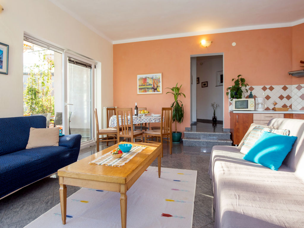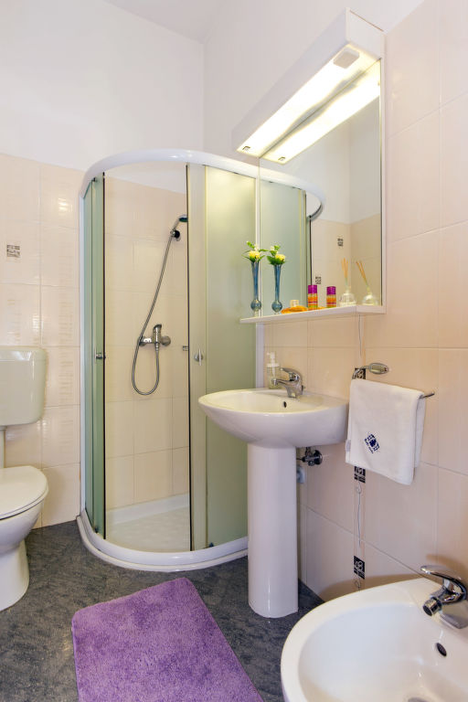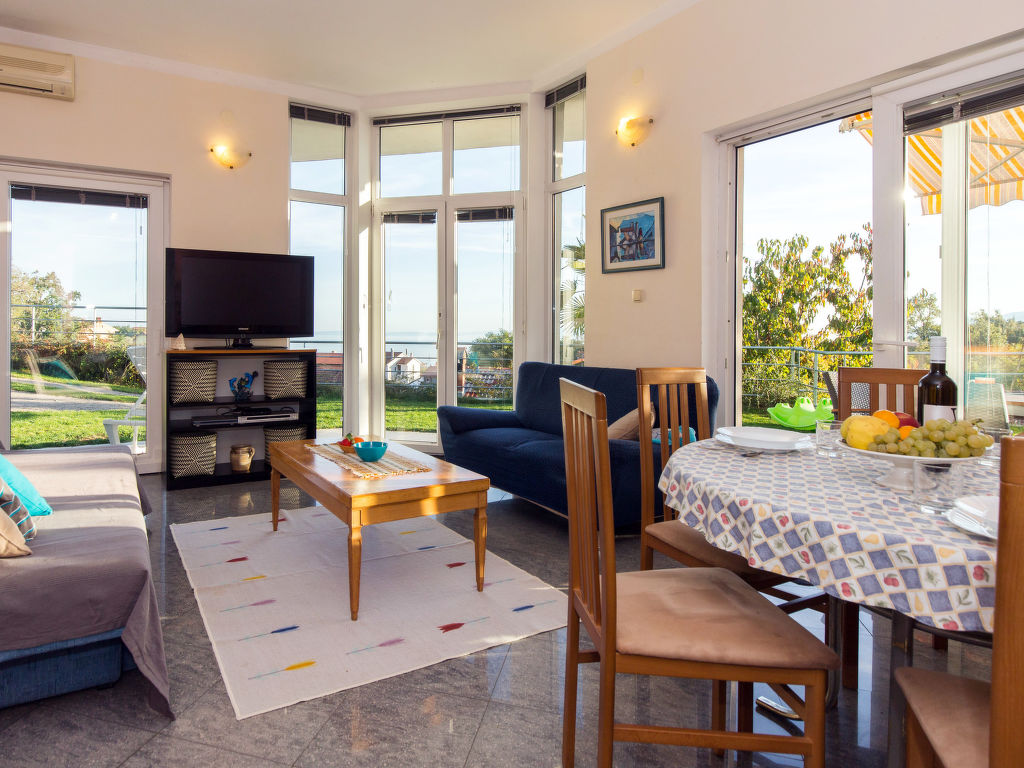 Appartementhaus "Bella Vista". 6 km vom Zentrum von Opatija, 11 km vom Zentrum von Ičići, am Hang, 3 km vom Meer, 3 km vom Strand, in einer Sackgasse, im Grünen. Zur Mitbenutzung: Grundstück 1'000 m2 mit Blumen und Bäumen, Schwimmbad beheizt (7 x 4 m, 130 - 170 cm tief, saisonale Verfügbarkeit: 27.Mar.-05.Nov.). Aussendusche, Terrasse, Grill. Im Hause: Internetzugang, Waschmaschine, Wäschetrockner (zur Mitbenutzung, extra). Parkplatz beim Haus auf dem Grundstück. Einkaufsgeschäft 200 m, Felsstrand 3 km.