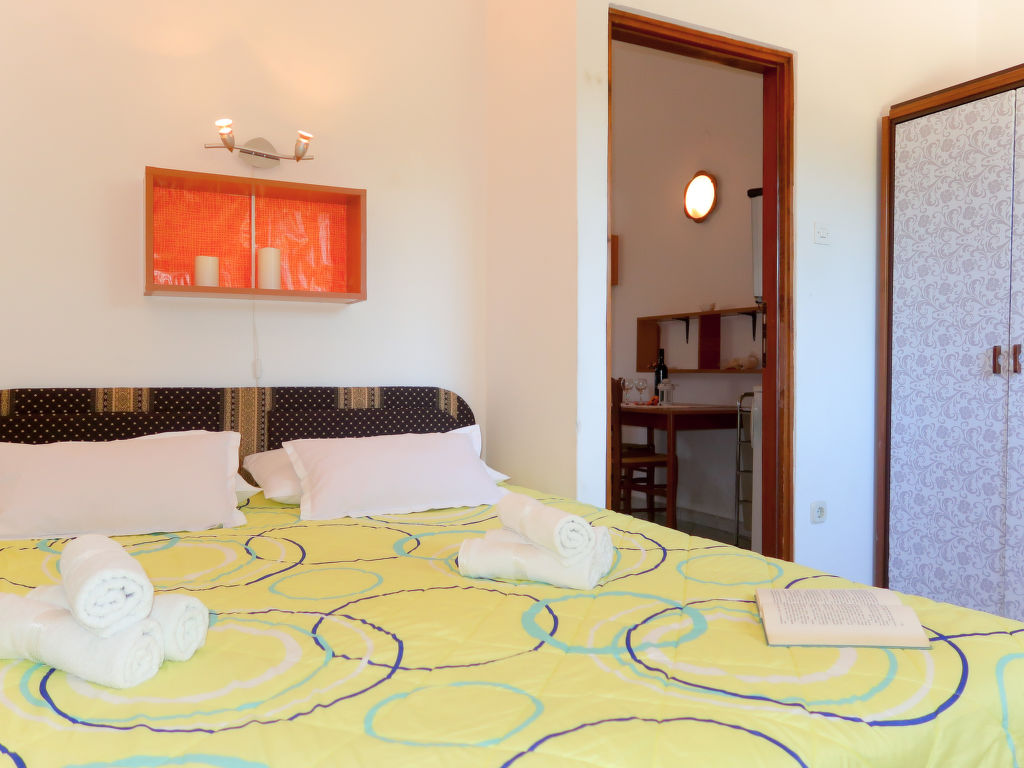 "Radmila (MLK142)", 1-Zimmer-Wohnung 21 m2 im 1. Stock. 1 Zimmer mit 1 franz. Bett (160 cm, Länge 200 cm). Wohnküche (2 Kochplatten, Geschirrspüler, Toaster, Wasserkocher, Mikrowelle, elektrische Kaffeemaschine) mit Esstisch, Sat-TV und Klimaanlage. Dusche/WC. Zur Verfügung: Waschmaschine. Internet (Wireless LAN, gratis). Bitte beachten: Nichtraucher-Haus. Maximal 1 Haustier/Hund erlaubt.