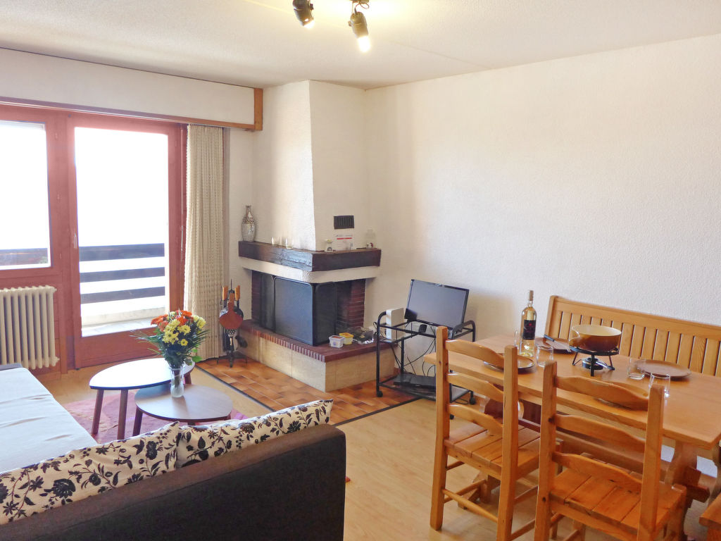 2-Zimmer-Wohnung 38 m2 im 1. Stock, Südlage. Schön und gemütlich eingerichtet: Wohn-/Esszimmer mit 1 Diwanbett und offenem Kamin (nur Deko), Digital-TV, Internationale TV-Sender, Radio, CD und DVD. Ausgang zum Balkon. 1 Zimmer mit 1 franz. Bett. Offene Küche (4 Kochplatten, Backofen, Mikrowelle, elektrische Kaffeemaschine, Fondue Set (Chinoise, Käse)). Bad, sep. WC. Südlage. Terrassenmöbel. Herrliche Sicht auf die Berge und das Tal. Zur Verfügung: Internet (Wireless LAN). Parkplatz. Maximal 1 kleines Haustier/Hund erlaubt.