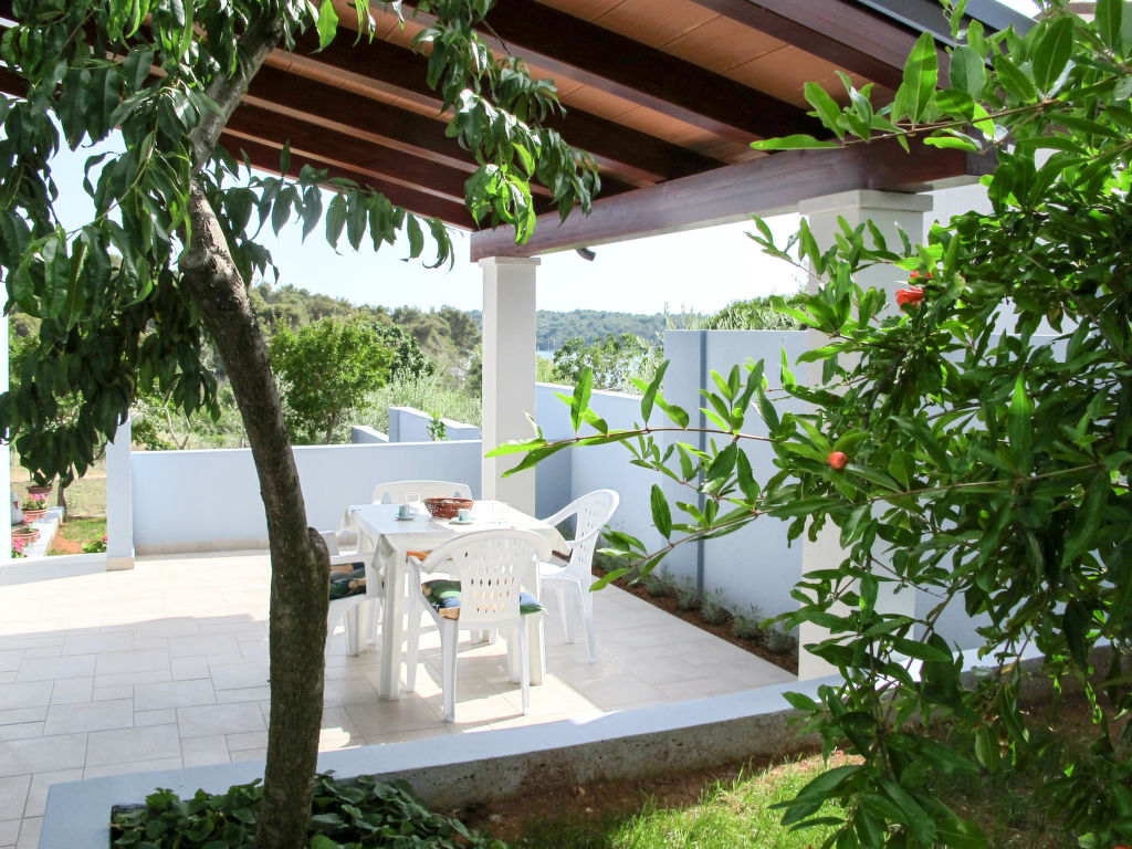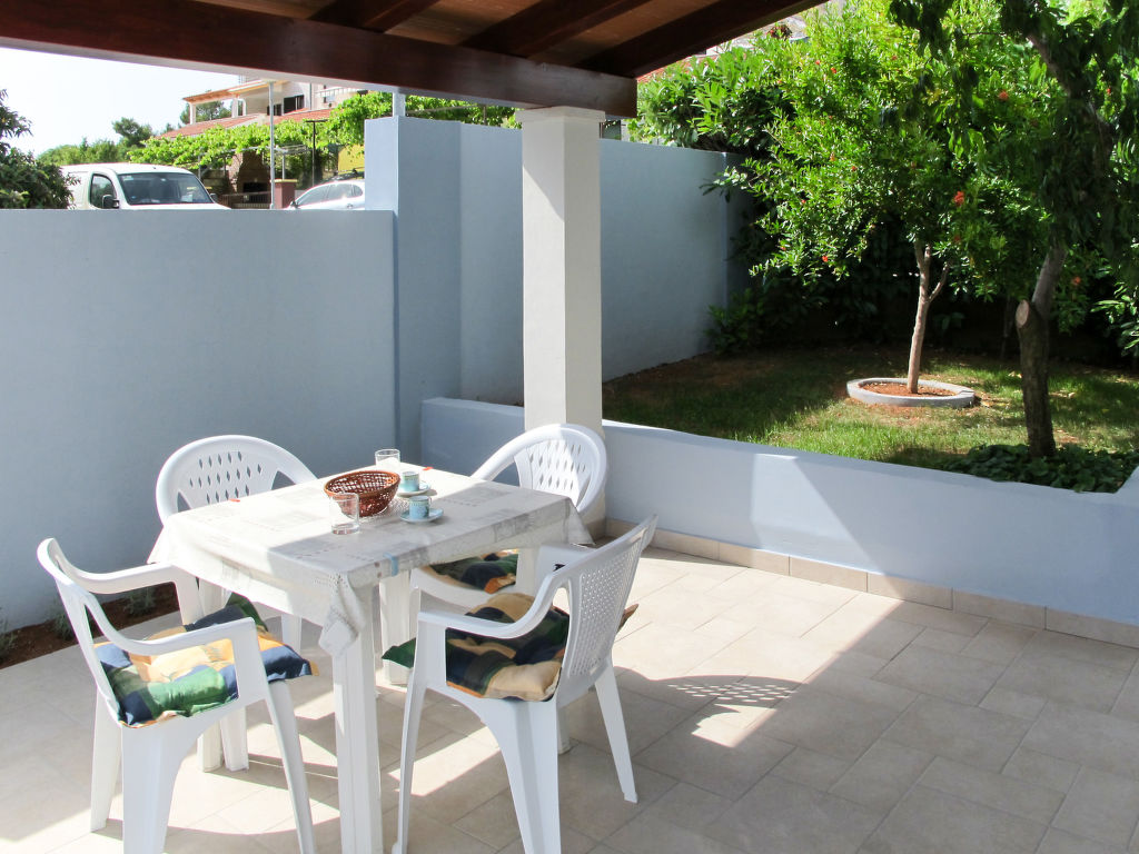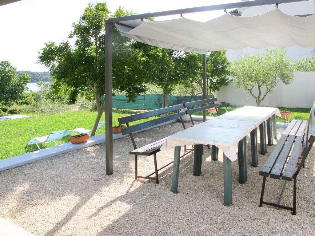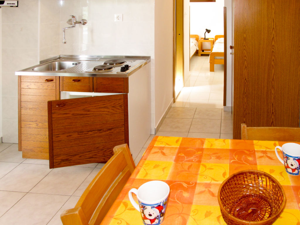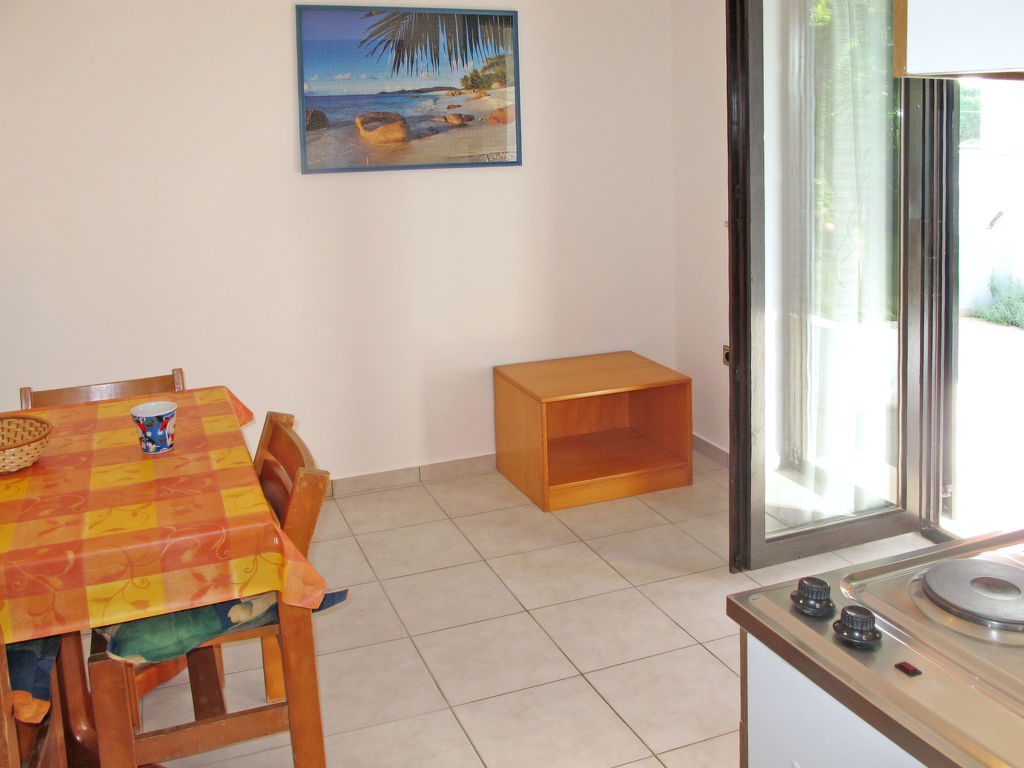 1-Zimmer-Wohnung 22 m2, im Erdgeschoss. Studio mit 2 Betten, Esstisch, Sat-TV und Klimaanlage. Ausgang zur Terrasse. Offene Küche (2 Kochplatten, elektrische Kaffeemaschine). Dusche/WC. Klimaanlage, Warmluftheizung. Terrasse 20 m2. Terrassenmöbel. Sicht auf das Meer. Zur Verfügung: Internet (Wireless LAN, extra). Bitte beachten: Nichtraucher-Haus. Maximal 1 Haustier/Hund erlaubt.