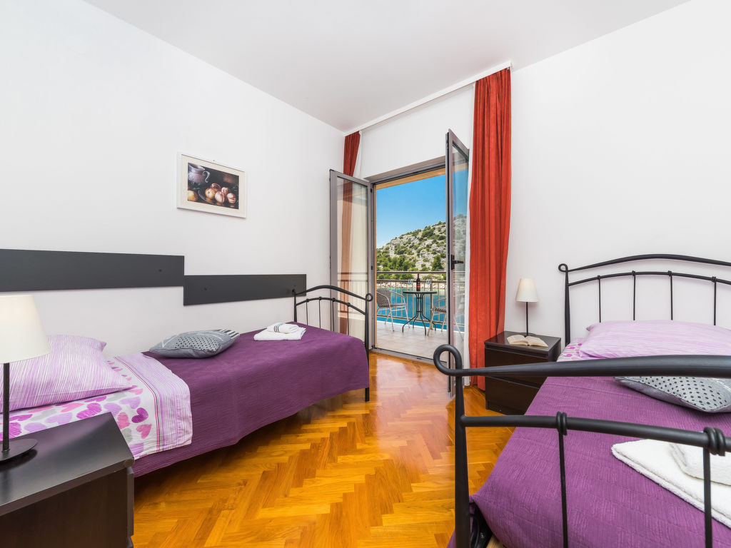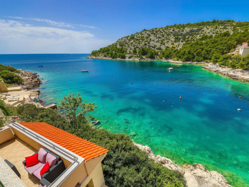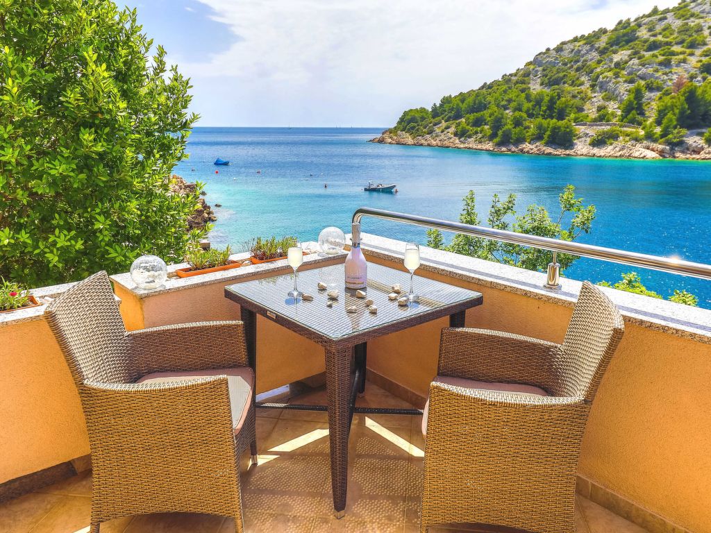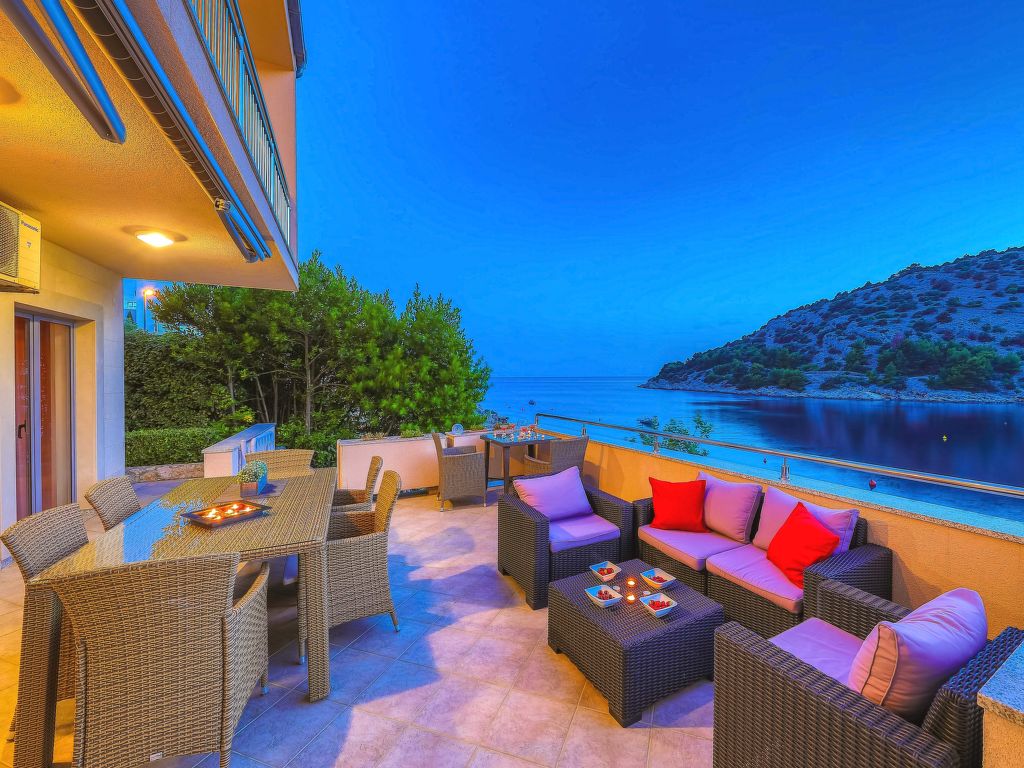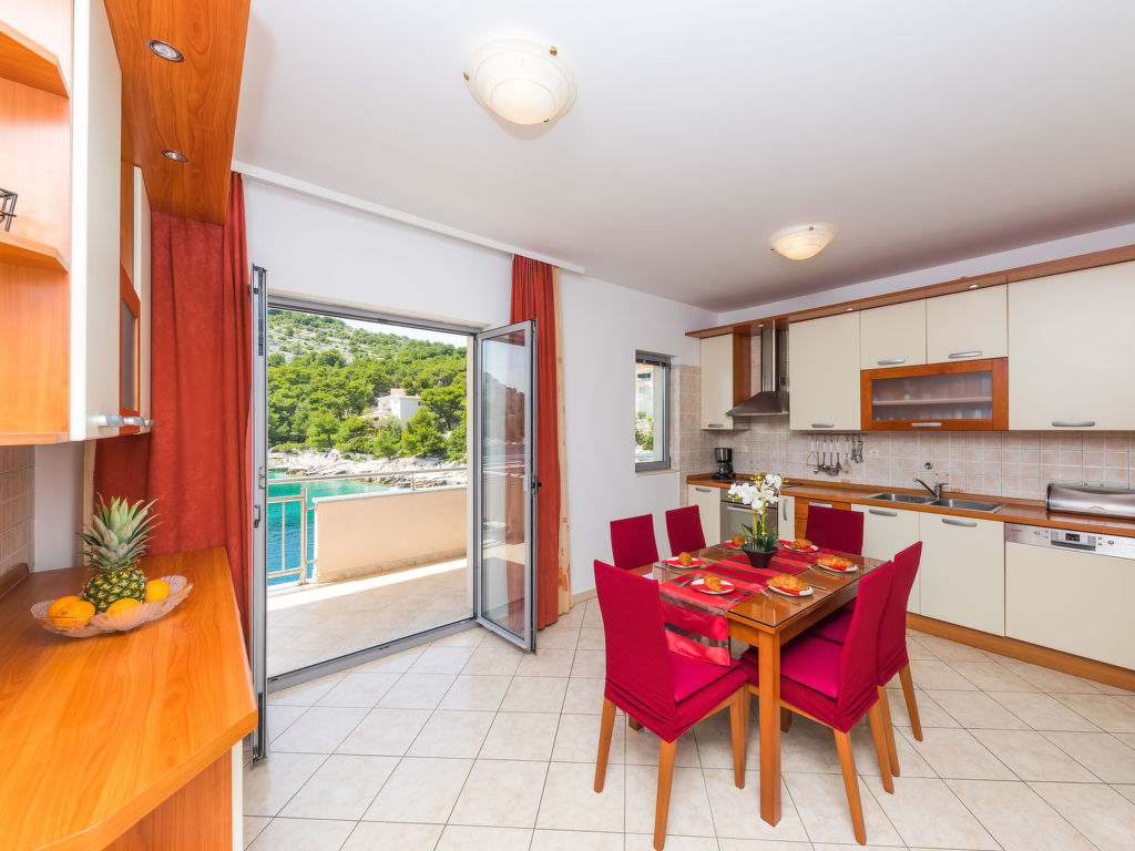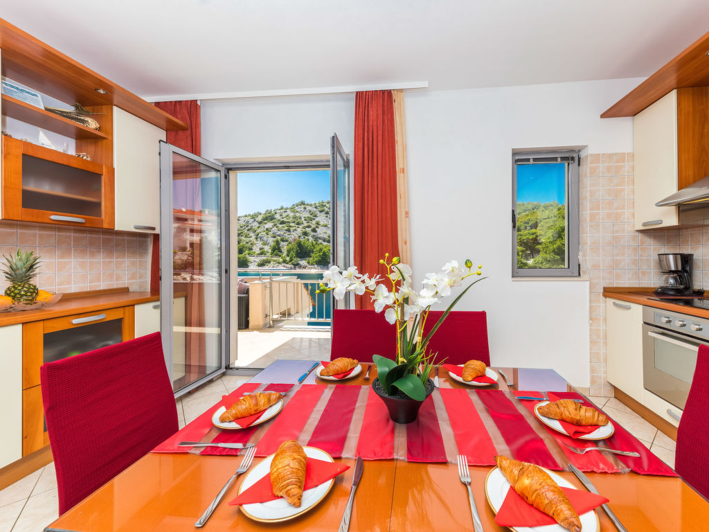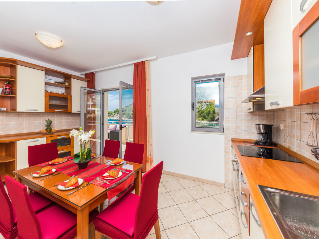 5-Zimmer-Haus 180 m2 auf 3 Stockwerken, Südlage. Geschmackvoll und gemütlich eingerichtet: Wohnzimmer mit Sat-TV (Flachbildschirm), Klimaanlage. Ausgang zur Terrasse. Esszimmer. Offene Küche (4 Kochplatten, Backofen, Geschirrspüler). Sep. WC. Obergeschoss: 2 Zimmer, jedes Zimmer mit 1 Doppelbett (2 x 80 cm, Länge 200 cm). Ausgang zur Terrasse. 1 Zimmer mit 2 Betten (90 cm, Länge 200 cm). Ausgang zur Terrasse. Bad/WC. Dachgeschoss: 1 Zimmer, Deckenhöhe 120 - 370 cm mit 1 Bett (90 cm, Länge 190 cm), 1 franz. Bett (160 cm, Länge 200 cm). Ausgang zum Balkon. Dusche/WC. Balkon 2 m2, Terrasse 40 m2, überdacht, 2 Terrassen 10 m2. Terrassenmöbel. Herrliche Sicht auf das Meer. Zur Verfügung: Waschmaschine, Babybett. Internet (Wireless LAN, gratis). Parkplatz (überdacht, 3 Autos). Bitte beachten: Private Bootsanlegestelle.