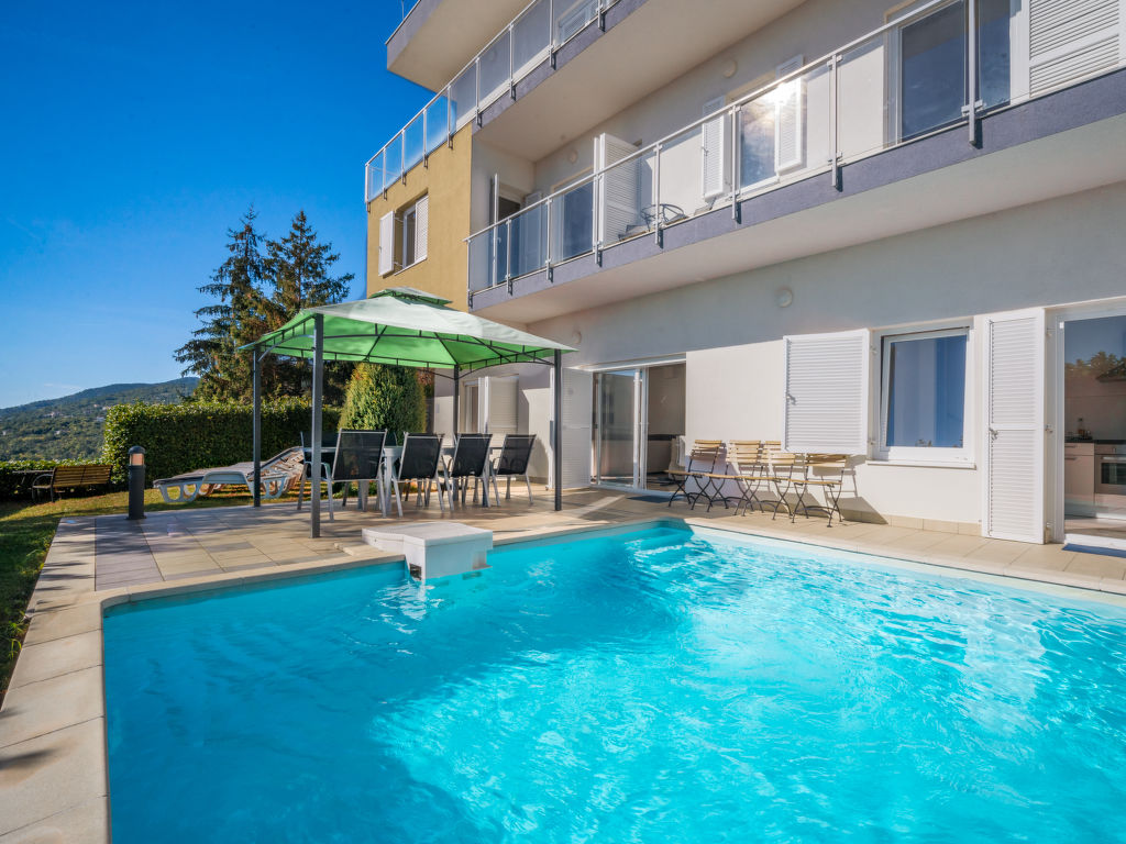 Poljane (Ičići) 9 km von Opatija: Modernes Doppelhaus "Branko", 302 m.ü.M., auf 3 Stockwerken. Oberhalb von Ičići, im Weiler Sv. Petar, 6.2 km vom Zentrum von Ičići, sonnige Lage, 6 km vom Meer, in einer Sackgasse, im Grünen. Zur Alleinbenutzung: Rasen 100 m2, Schwimmbad (20 m2, 160 cm tief, 11.05.-21.09.) mit Innentreppe. Terrasse (30 m2), Gartenmöbel, Grill. Im Hause: Internetzugang, Waschmaschine. Zufahrt bis zum Haus (50 m Naturweg). Parkplatz beim Haus auf dem Grundstück, Einzelgarage. Einkaufsgeschäft 2.1 km, Restaurant 1.3 km, Steinstrand 6 km, Strandbad 6 km, betonierter Strand 6 km. Jacht-Hafen 6.2 km, Tennis 4.2 km, Wanderwege ab Haus 200 m. Nahe gelegene Sehenswürdigkeiten: Nature park Učka 8 km. Der Eigentümer kann die Lieferung von Fertiggerichten, Lebensmitteln und andreren Haushaltsgegenständen arrangieren (auf Anfrage, extra). Das Objekt ist vollständig desinfiziert. Desinfektionsmittel und OP-Masken im Objekt erhältlich.