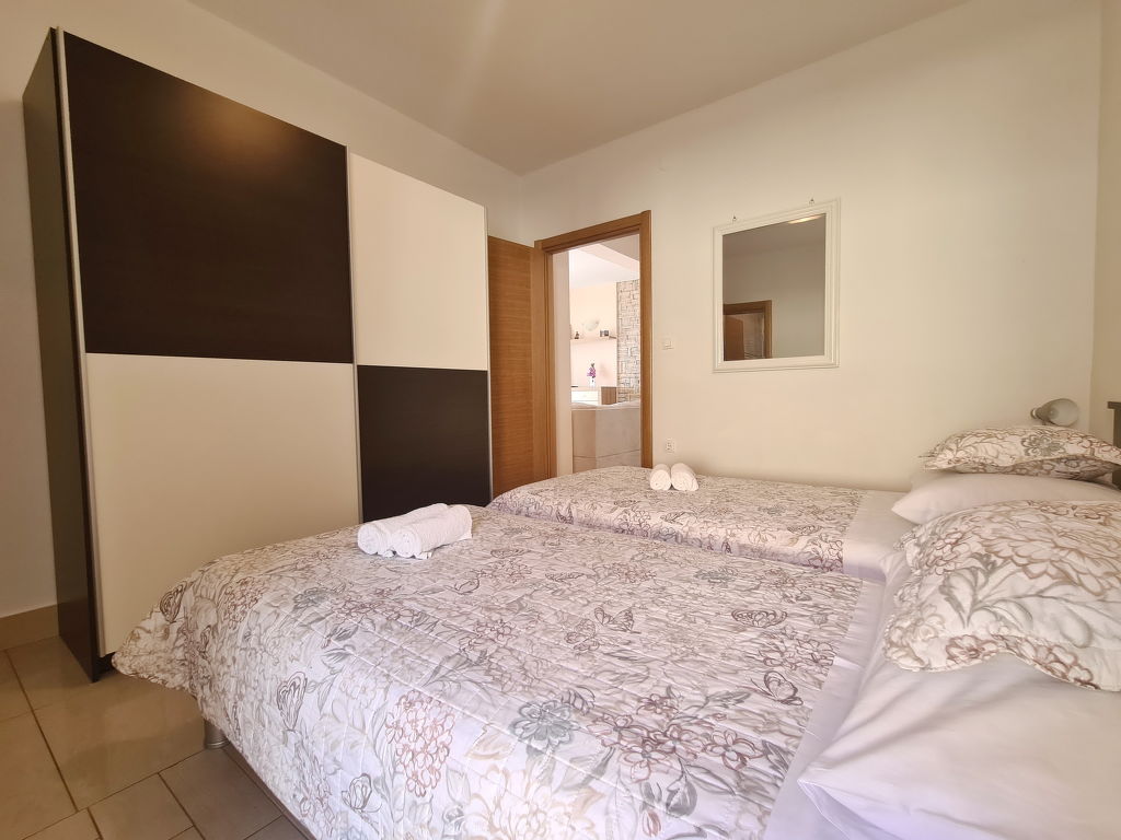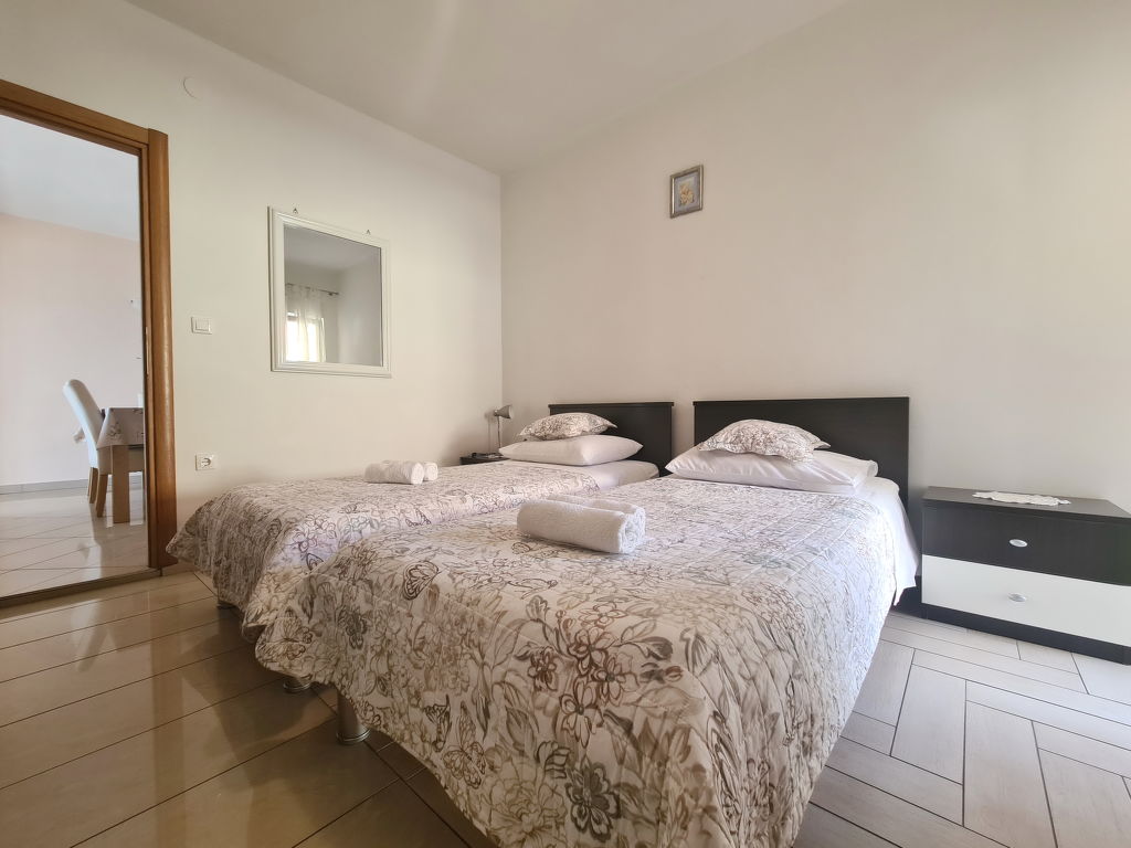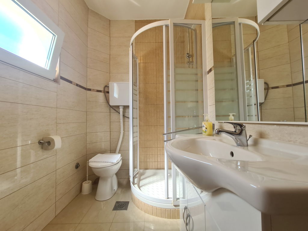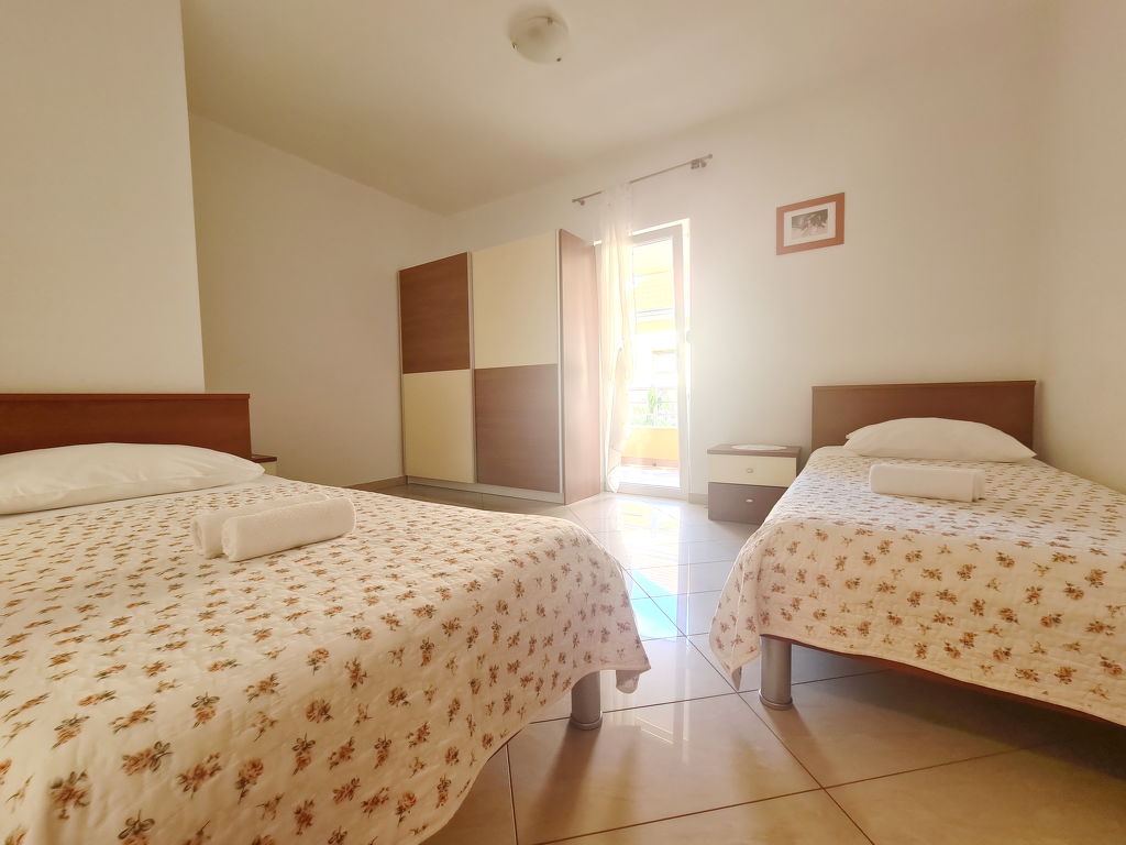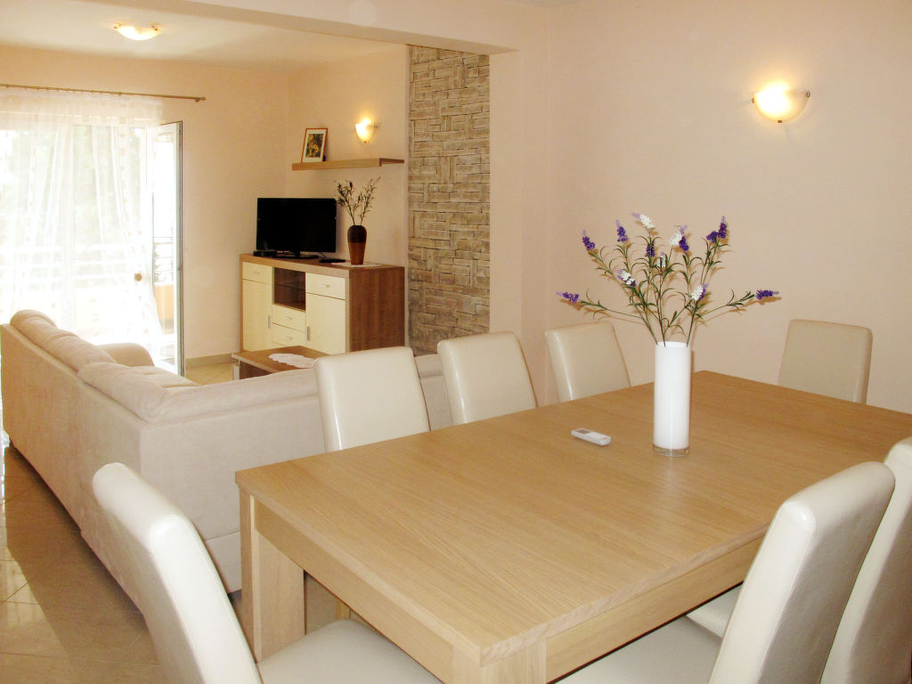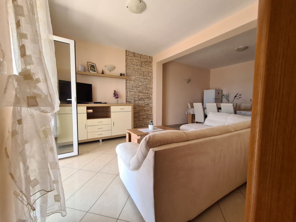 Haus TANJA mit 3 Wohnungen und Meerblick steht in schöner Lage, ca. 300 m von der Ortsmitte Maslenica entfernt. Nächste Einkaufsmöglichkeit ca. 20 m. Felsstrand mit betonierten Flächen ca. 100 m. Posedarje 6 km. Starigrad 20 km. Zadar 35 km. Offenes, ca. 350 m² großes Grundstück mit Weinreben und Olivenbaum. Alle Wohnungen haben einen großen möblierten Balkon mit Markise und gemauertem Grill. SRD 403/404 mit Meerblick und 3 Balkonen. SRD 411 hat eine weitere Terrasse und 2 Balkone. Pro Wohnung 1 Parkmöglichkeit auf dem Grundstück. Die Wohnungen sind gut und angenehm eingerichtet mit Fliesenboden, Sat-TV (deutsche Programme), Internetzugang (WLAN, inklusive), Waschmaschine, Klimaanlage mit Kühl-/Heizfunktion im Wohnraum. Hinweis: Rauchen ist in den Wohnungen nicht gestattet.