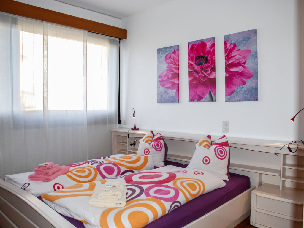"Vista San Salvatore", 3-Zimmer-Wohnung 82 m2 im 5. Stock, Südlage. Geräumig und hell, komfortabel und gemütlich eingerichtet: offenes grosses Wohn-/Esszimmer mit Panoramafenster mit Essecke und Kabel-TV (Flachbildschirm). Ausgang zum Balkon. Offenes Esszimmer mit Klimaanlage. 1 Doppelzimmer mit 1 Doppelbett (2 x 90 cm, Länge 200 cm). 1 Zimmer mit 1 Ausziehbett (2 Pers. 2 x 90 cm, Länge 200 cm). Offene Küche (Backofen, Geschirrspüler, 4 Glaskeramikherd Platten, Mikrowelle, elektrische Kaffeemaschine, Kapseln für die Kaffeemaschine (Dolce Gusto (Coop)) extra). Bad/Bidet/WC, sep. WC. Heizung. Parkettböden. Balkon 4 m2, Südlage. Balkonmöbel. Sehr schöne Panoramasicht auf den See, die Berge, die Landschaft, die Ortschaft und Berg San Salvatore. Zur Verfügung: Bügeleisen, Babybett bis 2 Jahre (extra), Haartrockner. Internet (Wireless LAN, gratis). Garage Nr. AD, Höhe 192 cm. Bitte beachten: Nichtraucher-Unterkunft. 1 Haustier/Hund erlaubt.