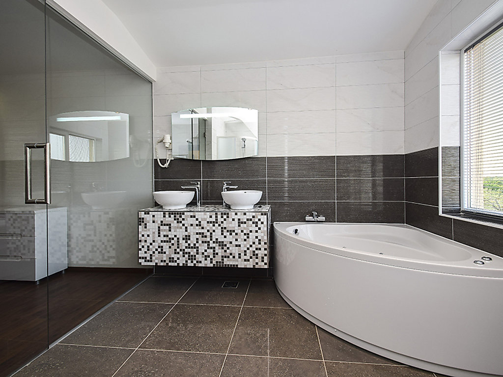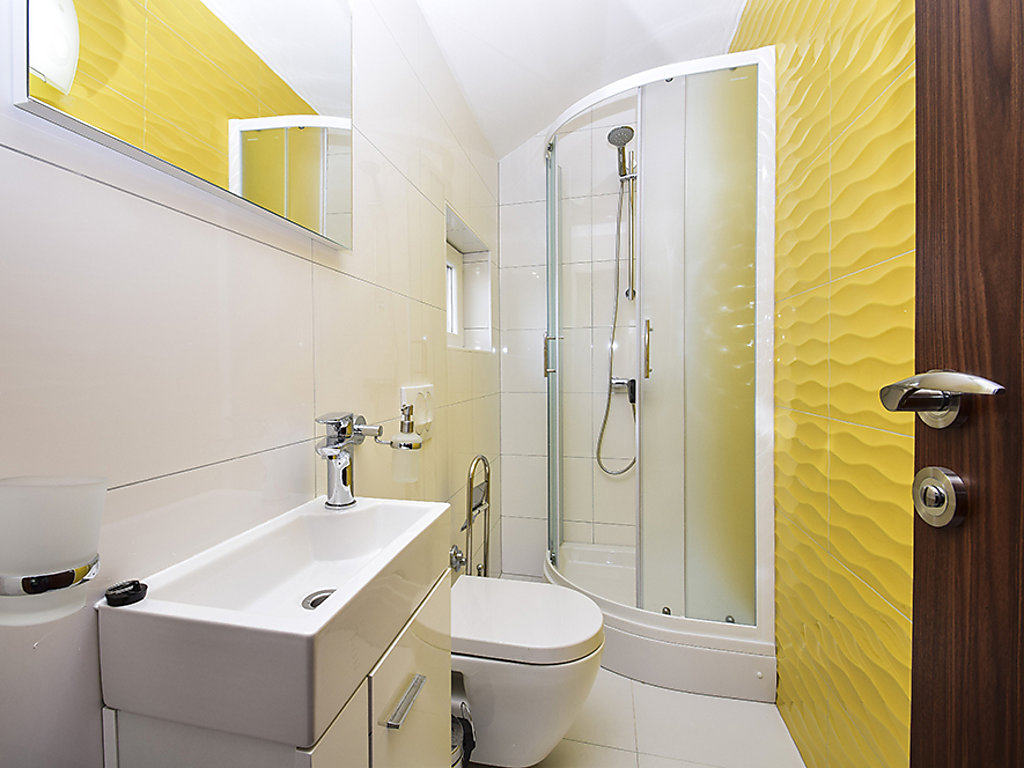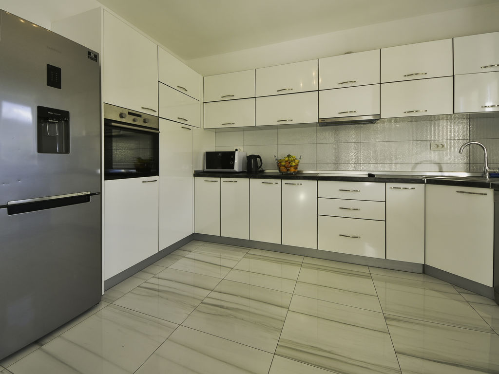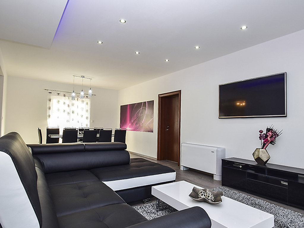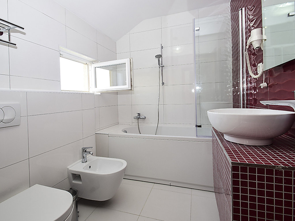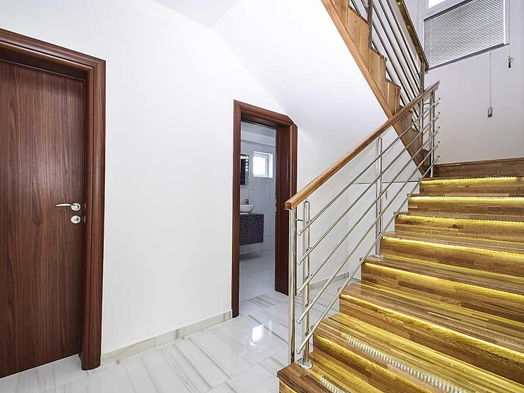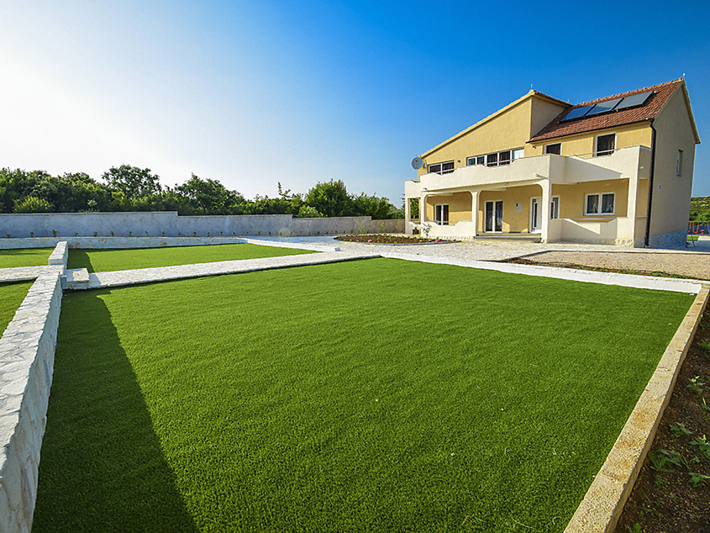 Einfamilienhaus "Julija", auf 2 Stockwerken. Im Weiler Grabovci, 11 km vom Zentrum von Vodice, sonnige Lage, 8 km vom Meer, an einer Strasse. Zur Alleinbenutzung: Grundstück 3'500 m2 (eingezäunt) mit Rasen 100 m2, Schwimmbad eckig (25 m2, 140 cm tief, 01.04.-15.10.). Aussendusche, Poolhaus mit Kühlschrank, WC und Kochherd, Tischtennis, Boccia, Laube (20 m2), Terrasse (80 m2), Gartenmöbel, Grill, Kinderspielplatz (Rutschbahn, Schaukel). Im Hause: Internetzugang, Sauna, Sprudelbad, Tischfussball, Zentralheizung, Waschmaschine. Zur Verfügung: Boot (extra). Wohnungsreinigung möglich (extra). Abholservice vom Flughafen (extra). Parkplatz (für 3 Autos, überdacht) beim Haus auf dem Grundstück. Einkaufsgeschäft 10 km, Restaurant 8 km, Kieselstrand 12 km, Strandbad 12 km. Radweg 6 km. Nahe gelegene Sehenswürdigkeiten: NP Krka 30 km. Bekannte Seen in der Umgebung sind gut erreichbar: Vransko jezero 20 km. Es kann auf Anfrage ein Transfer ab Flughafen zum Ferienobjekt organisiert werden.
