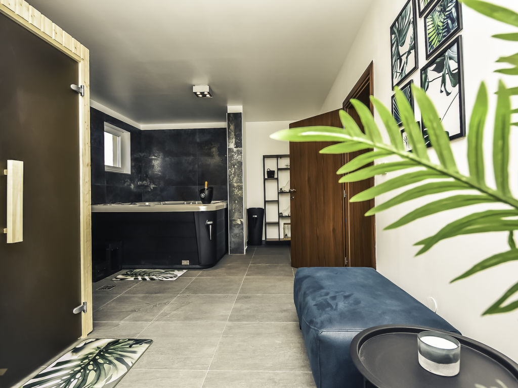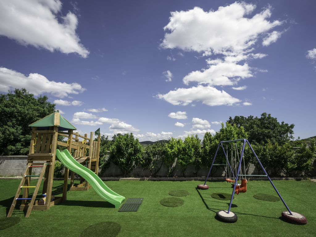 6-Zimmer-Haus 274 m2 auf 2 Stockwerken, Nordostlage. Wohn-/Esszimmer 78 m2 mit Sat-TV (Flachbildschirm), DVD und Klimaanlage. Ausgang zur Terrasse, zum Schwimmbad. Offene Küche (Backofen, Geschirrspüler, 4 Glaskeramikherd Platten, Mikrowelle, Tiefkühler, elektrische Kaffeemaschine) mit Klimaanlage. Dusche/WC. Obergeschoss: 1 Zimmer 20 m2 mit 1 franz. Bett (180 cm, Länge 200 cm), Bad/Dusche/WC, Sprudelbad und TV (Flachbildschirm), Klimaanlage. Ausgang zur Terrasse. 1 Zimmer mit 1 franz. Bett (160 cm, Länge 200 cm), TV (Flachbildschirm), Klimaanlage. Ausgang zur Terrasse. 1 Zimmer mit 1 franz. Bett (160 cm, Länge 200 cm), Dusche/WC und Klimaanlage. 2 Zimmer, jedes Zimmer mit 1 franz. Bett (150 cm, Länge 200 cm), Klimaanlage. Ausgang zur Terrasse. Bad/Dusche/Bidet/WC. 2 Terrassen 30 m2. Terrassenmöbel, Liegestühle. Zur Verfügung: Safe, Bügeleisen, Babybett, Haartrockner. Internet (Wireless LAN, gratis). 1 Haustier/Hund erlaubt.
