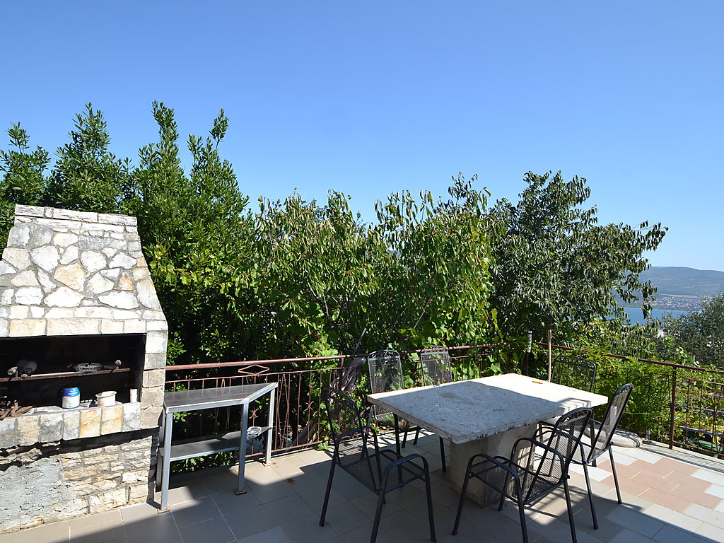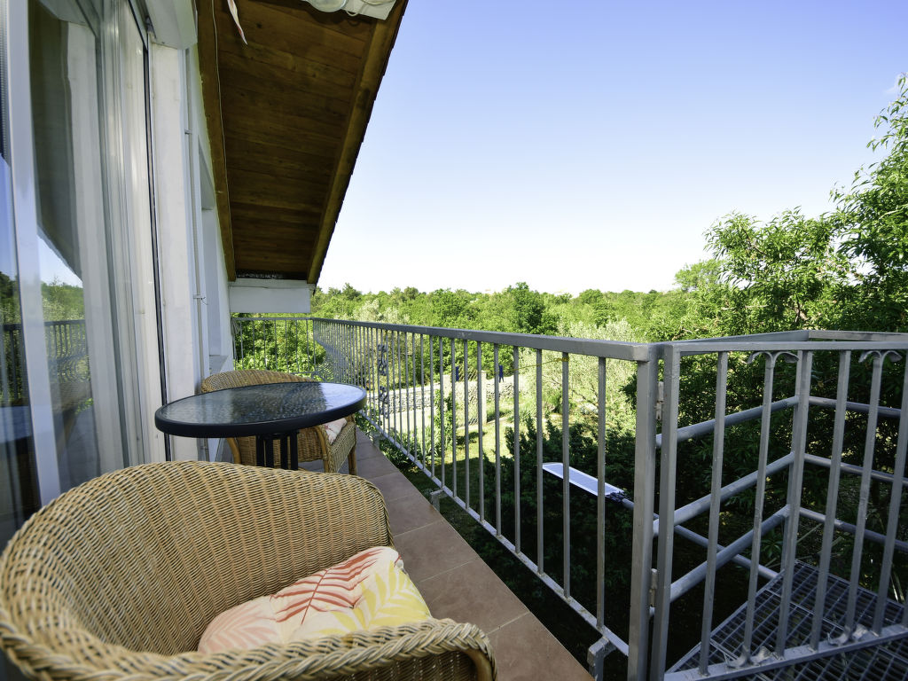2-Zimmer-Wohnung 45 m2 im 1. Stock, Westlage. Wohn-/Esszimmer 25 m2, abgeschrägtes, Deckenhöhe 100 - 250 cm mit 1 Doppeldiwanbett (140 cm, Länge 200 cm), Sat-TV und Klimaanlage. Ausgang zur Terrasse. 1 abgeschrägtes Zimmer, Deckenhöhe 100 - 250 cm mit 1 Doppelbett (2 x 90 cm, Länge 200 cm), Ventilator. Offene Küche (2 Kochplatten, Mikrowelle, Tiefkühler, elektrische Kaffeemaschine). Bad/WC. Terrasse 12 m2, überdacht. Terrassenmöbel. Sicht auf die Landschaft. Zur Verfügung: Internet (Wireless LAN, gratis). 1 Haustier/Hund erlaubt.