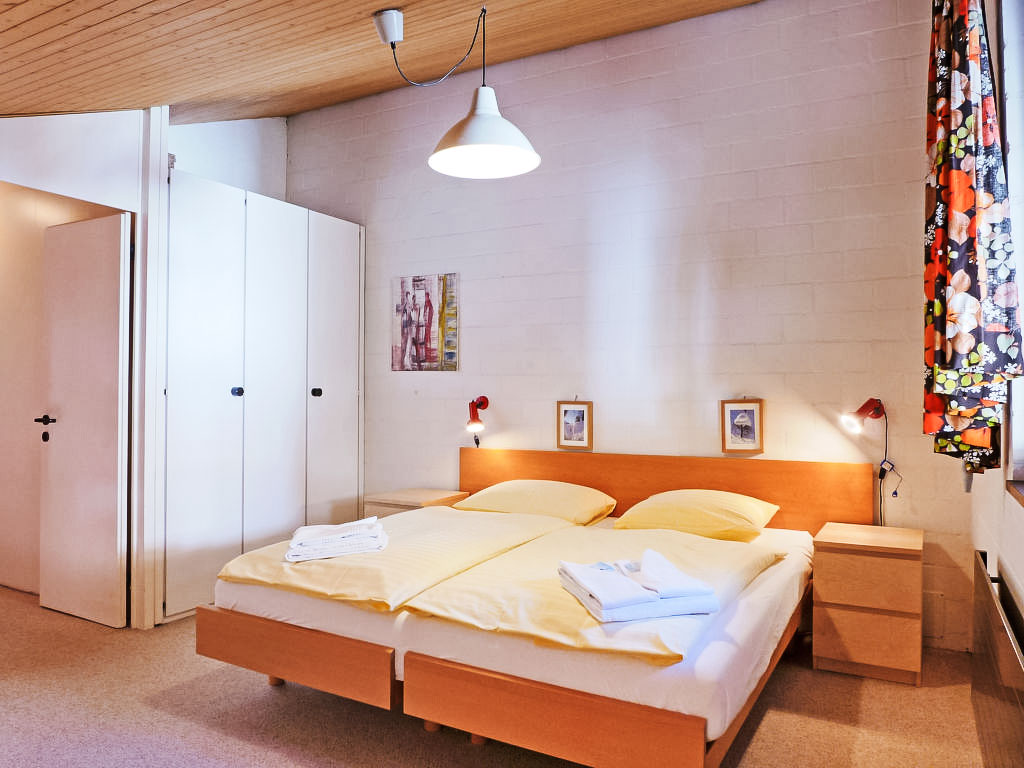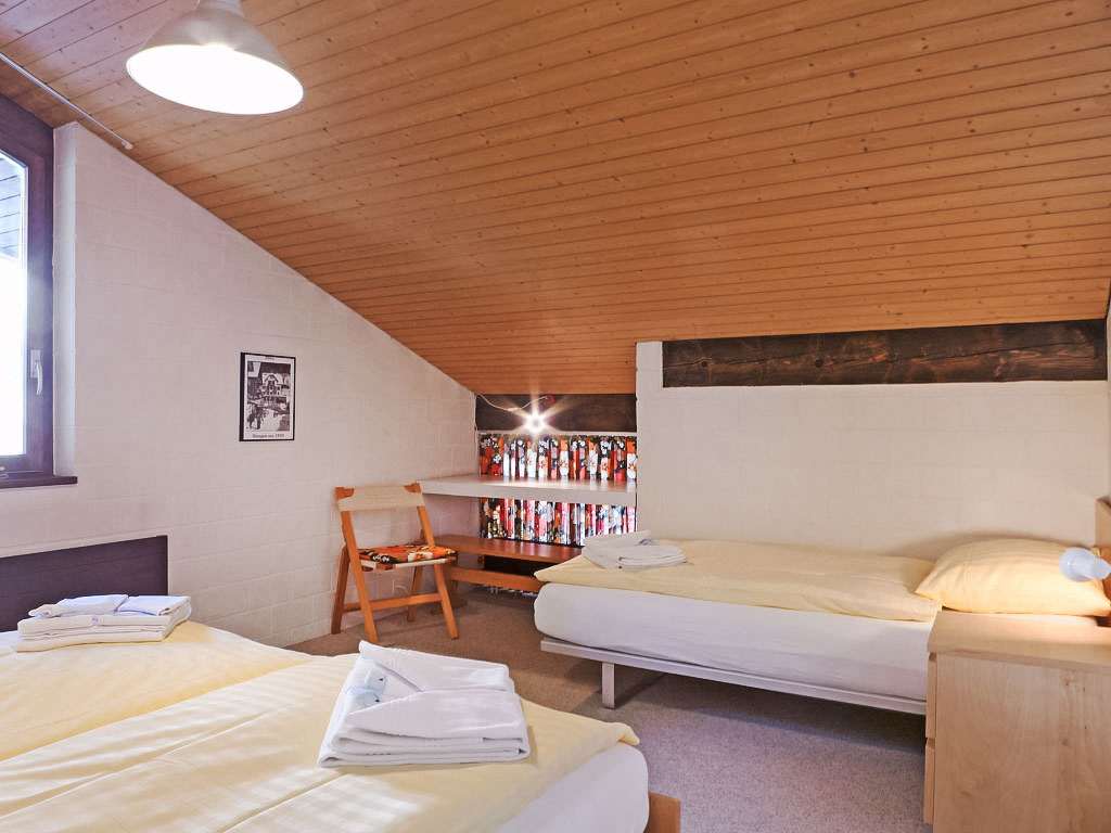 "Im Gruebi No. 10", 3-Zimmer-Wohnung 96 m2 auf 2 Stockwerken im 2. Stock. Geräumig und hell, teilweise abgeschrägt, komfortabel und gemütlich eingerichtet: Wohnzimmer mit Kabel-TV, Flachbildschirm und Radio. Ausgang zum Balkon. Wohnküche (Backofen, Geschirrspüler, 4 Induktionskochplatten, Toaster, Wasserkocher, elektrische Kaffeemaschine, Kapseln für die Kaffeemaschine (Nespresso) extra, Fondue Set (Käse)). Obergeschoss: 1 Zimmer mit 1 Doppelbett (180 cm, Länge 200 cm). 1 Zimmer mit 3 Betten (90 cm, Länge 200 cm). Bad, sep. WC. Balkon, Südlage. Balkonmöbel. Schöne Sicht auf die Berge. Zur Verfügung: Haartrockner. Internet (Wireless LAN, gratis). Bitte beachten: geeignet für Familien. Nichtraucher-Unterkunft. Eigener Eingang.