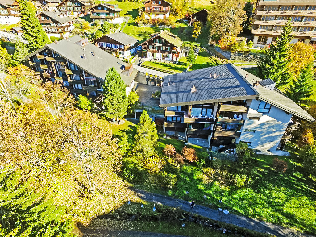 Appartementhaus "Im Gruebi". Im Ort, 300 m vom Zentrum von Wengen, zentrale, ruhige Lage. Im Hause: Sauna (extra). Waschmaschine, Wäschetrockner (zur Mitbenutzung, extra). Einkaufsservice vor Anreise möglich. Einkaufsgeschäft, Lebensmittelgeschäft, Supermarkt 300 m, Restaurant 100 m, Bäckerei 300 m, Zentrum zu Fuss in 4 Minuten erreichbar, Bahnstation "Wengen" 350 m, Freibad 600 m. Luftseilbahn, Skisportanlagen 300 m. Bitte beachten: autofreie Ferienanlage. Geeignet für Familien. Die Anreise erfolgt mit der Bergbahn. Die Anreise ist nur mit dem Zug ab Lauterbrunnen möglich – 14 Min. Fahrzeit.