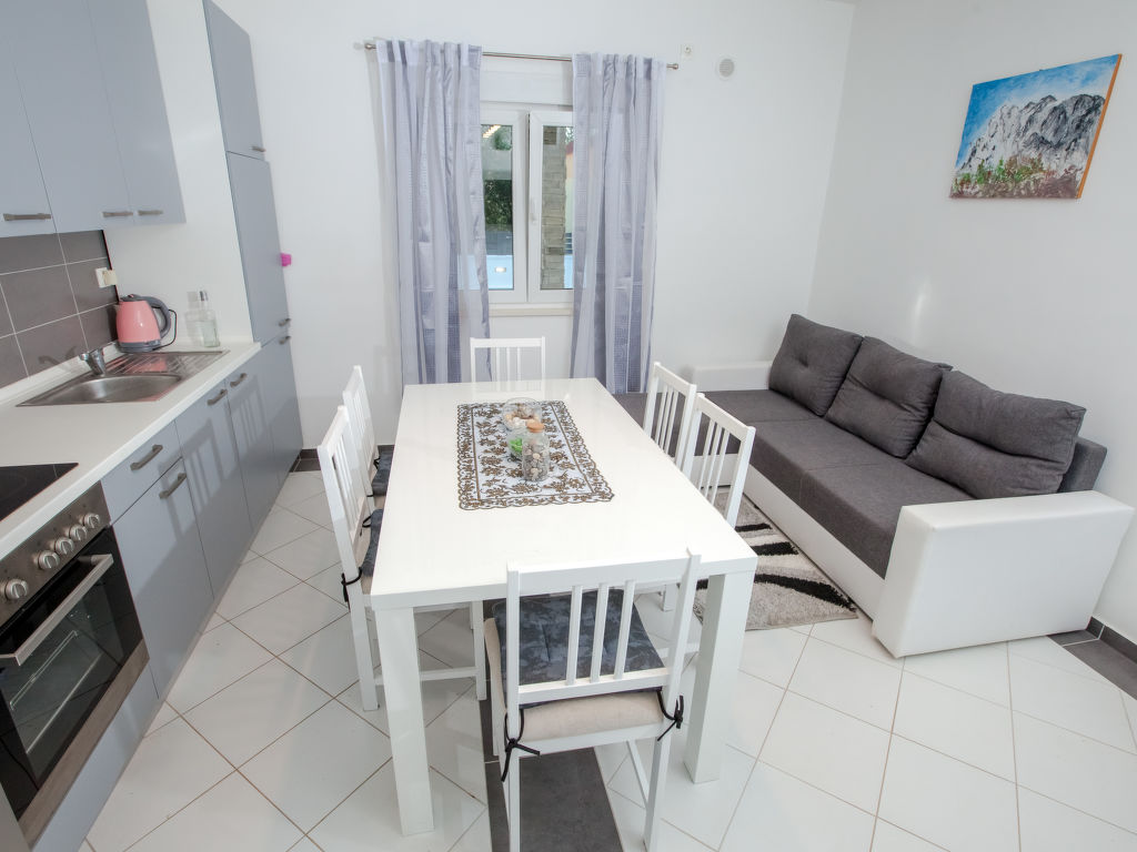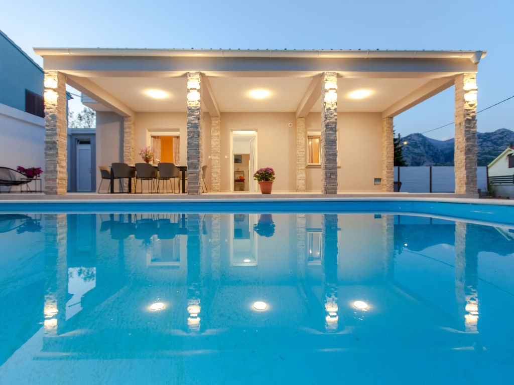 Seline: Doppelhaus "Lesinger". 4 km vom Zentrum von Starigrad-Paklenica: sonnige Lage, 550 m vom Meer, 550 m vom Strand. Zur Alleinbenutzung: Grundstück 300 m2 (eingezäunt), Schwimmbad eckig (8 x 4 m, 140 cm tief, 04.05.-19.10.) mit Innentreppe. WC im Poolbereich, Gartenmöbel, Grill. Im Hause: Internetzugang, Waschmaschine. Parkplatz (für 3 Autos) beim Haus auf dem Grundstück. Einkaufsgeschäft, Restaurant 400 m, Kieselstrand 550 m. Nahe gelegene Sehenswürdigkeiten: NP Paklenica 2.5 km, Cave Modrič 8 km.