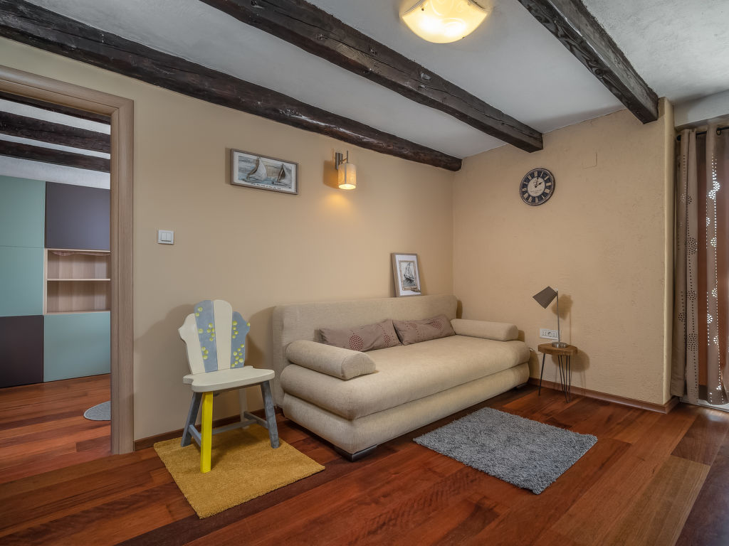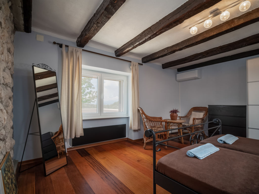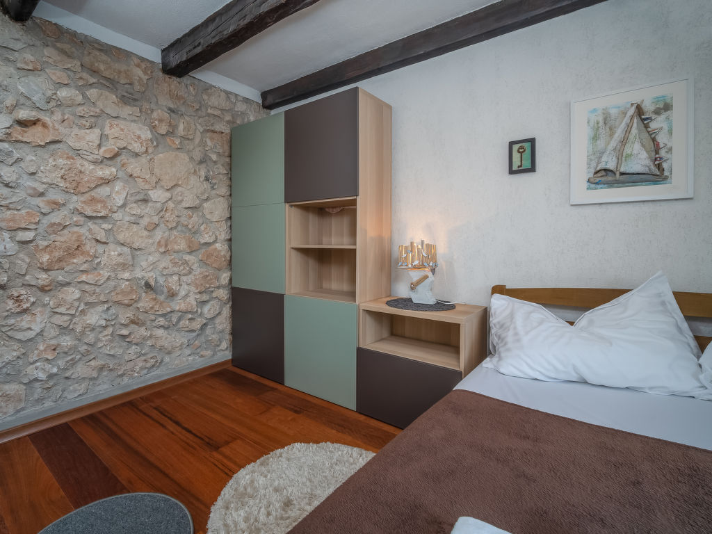 Kras 4 km von Dobrinj: Doppelhaus "Bella", auf 2 Stockwerken, renoviert im Jahre 2016. 7 km vom Zentrum von Malinska, 7 km vom Meer. Zur Alleinbenutzung: Grundstück 400 m2 (eingezäunt), Pflanzen und Bäumen. Terrasse (70 m2), Gartenmöbel. Im Hause: Internetzugang, Waschmaschine. Parkplatz (für 3 Autos) beim Haus auf dem Grundstück. Einkaufsgeschäft 1 km, Supermarkt 6 km, Restaurant 4 km, Kieselstrand 7 km, betonierter Strand 7 km.