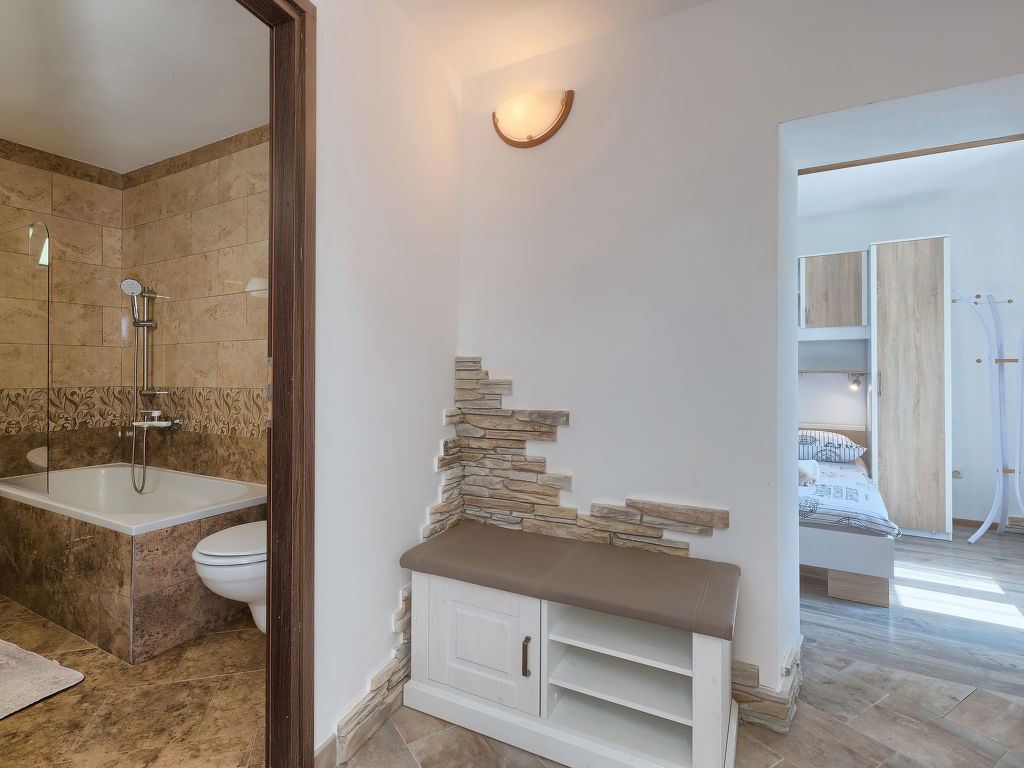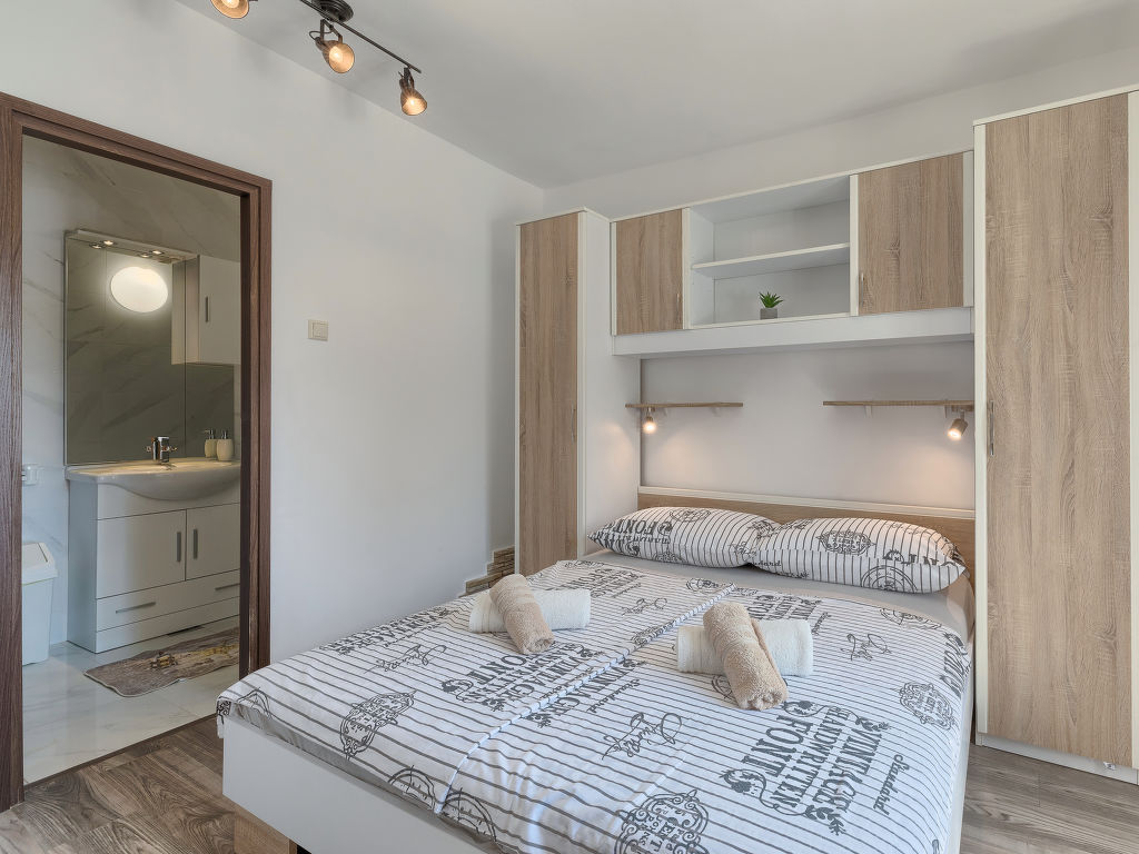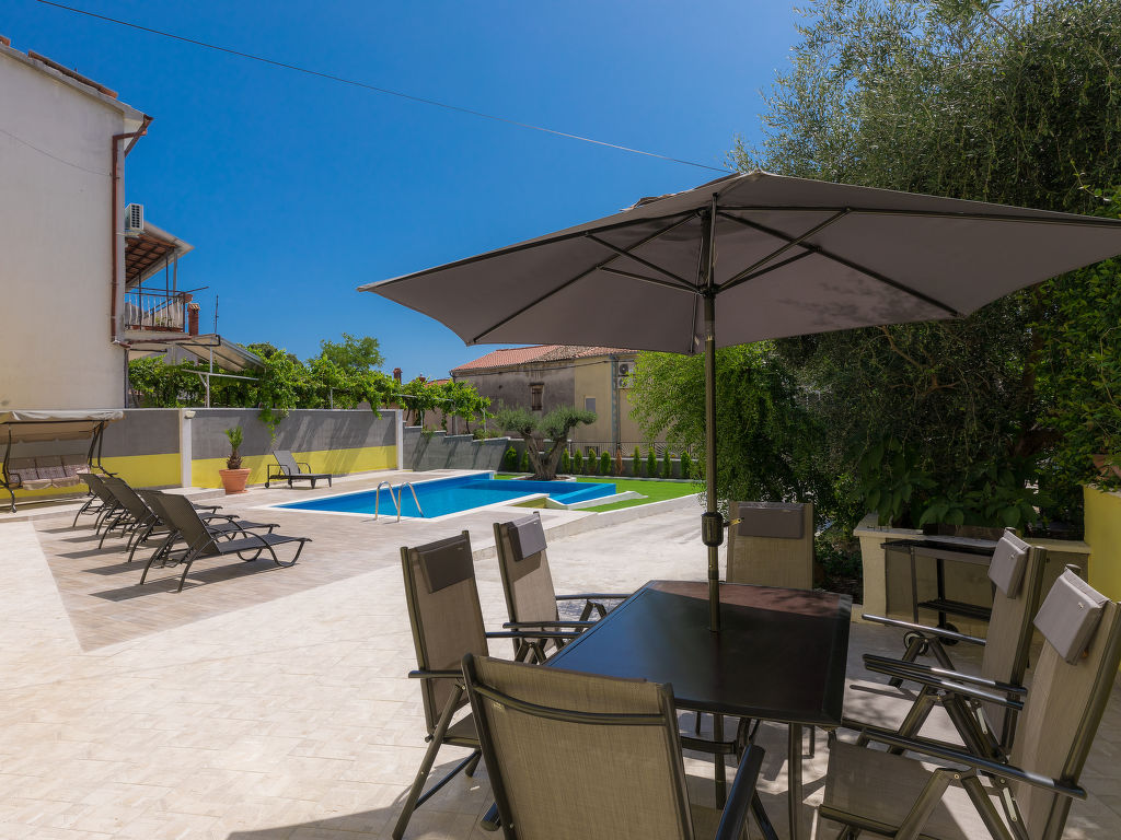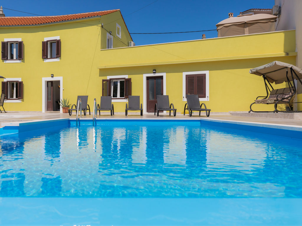 Ližnjan 3 km von Medulin: Reihenhaus "Evelina", auf 2 Stockwerken. 200 m vom Zentrum von Ližnjan, sonnige Lage, 2 km vom Meer, 2 km vom Strand. Zur Alleinbenutzung: Grundstück 280 m2 (eingezäunt), Garten mit Rasen, Schwimmbad eckig (8 x 4 m, 150 cm tief, 25.04.-26.10.). Terrasse (30 m2), Gartenmöbel. Im Hause: Internetzugang, Sprudelbad, Waschmaschine. Parkplatz (für 2 Autos) beim Haus auf dem Grundstück. Einkaufsgeschäft 200 m, Restaurant 300 m, Kieselstrand 2 km, Felsstrand 2 km. Surfschule 2.5 km, Reitstall 3 km, Sportzentrum 4.5 km, Wanderwege ab Haus 1 km, Radweg 1 km.