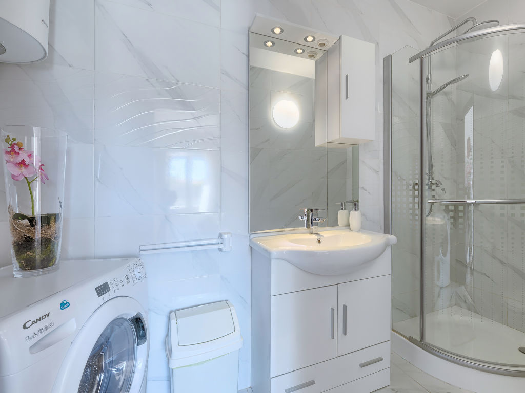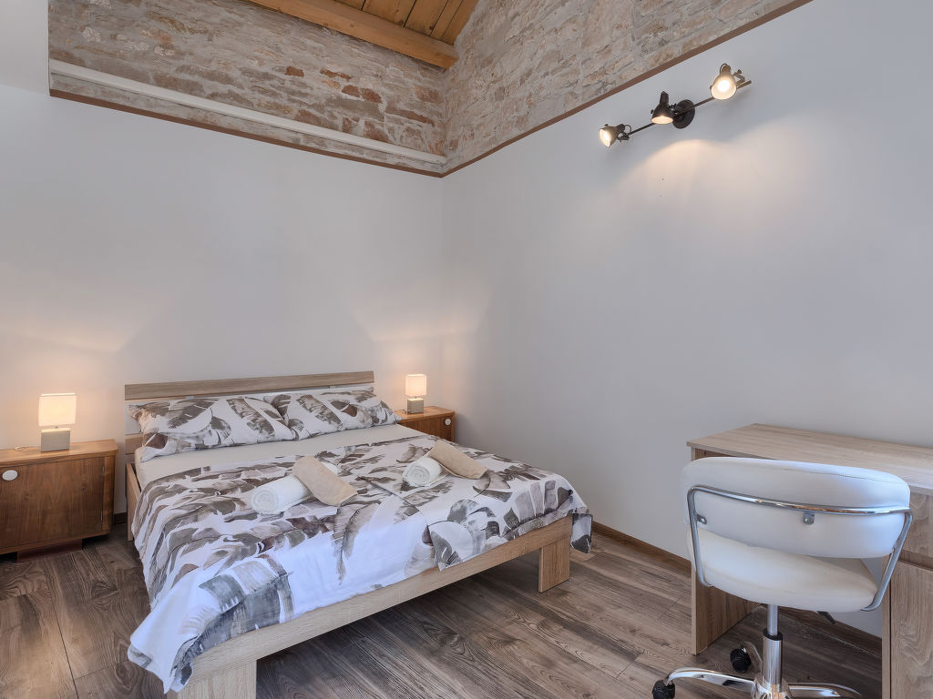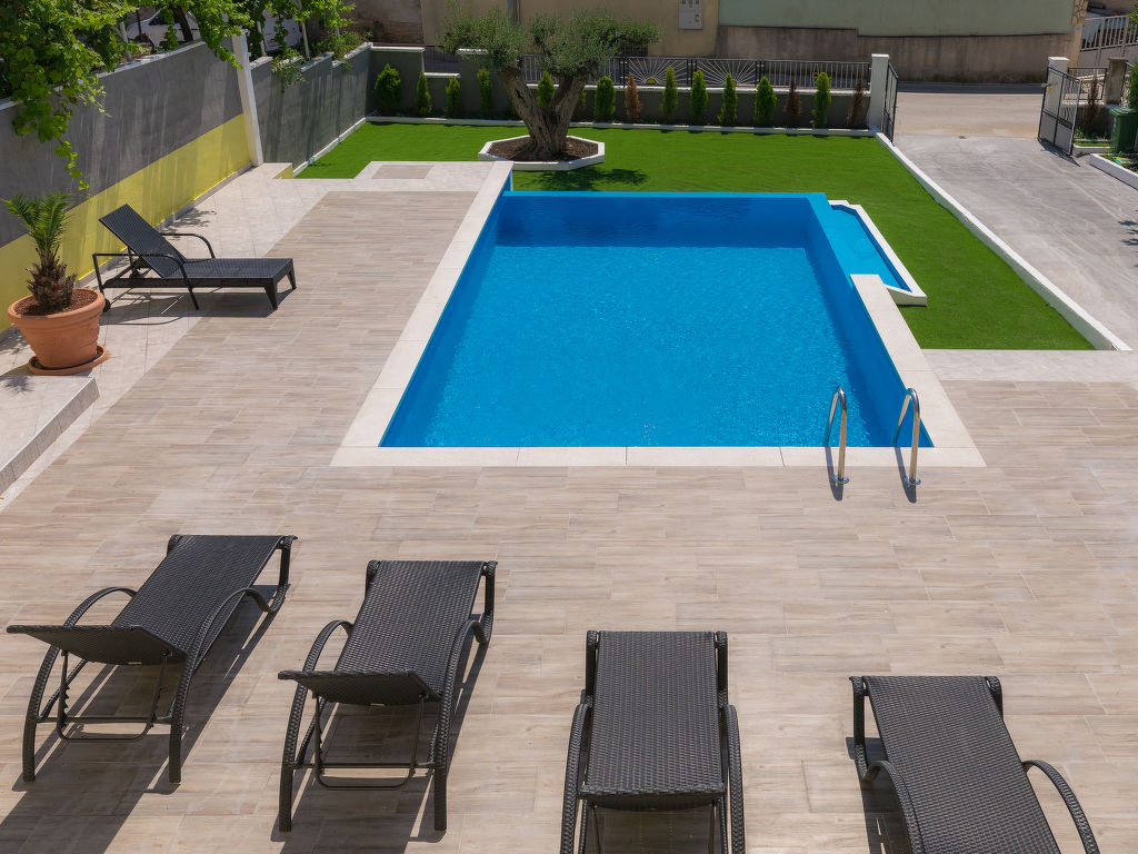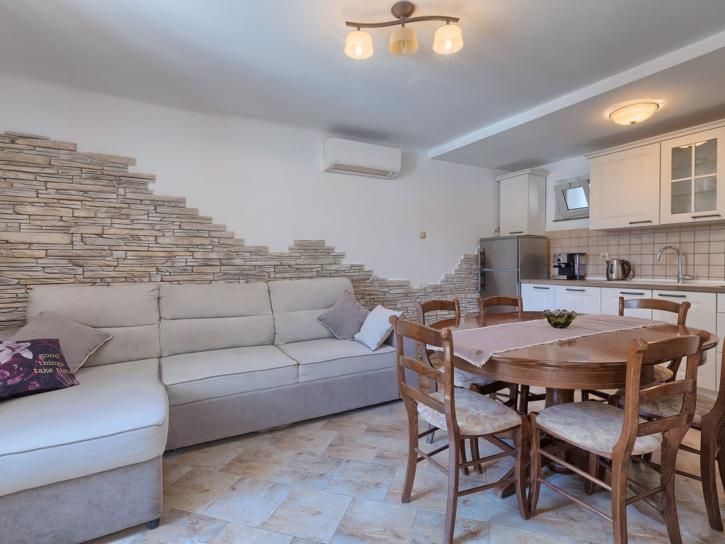 Ližnjan 3 km von Medulin: Reihenhaus "Evelina", auf 2 Stockwerken. 200 m vom Zentrum von Ližnjan, sonnige Lage, 2 km vom Meer, 2 km vom Strand. Zur Alleinbenutzung: Grundstück 280 m2 (eingezäunt), Garten mit Rasen, Schwimmbad eckig (8 x 4 m, 150 cm tief, 25.04.-26.10.). Terrasse (30 m2), Gartenmöbel. Im Hause: Internetzugang, Sprudelbad, Waschmaschine. Parkplatz (für 2 Autos) beim Haus auf dem Grundstück. Einkaufsgeschäft 200 m, Restaurant 300 m, Kieselstrand 2 km, Felsstrand 2 km. Surfschule 2.5 km, Reitstall 3 km, Sportzentrum 4.5 km, Wanderwege ab Haus 1 km, Radweg 1 km.
