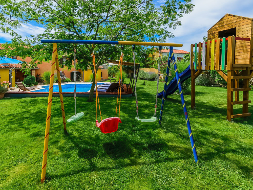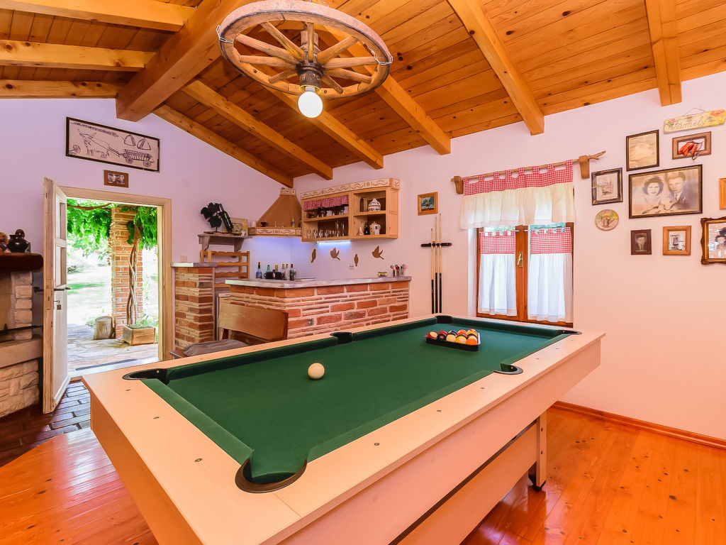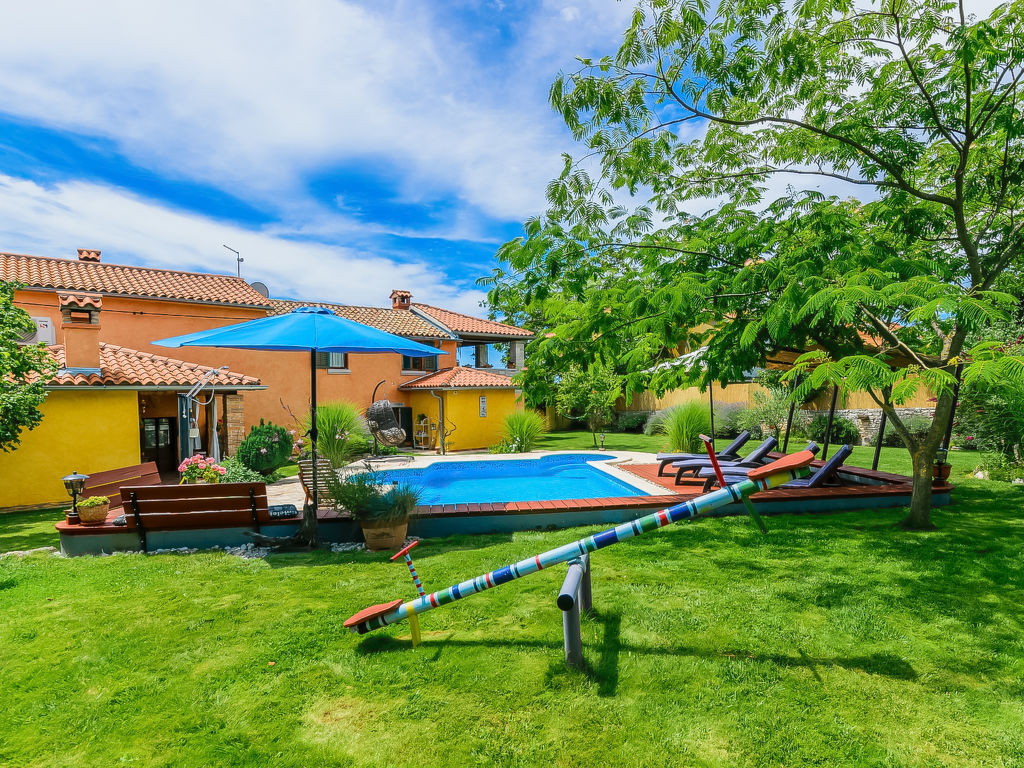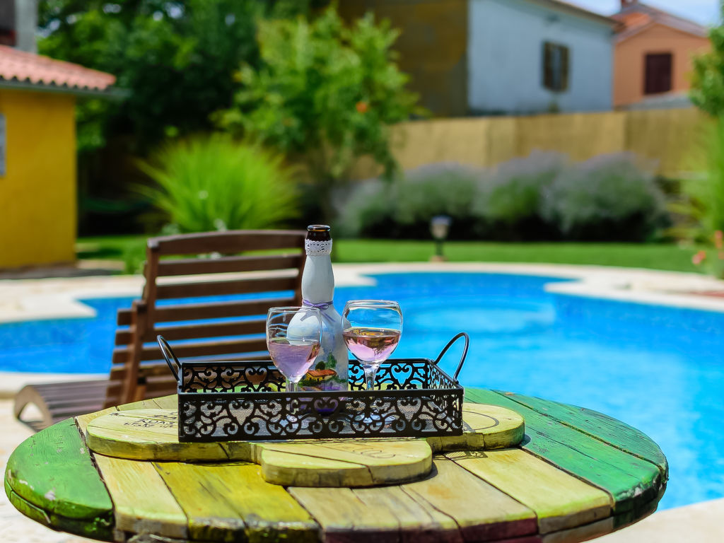 Čabrunići 8 km von Vodnjan: Altes, schönes Einfamilienhaus "Loreta", auf 2 Stockwerken. 17 km vom Zentrum von Pula, ruhige Lage, 17 km vom Meer, im Grünen. Zur Alleinbenutzung: Grundstück 1'000 m2 (eingezäunt), Garten mit Rasen, Schwimmbad (28 m2, 140 cm tief, 04.05.-28.09.) mit Innentreppe. Ungleichmässige Schwimmbadform, Aussendusche, Kinderspielplatz (Rutschbahn, Schaukel). Im Hause: Internetzugang, Waschmaschine. Parkplatz beim Haus auf dem Grundstück. Einkaufsgeschäft 1 km, Supermarkt 9 km, Restaurant 500 m, Kieselstrand 17 km, Felsstrand 17 km. Wanderwege ab Haus, Radweg 100 m. Schwimmbad mit Hydromassage.