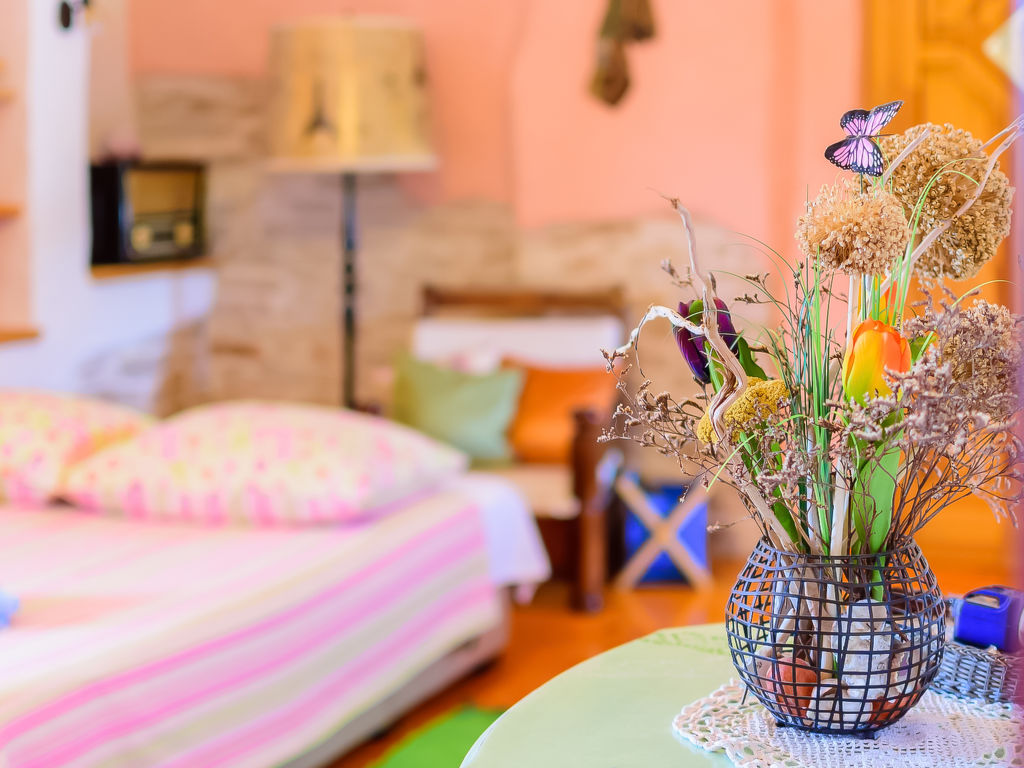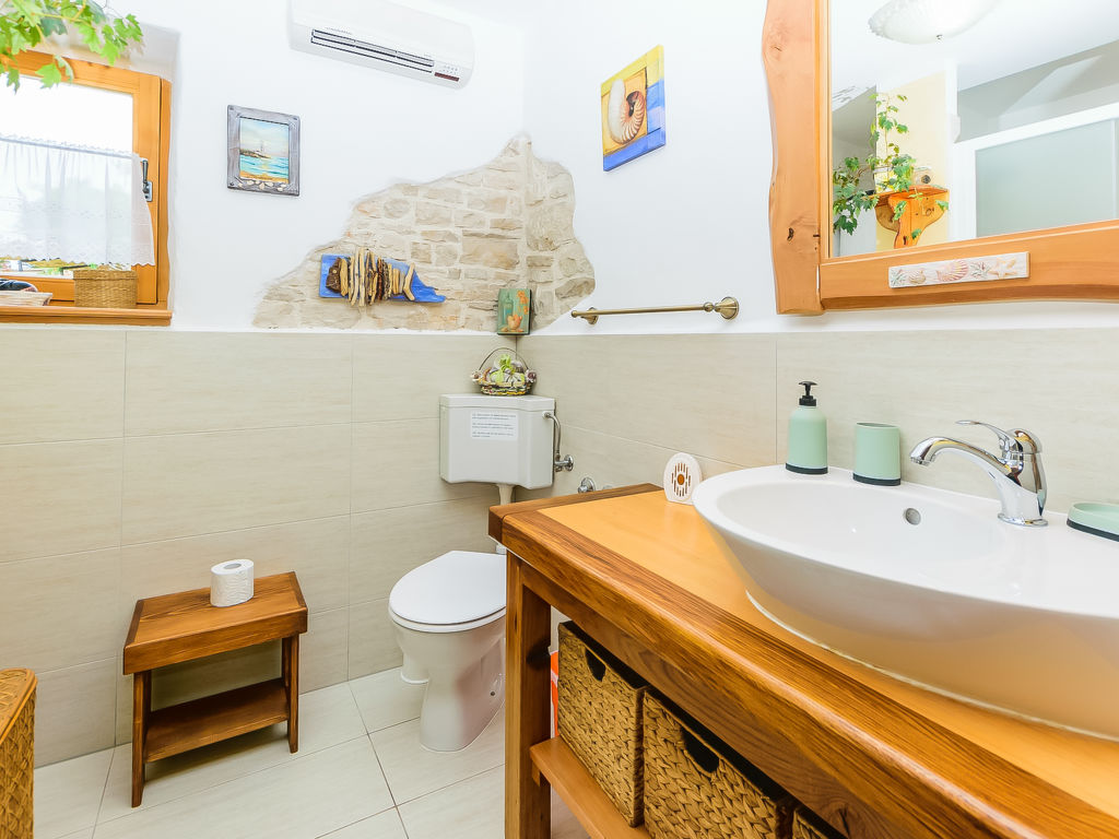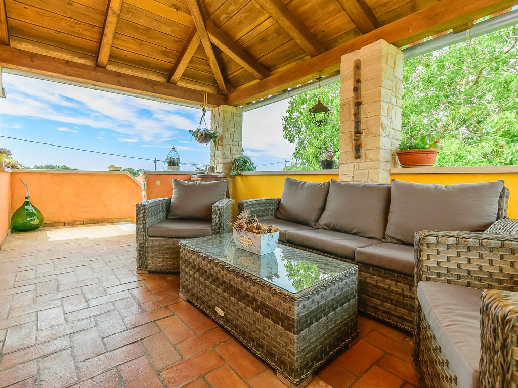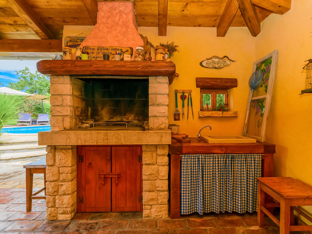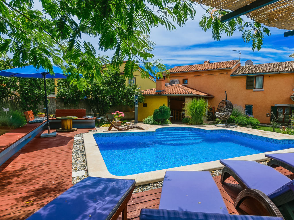 Čabrunići 8 km von Vodnjan: Altes, schönes Einfamilienhaus "Loreta", auf 2 Stockwerken. 17 km vom Zentrum von Pula, ruhige Lage, 17 km vom Meer, im Grünen. Zur Alleinbenutzung: Grundstück 1'000 m2 (eingezäunt), Garten mit Rasen, Schwimmbad (28 m2, 140 cm tief, 04.05.-28.09.) mit Innentreppe. Ungleichmässige Schwimmbadform, Aussendusche, Kinderspielplatz (Rutschbahn, Schaukel). Im Hause: Internetzugang, Waschmaschine. Parkplatz beim Haus auf dem Grundstück. Einkaufsgeschäft 1 km, Supermarkt 9 km, Restaurant 500 m, Kieselstrand 17 km, Felsstrand 17 km. Wanderwege ab Haus, Radweg 100 m. Schwimmbad mit Hydromassage.