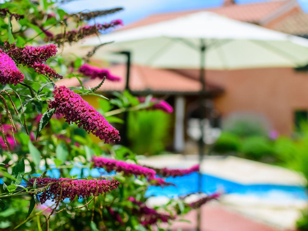 4-Zimmer-Haus 170 m2 auf 2 Stockwerken. Esszimmer mit Sat-TV (Flachbildschirm). Ausgang zur Terrasse. 1 Zimmer mit 1 Doppelbett (2 x 80 cm, Länge 200 cm), Klimaanlage. Offene Küche (4 Kochplatten, Backofen, Geschirrspüler, Mikrowelle, Tiefkühler). Dusche/WC. Obergeschoss: Wohnzimmer mit 1 Doppeldiwanbett und Sat-TV (Flachbildschirm), DVD und Klimaanlage. Ausgang zur Terrasse. 1 Zimmer mit 1 Doppelbett (2 x 80 cm, Länge 200 cm), Klimaanlage. 1 Zimmer mit 2 Betten (80 cm, Länge 200 cm), Klimaanlage. Dusche/WC. Terrasse 25 m2, überdacht, Terrasse 15 m2, überdacht. Terrassenmöbel, Gartengrill, Liegestühle. Sicht auf das Schwimmbad. Zur Verfügung: Safe, Babybett. Internet (Wireless LAN, gratis). Im separaten Haus (30 m2): Billardtisch, Dart-Pfeile, Sat-TV, offener Kamin, Klimaanlage. Offene Küche (2 Kochplatten, Geschirrspüler). Dusche/WC.