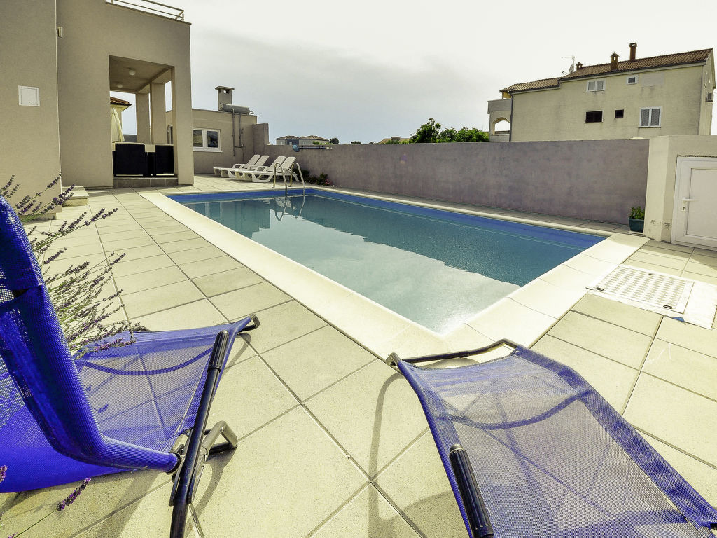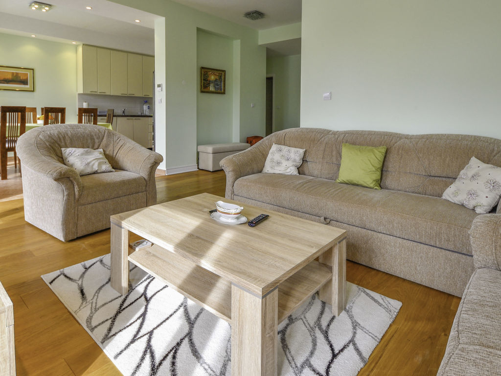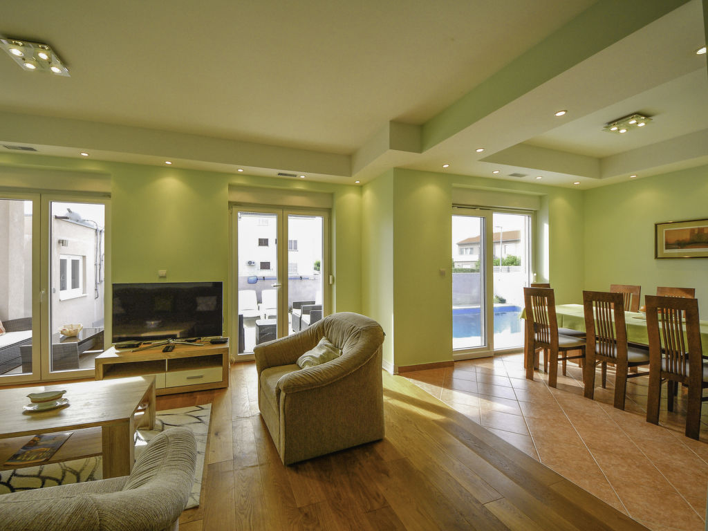 Einfamilienhaus "Luxhome", auf 2 Stockwerken. 750 m vom Zentrum von Zaton, sonnige Lage, 600 m vom Meer, 600 m vom Strand. Zur Alleinbenutzung: Grundstück 390 m2 (eingezäunt), Schwimmbad eckig (7 x 3 m, 25 m2, 150 cm tief, 01.06.-29.09.). Aussendusche, Gartenmöbel, Grill. Im Hause: Internetzugang, Klimaanlage, Waschmaschine. Parkplatz (für 3 Autos) beim Haus auf dem Grundstück. Einkaufsgeschäft 750 m, Restaurant 1 km, Sandstrand, Kieselstrand 600 m. Tennis 1.2 km. Nahe gelegene Sehenswürdigkeiten: Aquapark 1.2 km.