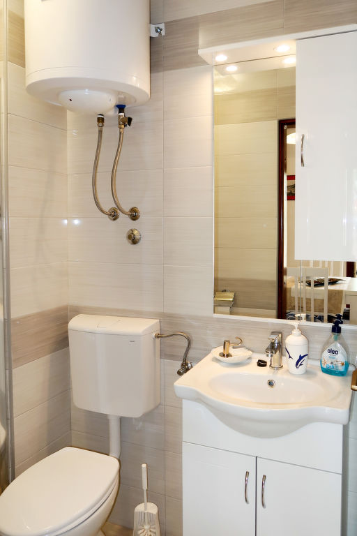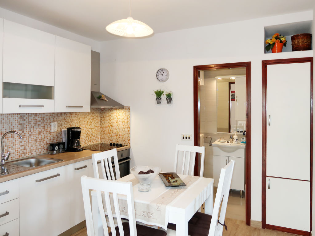 Mehrfamilienhaus "Borovina". 45 km vom Zentrum von Korčula, 500 m vom Zentrum von Prigradica, 4.5 km vom Zentrum von Blato, 20 m vom Meer, 25 m vom Strand. Zur Mitbenutzung: Grundstück 2'000 m2. Aussendusche, Grill. Im Hause: Internetzugang. Supermarkt 4.5 km, Fähre 11 km, Felsstrand 25 m. Bitte beachten: Der Besitzer wohnt im selben Haus.
