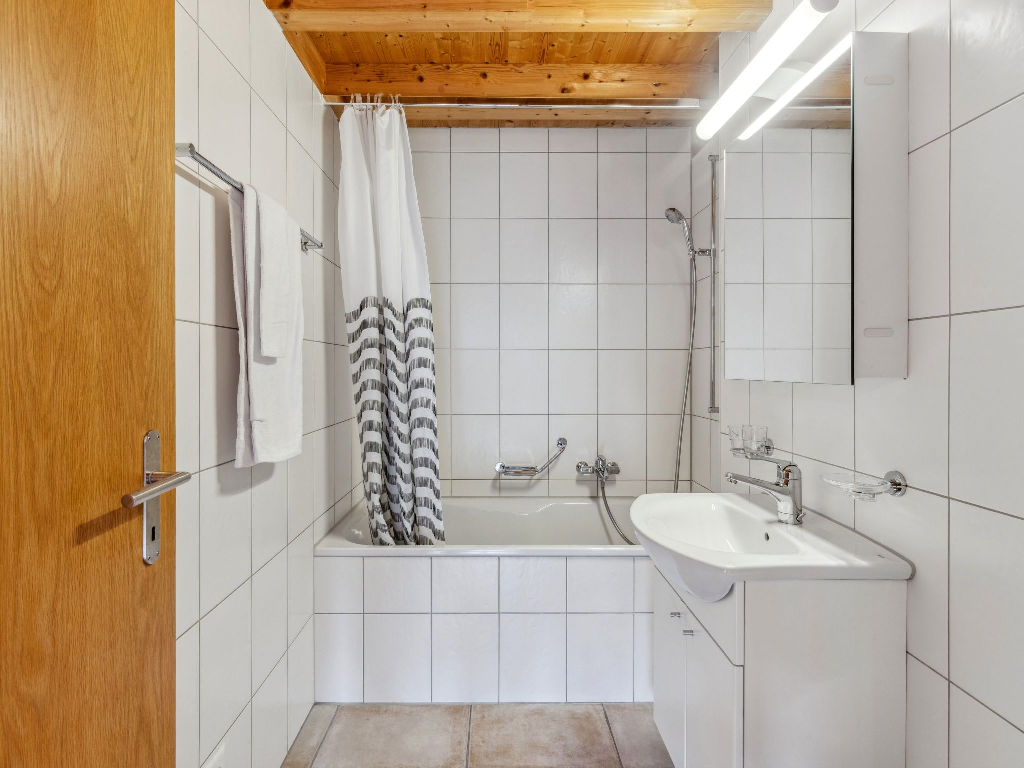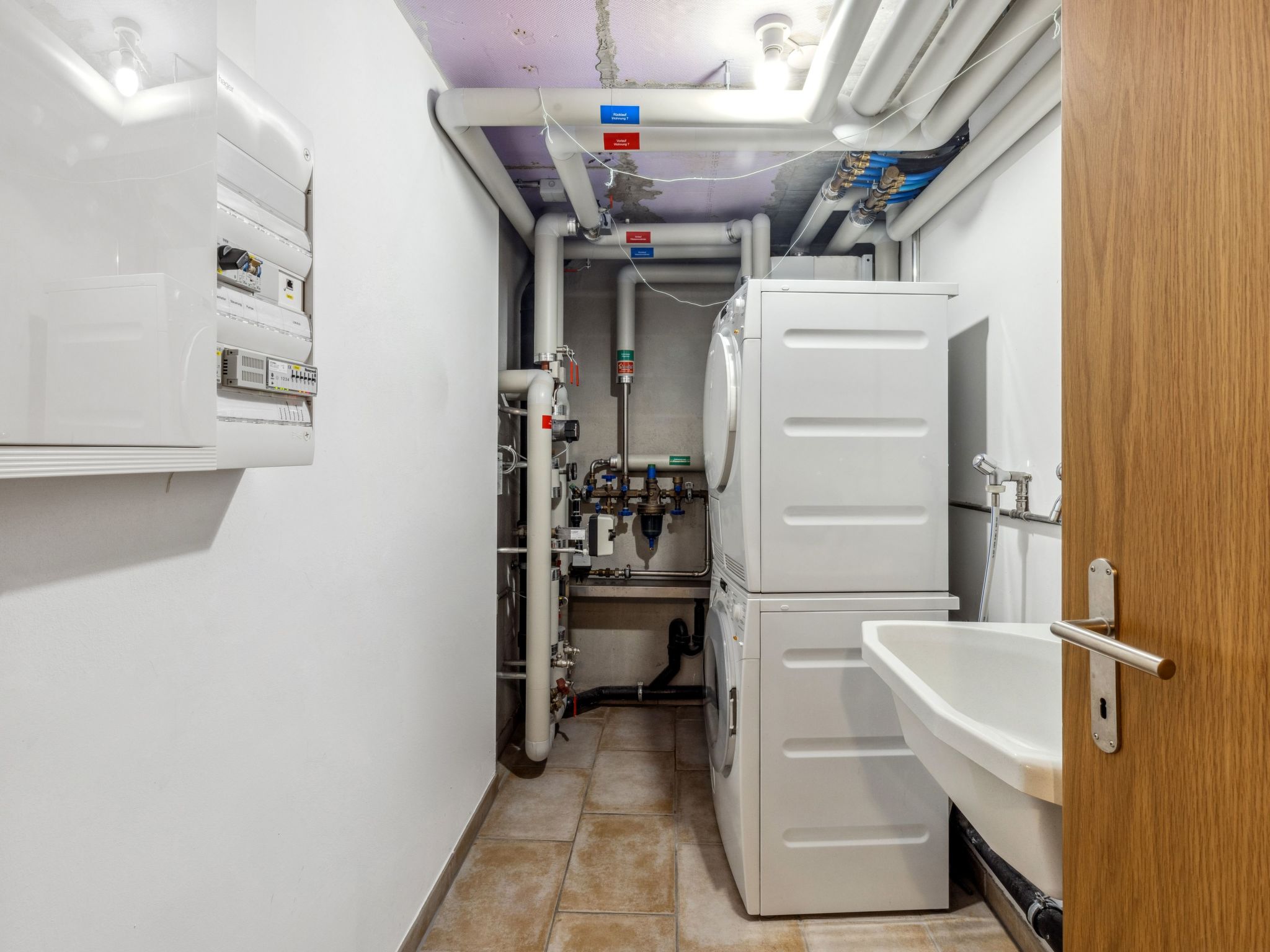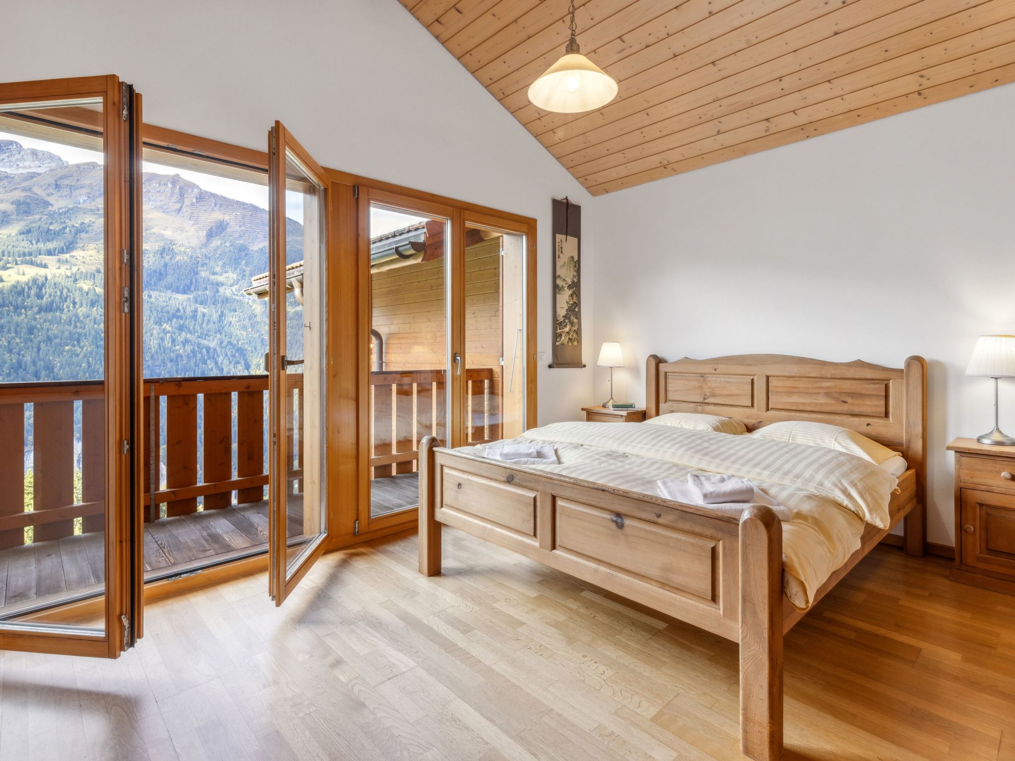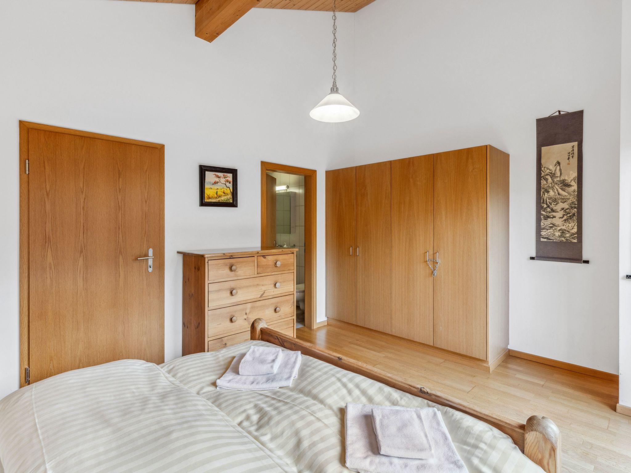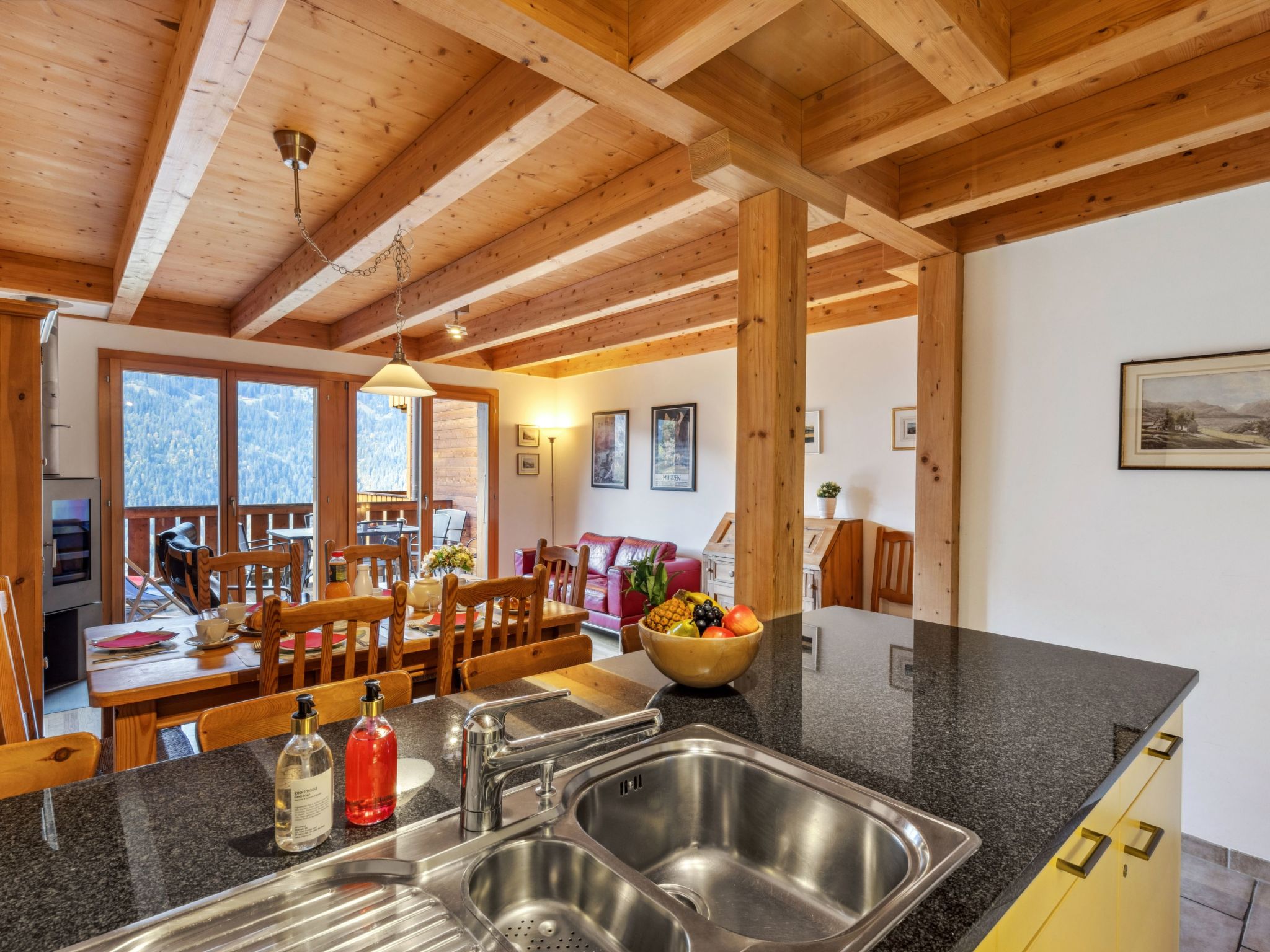"Apt. No.07", 5-Zimmer-Wohnung 140 m2 auf 3 Stockwerken. Geräumig und hell, modern und geschmackvoll eingerichtet: Wohn-/Esszimmer mit Schwedenofen, Esstisch, Radio und CD. Grosse, offene Küche (Backofen, Geschirrspüler, 4 Glaskeramikherd Platten, Toaster, Wasserkocher, elektrische Kaffeemaschine, Kapseln für die Kaffeemaschine (Nespresso) extra, Racletteofen, Fondue Set (Käse)). Sep. WC. Unteres Geschoss: 1 Zimmer mit 1 Doppelbett (1 x 160 cm, Länge 200 cm). 1 Zimmer mit 1 x 2 Etagenbetten (90 cm, Länge 200 cm). Dusche/WC, Sauna. Obergeschoss: 1 Zimmer mit 1 Doppelbett (1 x 160 cm, Länge 200 cm), Bad/Dusche/WC. 1 Zimmer mit 2 Betten (90 cm, Länge 200 cm), Dusche/WC. 2 Balkone, Westlage. Balkonmöbel. Sehr schöne Sicht auf die Berge und das Tal. Zur Verfügung: Waschmaschine, Wäschetrockner, Haartrockner, Holz (extra). Internet (Wireless LAN, gratis). Bitte beachten: Nichtraucher-Unterkunft. Kein TV.