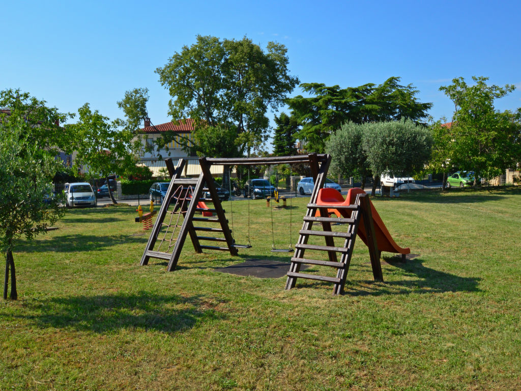 Mehrfamilienhaus "Nika". Im Ortsteil Punta, 2 km vom Zentrum von Umag, sonnige Lage, 300 m vom Meer, 300 m vom Strand. Zur Mitbenutzung: Grundstück 1'500 m2 (eingezäunt), gepflegter Garten, Schwimmbad (8 x 4 m, 135 cm tief, saisonale Verfügbarkeit: 25.Apr.-19.Sep.). Aussendusche, Sprudelbad, Grill. Im Hause: Internetzugang, Fahrräder vorhanden (extra). Zur Verfügung: Boot (extra). Parkplatz. Einkaufsgeschäft, Restaurant 500 m, Kieselstrand 300 m. Tennis 200 m, Kinderspielplatz 20 m. Während des ATP-Turniers 22.07.2022. - 31.07.2022., ist erhöhter Lärm möglich.