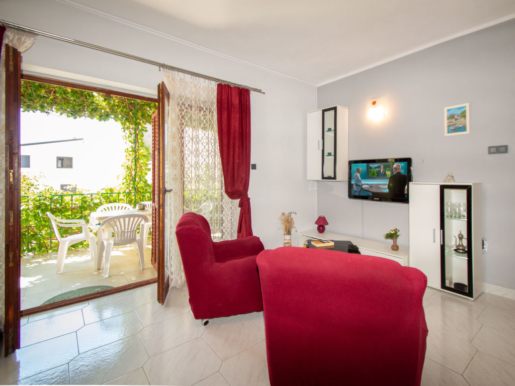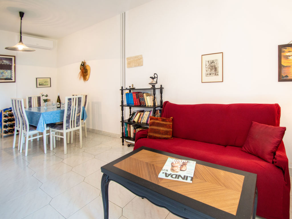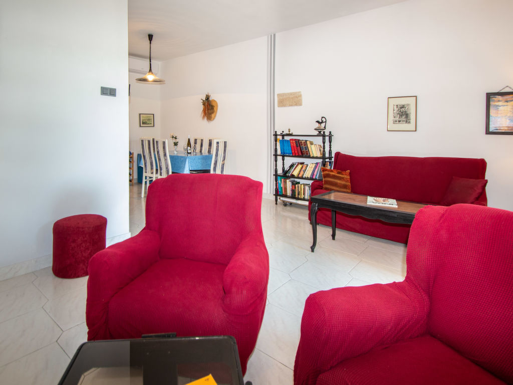 3-Zimmer-Wohnung 94 m2, im Erdgeschoss, Südostlage. Wohn-/Esszimmer 35 m2 mit Sat-TV (Flachbildschirm), Klimaanlage. Ausgang zur Terrasse. 1 Zimmer mit 1 franz. Bett (160 cm, Länge 200 cm). Ausgang zum Balkon. 1 Zimmer mit 1 Doppelbett (2 x 90 cm, Länge 200 cm). Ausgang zum Balkon. Offene Küche (4 Kochplatten, Backofen, Toaster, Wasserkocher, Tiefkühler, elektrische Kaffeemaschine). Bad/WC. Klimaanlage (extra). Balkon 4 m2, Terrasse 20 m2 teilweise überdacht. Terrassenmöbel. Eingeschränkte Sicht auf das Meer. Zur Verfügung: Waschmaschine, Haartrockner. Internet (Wireless LAN, gratis).