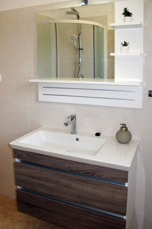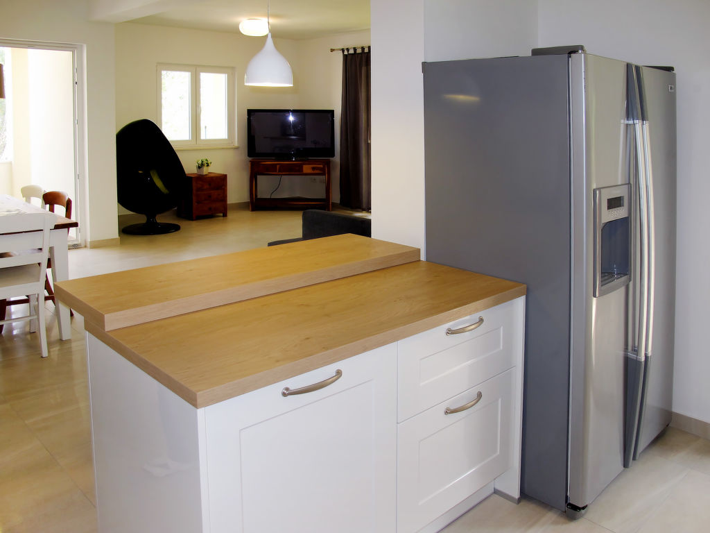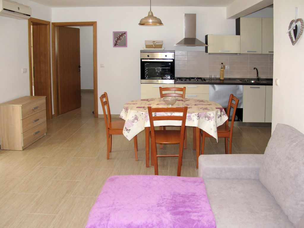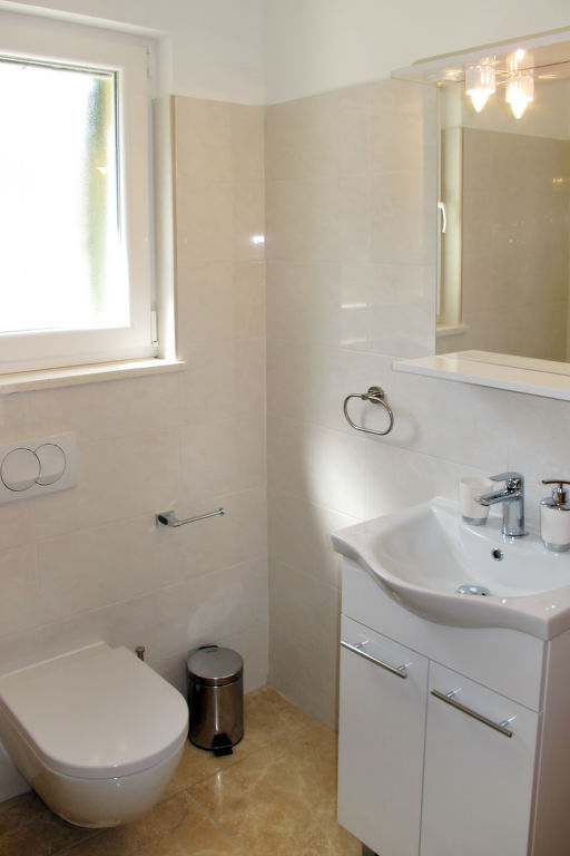 Einfamilienhaus "Lara (ZAD717)", auf 2 Stockwerken, Baujahr 2016. 35 km vom Zentrum von Zadar, am Ortsrand, 2 km vom Zentrum von Pridraga, 6 km vom Zentrum von Novigrad, am Hang, 10 m vom Meer, 50 m vom Strand. Zur Alleinbenutzung: Grundstück 470 m2 (eingezäunt). Aussendusche, Terrasse (12 m2), Gartenmöbel, Grill. Im Hause: Internetzugang, Waschmaschine. Parkplatz (für 3 Autos) beim Haus auf dem Grundstück. Einkaufsgeschäft 2 km, Supermarkt 6 km, Felsstrand 50 m. Das Haus besteht aus 2 Ferienwohnungen, die auch als Einheit gemietet werden können.