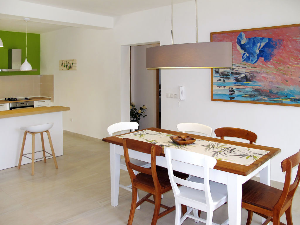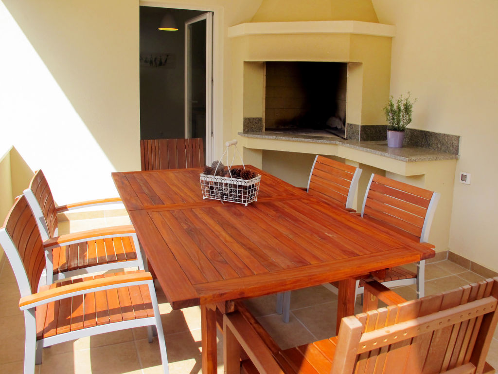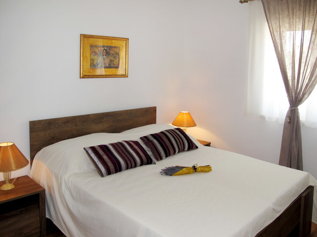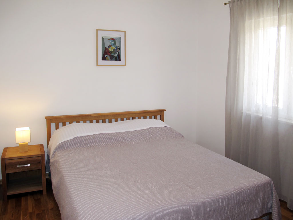 7-Zimmer-Haus 170 m2 auf 2 Stockwerken. Wohn-/Esszimmer mit 1 Doppeldiwanbett (145 cm, Länge 200 cm), Sat-TV und Klimaanlage. Ausgang zur Terrasse. 1 Zimmer mit 1 franz. Bett (160 cm, Länge 200 cm). 1 Zimmer mit 1 Doppelbett. Offene Küche (4 Kochplatten, Backofen, Geschirrspüler, Tiefkühler). Bad/WC mit Eckbadewanne. Obergeschoss: (Aussentreppe) Wohn-/Esszimmer mit Sat-TV und Klimaanlage. Ausgang zum Balkon. 2 Zimmer, jedes Zimmer mit 1 Doppelbett (160 cm, Länge 200 cm). 1 Zimmer mit 1 Doppelbett (160 cm, Länge 200 cm), Dusche/WC. Offene Küche (2 Kochplatten, Backofen, Geschirrspüler, 2 Glaskeramikherd Platten, Toaster, Wasserkocher, Tiefkühler, elektrische Kaffeemaschine). Dusche/WC. Klimaanlage, Warmluftheizung. Zur Verfügung: Bügeleisen. Internet (Wireless LAN, gratis). Maximal 2 Haustiere/Hunde erlaubt.