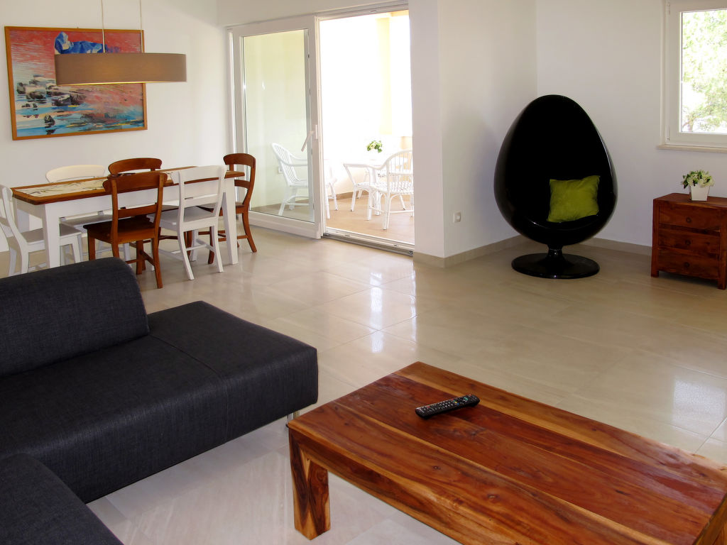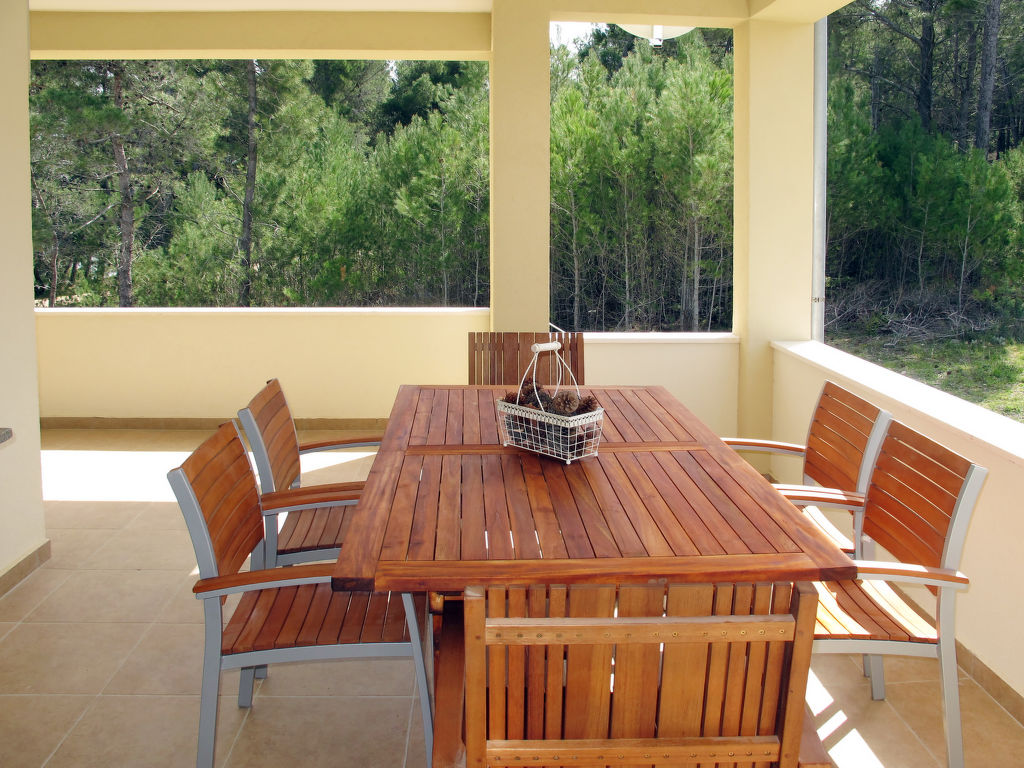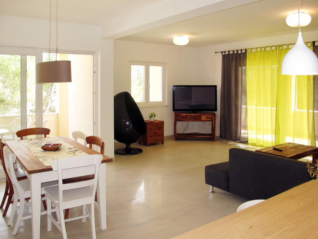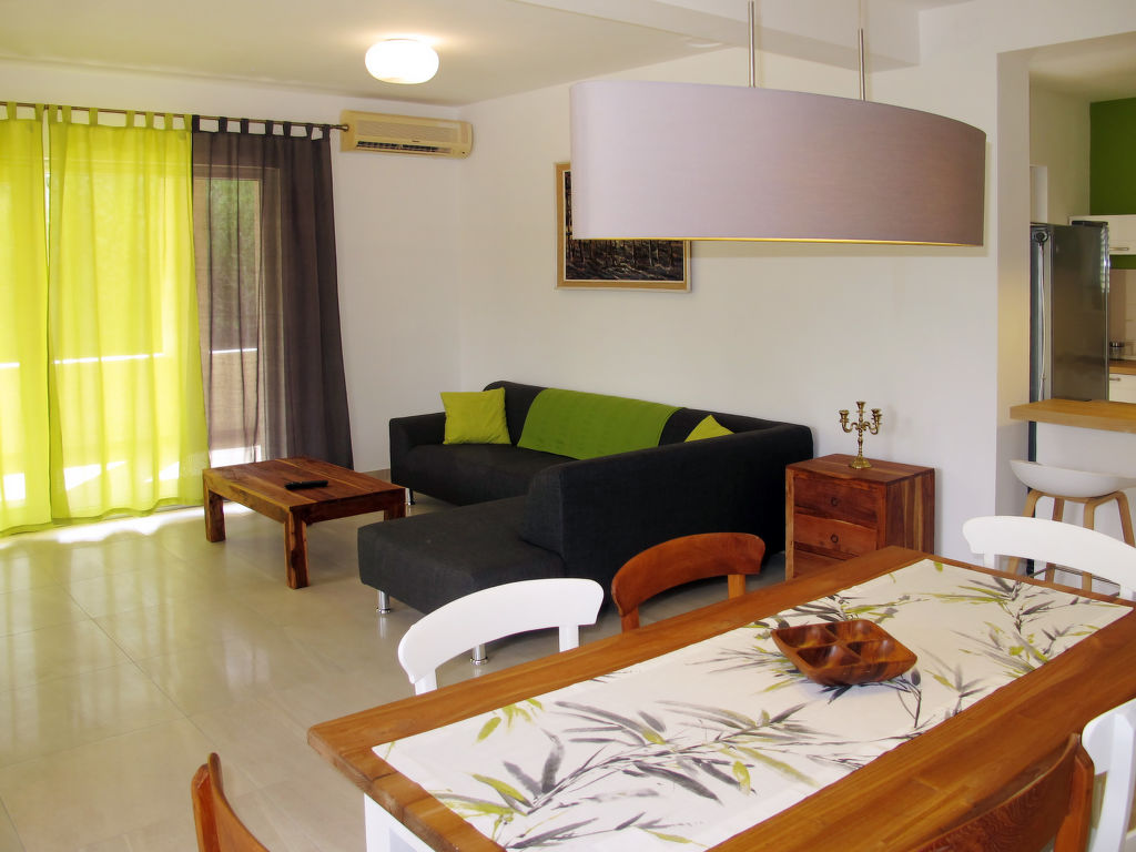 7-Zimmer-Haus 170 m2 auf 2 Stockwerken. Wohn-/Esszimmer mit 1 Doppeldiwanbett (145 cm, Länge 200 cm), Sat-TV und Klimaanlage. Ausgang zur Terrasse. 1 Zimmer mit 1 franz. Bett (160 cm, Länge 200 cm). 1 Zimmer mit 1 Doppelbett. Offene Küche (4 Kochplatten, Backofen, Geschirrspüler, Tiefkühler). Bad/WC mit Eckbadewanne. Obergeschoss: (Aussentreppe) Wohn-/Esszimmer mit Sat-TV und Klimaanlage. Ausgang zum Balkon. 2 Zimmer, jedes Zimmer mit 1 Doppelbett (160 cm, Länge 200 cm). 1 Zimmer mit 1 Doppelbett (160 cm, Länge 200 cm), Dusche/WC. Offene Küche (2 Kochplatten, Backofen, Geschirrspüler, 2 Glaskeramikherd Platten, Toaster, Wasserkocher, Tiefkühler, elektrische Kaffeemaschine). Dusche/WC. Klimaanlage, Warmluftheizung. Zur Verfügung: Bügeleisen. Internet (Wireless LAN, gratis). Maximal 2 Haustiere/Hunde erlaubt.