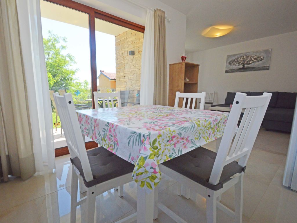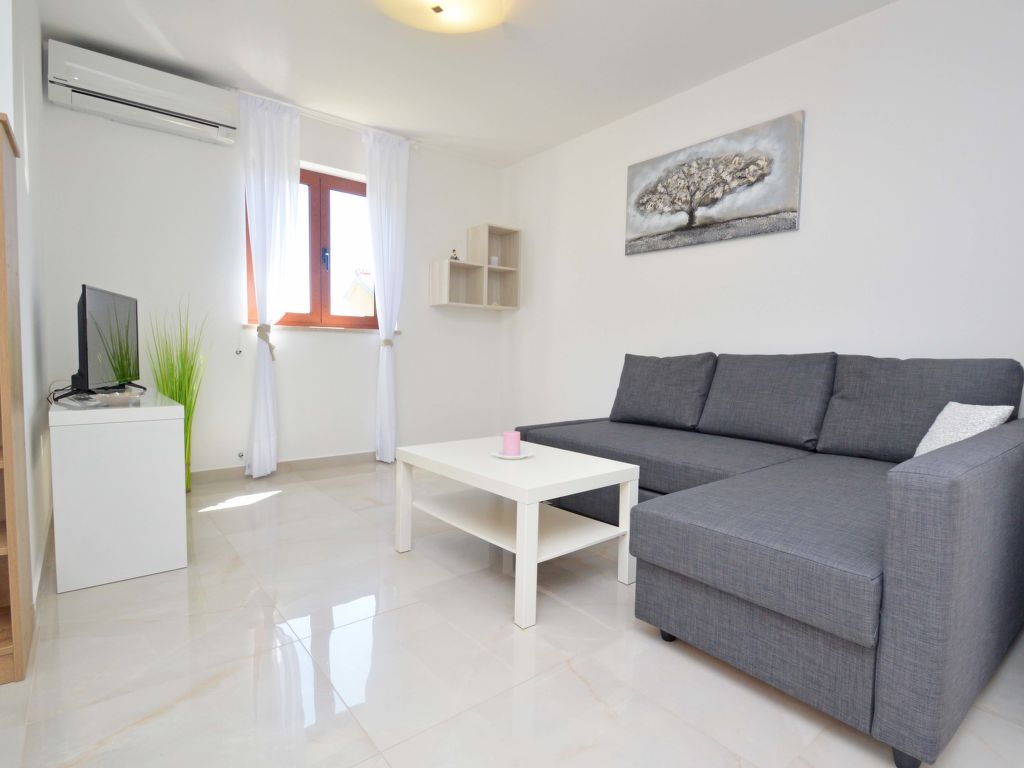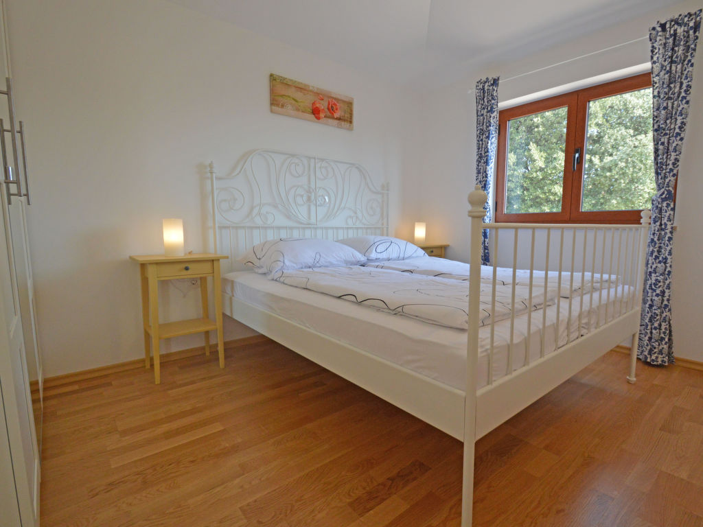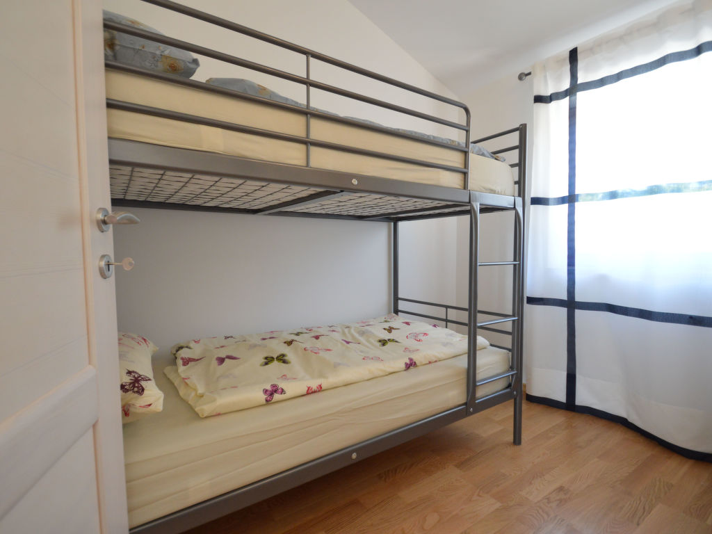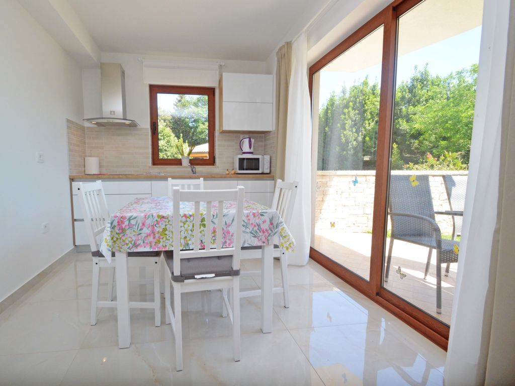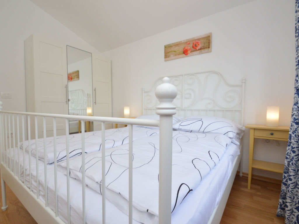 3-Zimmer-Wohnung 50 m2, im Erdgeschoss. Wohn-/Esszimmer mit 1 Doppeldiwanbett (150 cm, Länge 200 cm), Sat-TV (Flachbildschirm), Klimaanlage. Ausgang zum Garten, zur Terrasse. 1 Zimmer mit 1 Doppelbett (2 x 80 cm, Länge 200 cm). 1 Zimmer mit 1 x 2 Etagenbetten (80 cm, Länge 200 cm). Offene Küche (Geschirrspüler, 4 Glaskeramikherd Platten, Mikrowelle, Tiefkühler, elektrische Kaffeemaschine). Dusche/WC. Terrasse 7 m2, überdacht. Terrassenmöbel. Zur Verfügung: Waschmaschine, Haartrockner. Internet (Wireless LAN, gratis). Die Ferienwohnungen HR2205.105.1 und HR2205.105.2 verfügen über einen Garten zur gemeinsamen Nutzung (60 m2).