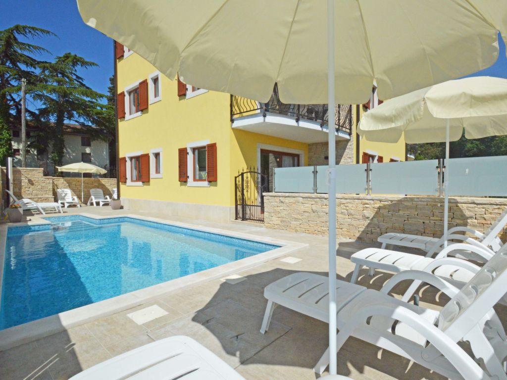 Savudrija 7 km von Umag: Mehrfamilienhaus "Elia". Sonnige Lage, 800 m vom Meer, 800 m vom Strand. Zur Mitbenutzung: Grundstück 600 m2 (eingezäunt), Schwimmbad eckig (7 x 3 m, 24 m2, 140 cm tief, saisonale Verfügbarkeit: 30.Mar.-19.Okt.) mit Innentreppe. Aussendusche, Terrasse (25 m2), Gartenmöbel, Grill. Im Hause: Internetzugang. Parkplatz beim Haus auf dem Grundstück. Einkaufsgeschäft 1.2 km, Restaurant 1.2 km, Steinstrand 1 km, Felsstrand 800 m. Golfplatz 1.5 km, Tennis 2 km, Wanderwege ab Haus 500 m.