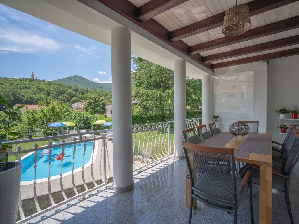 Doppelhaus "Zorica", auf 2 Stockwerken. Oberhalb von Opatija, im Weiler Mihelići, 1.7 km vom Zentrum von Matulji, 5 km vom Zentrum von Opatija, ruhige, sonnige Lage, 3.5 km vom Meer, 3.5 km vom Strand, in einer Sackgasse, im Grünen. Zur Alleinbenutzung: Grundstück 1'300 m2 mit Rasen 200 m2, Pflanzen, Schwimmbad (32 m2, 140 cm tief, 20.04.-13.10.). Aussendusche, Terrasse (50 m2), Gartenmöbel, Grill. Im Hause: Internetzugang, Waschmaschine, Wäschetrockner. Parkplatz (für 3 Autos) beim Haus auf dem Grundstück. Einkaufsgeschäft 1.7 km, Supermarkt 1.7 km, Restaurant 200 m, Kieselstrand 3.5 km, betonierter Strand 3.5 km. Das veranstalten von Feiern ist nicht gestattet.