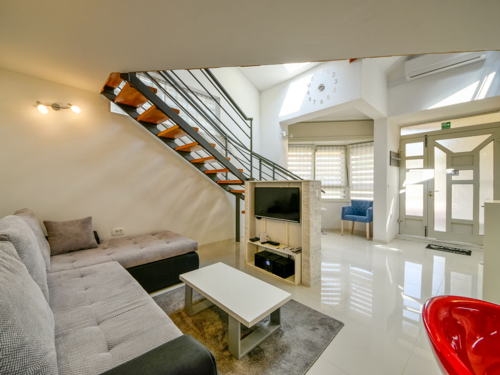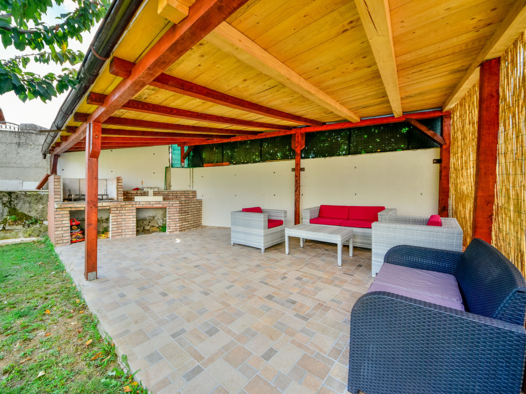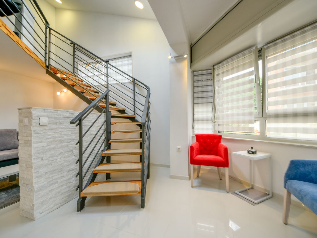 Matulji: Doppelhaus "Lana 1", auf 2 Stockwerken. Im Weiler Trinajstići, 2.5 km vom Zentrum von Matulji, 6.5 km vom Zentrum von Opatija, ruhige Lage, 5 km vom Meer. Zur Alleinbenutzung: Rasen 60 m2, Bäumen. Aussendusche, Terrasse (40 m2), Gartenmöbel, Grill. Im Hause: Internetzugang, Sprudelbad, Tischtennis, Waschmaschine. Parkplatz (für 2 Autos) beim Haus auf dem Grundstück. Einkaufsgeschäft 600 m, Supermarkt 2 km, Restaurant 1.5 km, Kieselstrand 5 km, betonierter Strand 5 km.