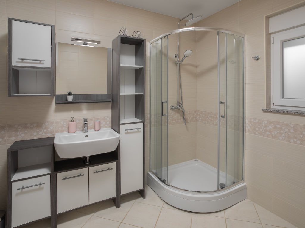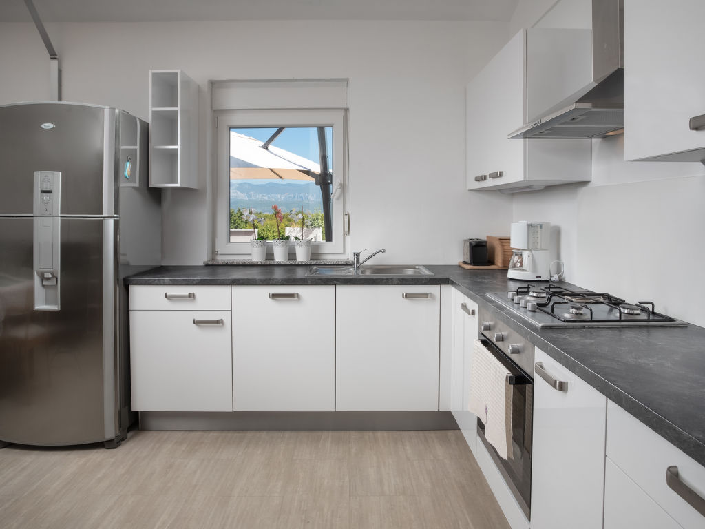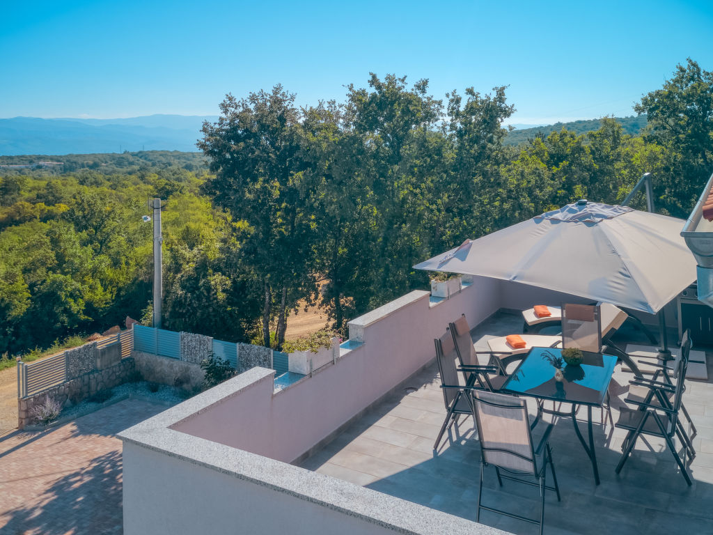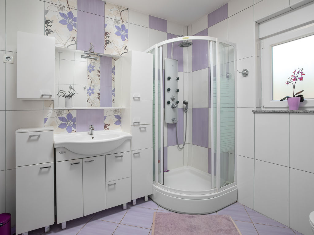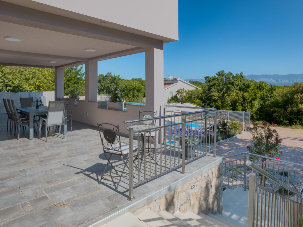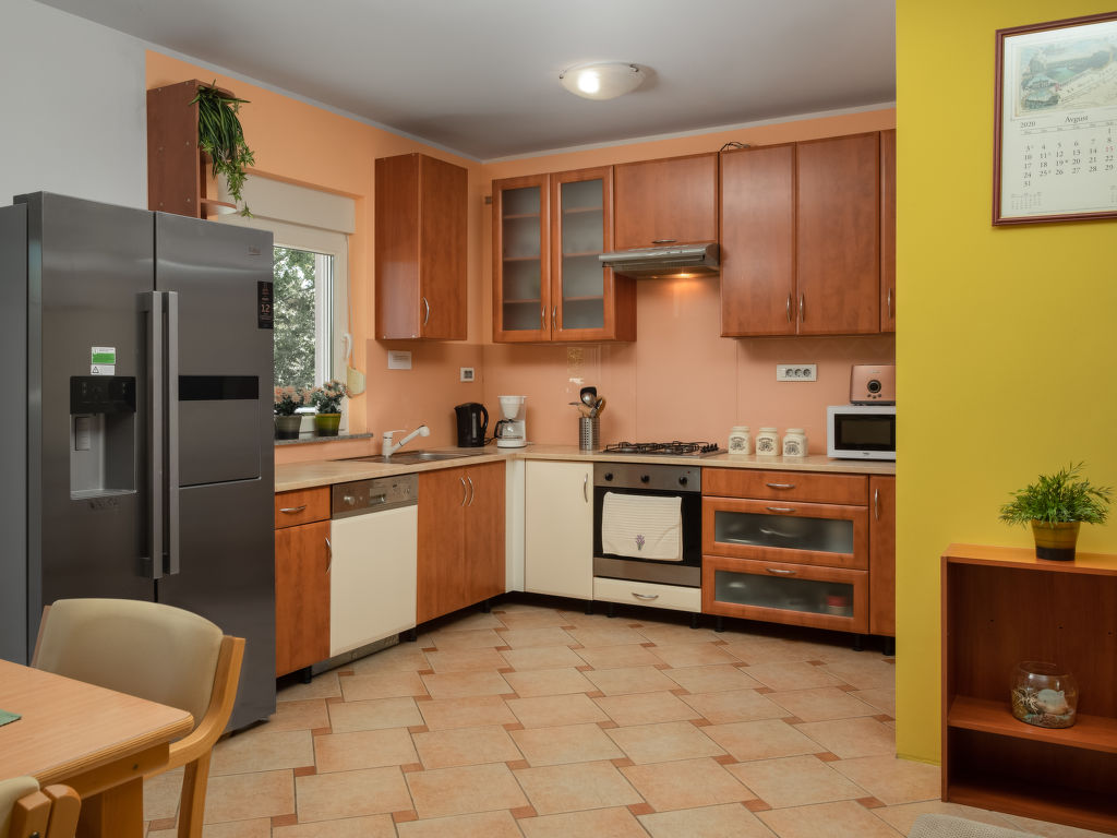 Einfamilienhaus "Lavendel", auf 2 Stockwerken. Im Weiler Donja Hlapa, 12 km vom Zentrum von Malinska, 3.5 km vom Zentrum von Klimno, 16 km vom Zentrum von Krk, am Hang, 2.5 km vom Meer, 2.5 km vom Strand. Zur Alleinbenutzung: Grundstück 500 m2 mit Pflanzen und Bäumen, Schwimmbad beheizt (8 x 4 m, 150 cm tief, 15.03.-15.11.). Aussendusche, Sprudelbad. Im Hause: Internetzugang, Waschmaschine. Zufahrt bis 200 m zum Haus (Naturweg). Parkplatz (für 3 Autos) beim Haus auf dem Grundstück. Supermarkt 2 km, Sandstrand 5 km, Kieselstrand 2.5 km. Bitte beachten: Flugplatz 14 km vom Haus. Die Wohneinheit besteht aus 2 Wohnungen, die aber zusammen vermietet werden. Schwimmbad beheizt (extra).