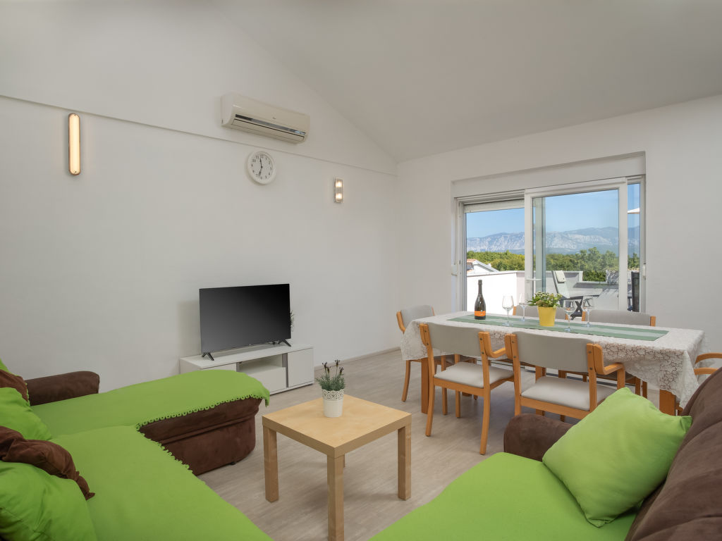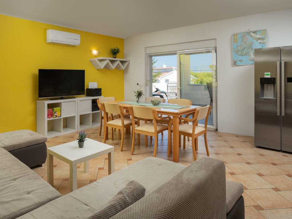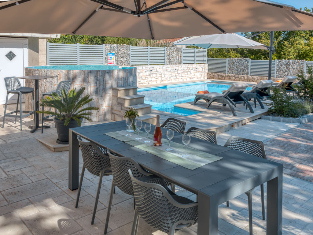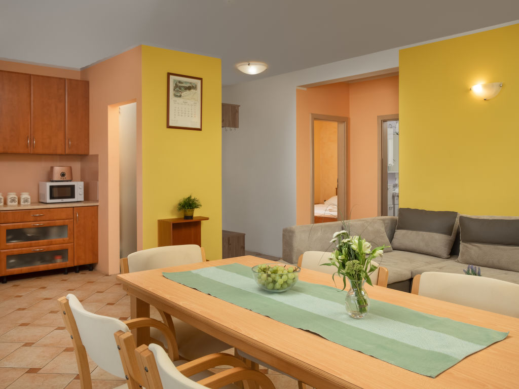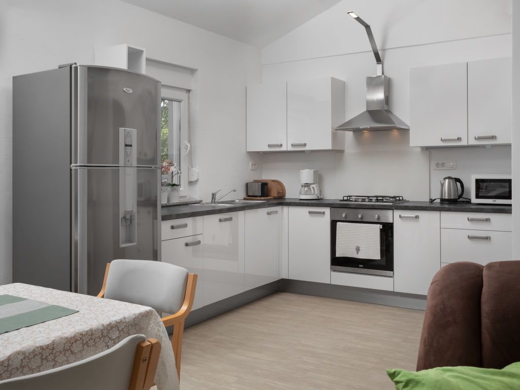Einfamilienhaus "Lavendel", auf 2 Stockwerken. Im Weiler Donja Hlapa, 12 km vom Zentrum von Malinska, 3.5 km vom Zentrum von Klimno, 16 km vom Zentrum von Krk, am Hang, 2.5 km vom Meer, 2.5 km vom Strand. Zur Alleinbenutzung: Grundstück 500 m2 mit Pflanzen und Bäumen, Schwimmbad beheizt (8 x 4 m, 150 cm tief, 15.03.-15.11.). Aussendusche, Sprudelbad. Im Hause: Internetzugang, Waschmaschine. Zufahrt bis 200 m zum Haus (Naturweg). Parkplatz (für 3 Autos) beim Haus auf dem Grundstück. Supermarkt 2 km, Sandstrand 5 km, Kieselstrand 2.5 km. Bitte beachten: Flugplatz 14 km vom Haus. Die Wohneinheit besteht aus 2 Wohnungen, die aber zusammen vermietet werden. Schwimmbad beheizt (extra).
