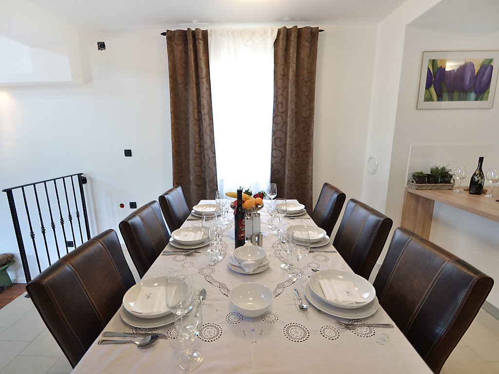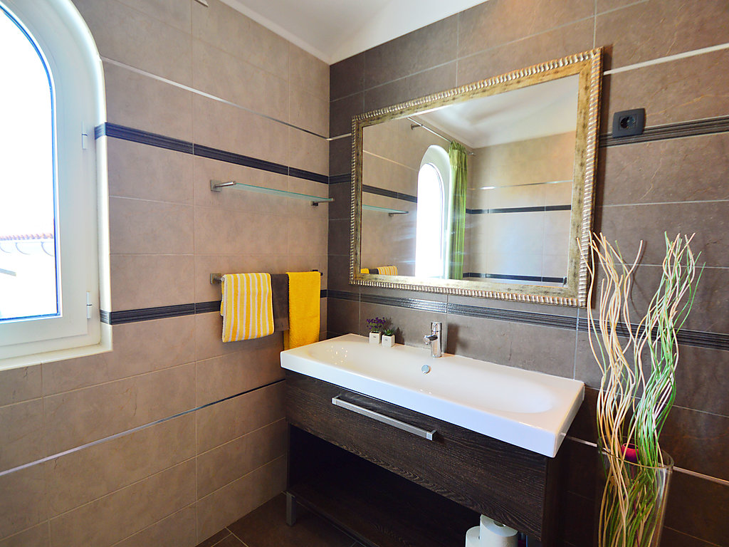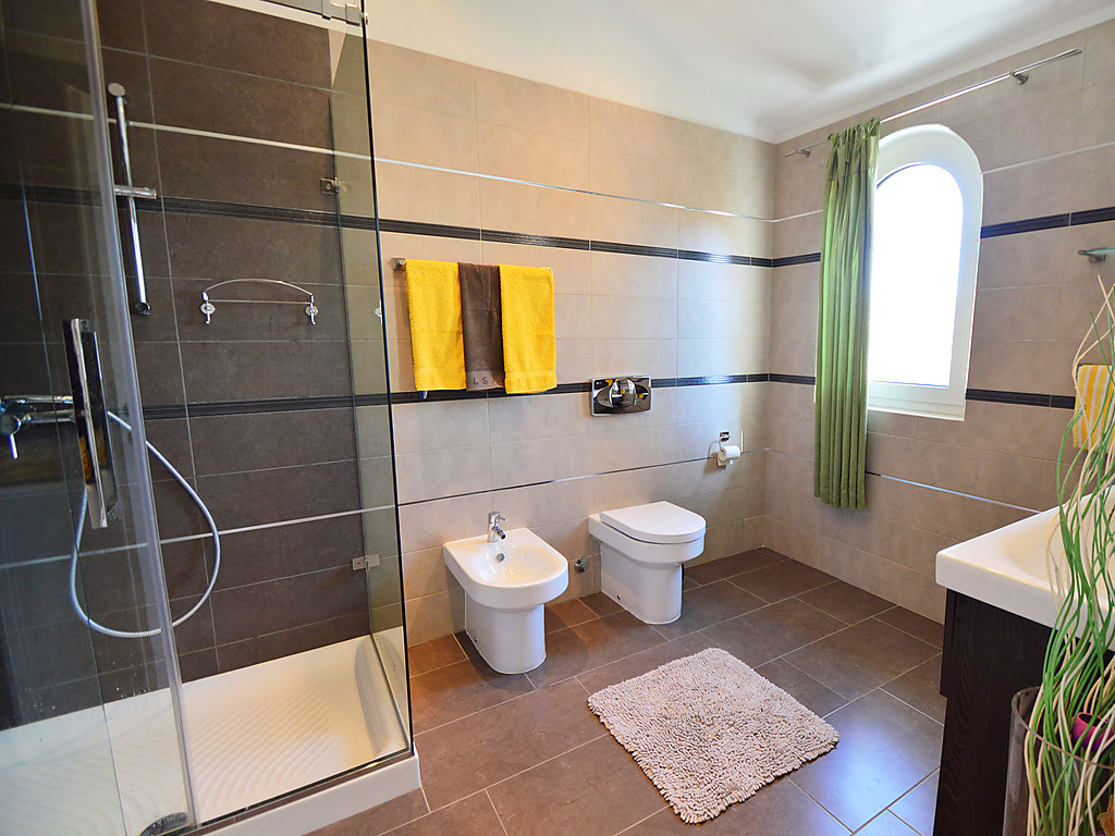 5-Zimmer-Villa 140 m2 auf 2 Stockwerken, Ostlage. Grosses Wohn-/Esszimmer 75 m2, auf 2 Ebenen mit offenem Kamin und Kabel-TV (Flachbildschirm), Klimaanlage. Ausgang zur Terrasse. 1 Zimmer mit 1 Bett (90 cm, Länge 190 cm). Offene Küche (4 Kochplatten, Backofen, Geschirrspüler, Tiefkühler, elektrische Kaffeemaschine). Dusche/WC. Obergeschoss: 1 Zimmer mit 1 Bett (90 cm, Länge 200 cm). 2 Zimmer, jedes Zimmer mit 1 franz. Bett (160 cm, Länge 200 cm), Sat-TV (Flachbildschirm), Klimaanlage. Dusche/Bidet/WC. Terrasse 18 m2, überdacht. Terrassenmöbel, Liegestühle (6). Herrliche Panoramasicht auf das Meer und die Landschaft. Zur Verfügung: Bügeleisen. Internet (Wireless LAN, gratis).