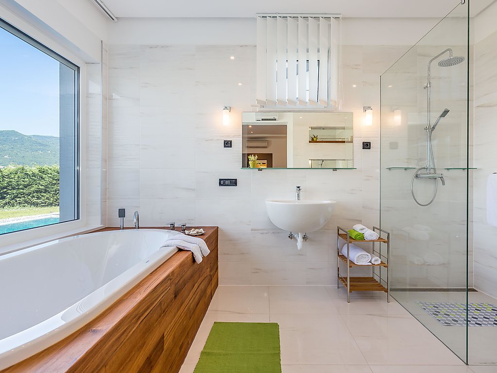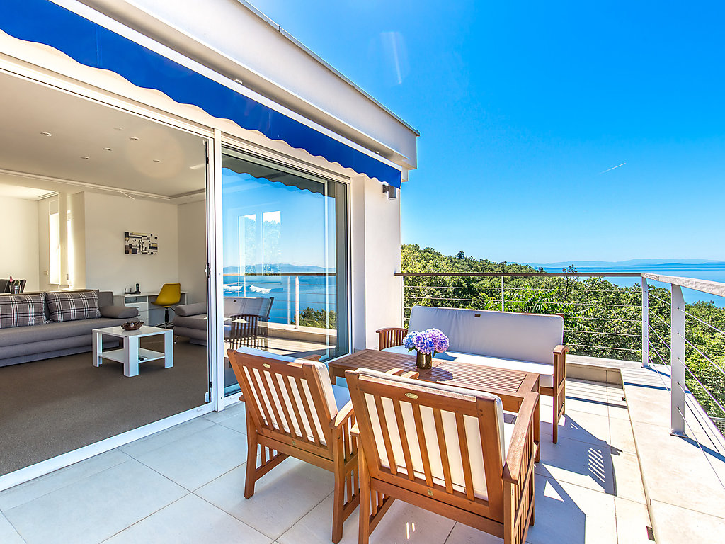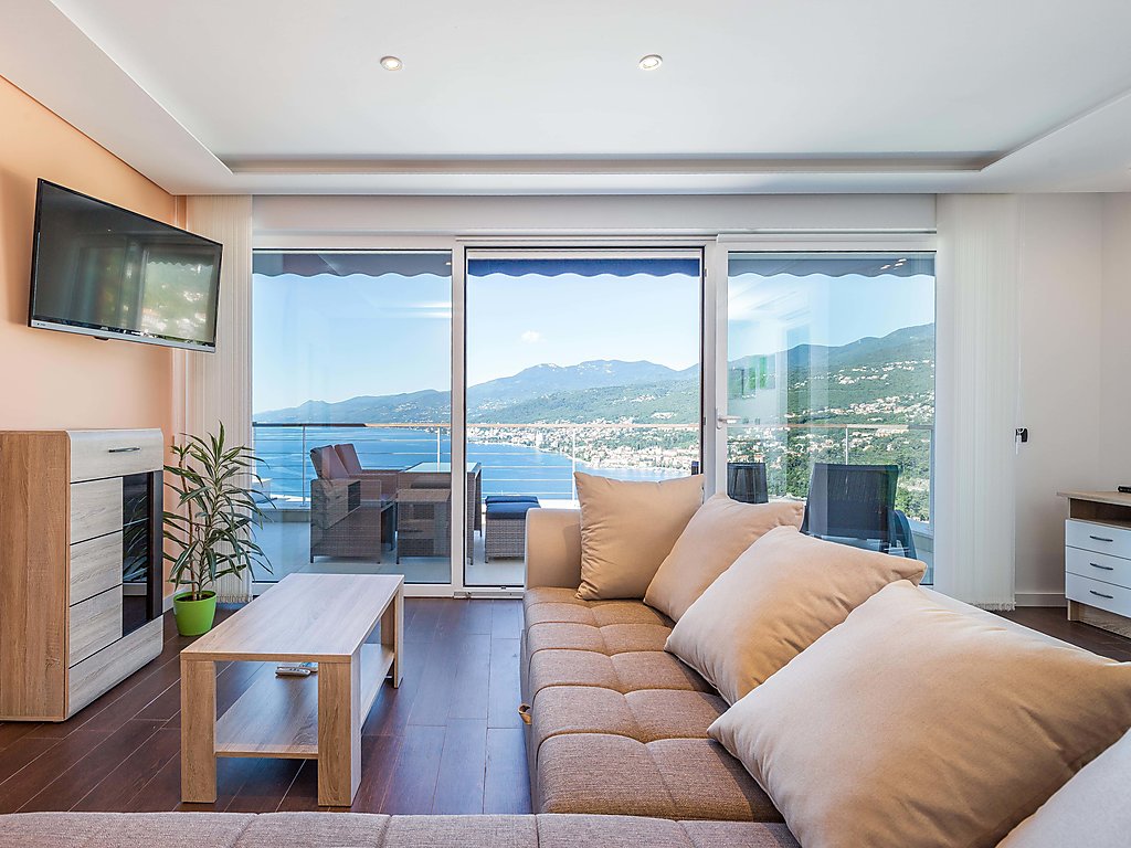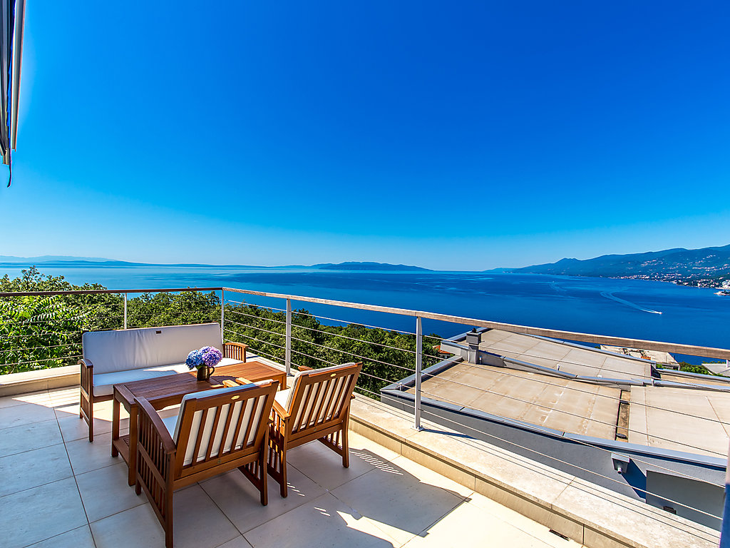 Matulji: Moderne, schöne Villa "Vista", auf 2 Stockwerken. 1.7 km vom Zentrum von Matulji, 3.5 km vom Zentrum von Opatija, ruhige, sonnige, erhöhte Lage, 2.5 km vom Meer, 2.5 km vom Strand, in einer Sackgasse. Zur Alleinbenutzung: Grundstück 1'050 m2 (eingezäunt), Rasen 300 m2, Schwimmbad eckig (32 m2, 150 - 160 cm tief, 01.06.-15.10.). Aussendusche, Grill. Im Hause: Internetzugang, Waschmaschine, Wäschetrockner. Parkplatz (für 6 Autos) beim Haus auf dem Grundstück. Einkaufsgeschäft, Supermarkt 700 m, Restaurant 2 km, Kieselstrand 2.5 km, betonierter Strand 2.5 km. Wanderwege ab Haus 2 km. Bitte beachten: geeignet für Familien. Die Nachbarschaft ist sehr lärmempfindlich. Ruhe und gutes Benehmen wird erwartet. Keine Vermietung an Jugendgruppen. Das veranstalten von Partys ist nicht gestattet. Das Haus besteht aus 3 Wohnungen vermietet als eine Einheit : eine Wohnung im Erdgeschoss und zwei Wohnungen im ersten Stock.