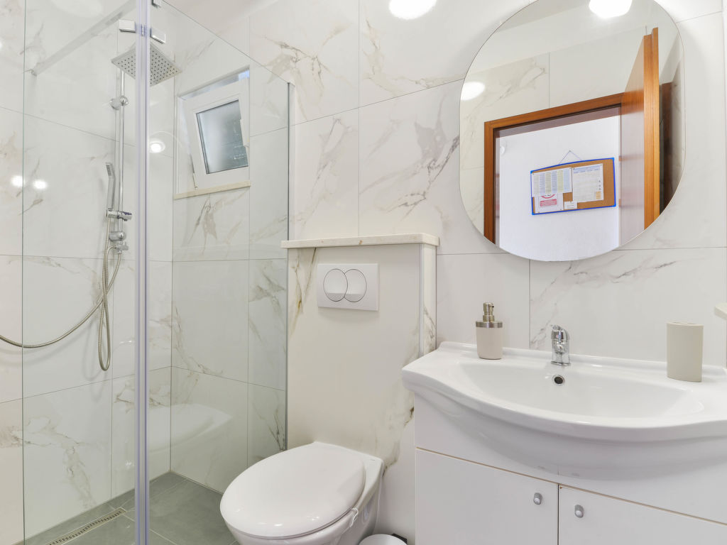Okrug Gornji (Čiovo), 6 km von Trogir: Schönes Mehrfamilienhaus "Villa Andjelka". 1 km vom Zentrum von Okrug Gornji, ruhige, sonnige, erhöhte Lage, 50 m vom Meer, 50 m vom Strand. Zur Mitbenutzung: Grundstück mit Rasen 65 m2, Liegewiese, Schwimmbad beheizt (33 m2, 120 - 150 cm tief, saisonale Verfügbarkeit: 25.Apr.-03.Okt.) mit Innentreppe. WC im Poolbereich, Aussendusche, Terrasse, Gartenmöbel, Grill. Im Hause: Internetzugang, Sauna (extra). Waschmaschine, Wäschetrockner. Parkplatz beim Haus auf dem Grundstück. Einkaufsgeschäft 200 m, Restaurant 1 km, Café 1 km, Kieselstrand 500 m, Felsstrand 50 m. Bitte beachten: In diesem Haus sind weitere Ferienwohnungen mietbar. Schwimmbad mit Gegenstromanlage und Hydromassage. Zur Mitbenutzung: Sommerküche. Parkplatz (15x3 m) für Anhänger. Boje auf Anfrage, kostenlos.