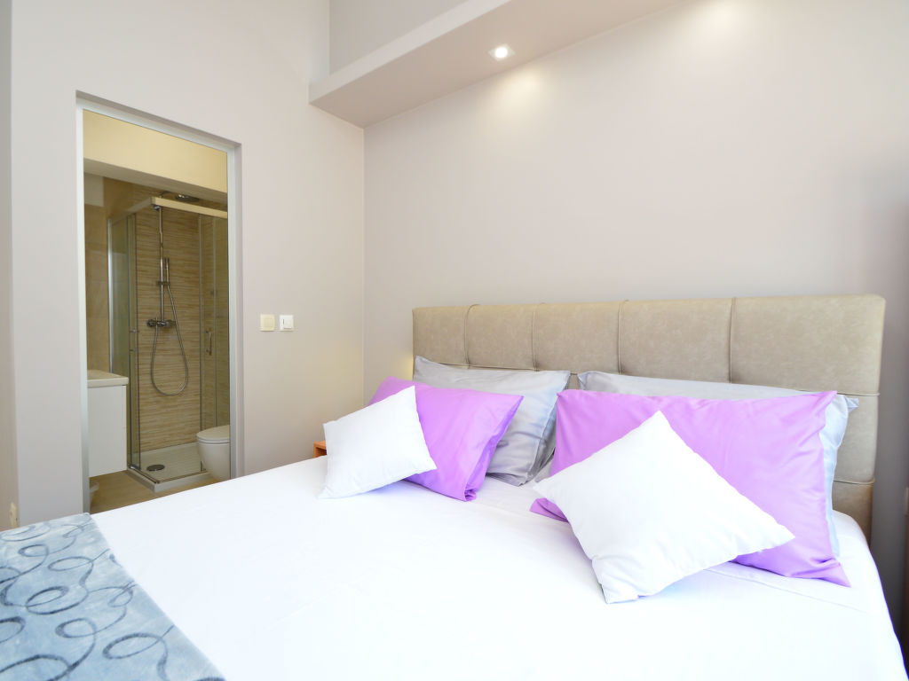 3-Zimmer-Wohnung 70 m2 im 2. Stock, Nordwestlage. Wohn-/Esszimmer mit 1 Diwanbett und Sat-TV (Flachbildschirm), Klimaanlage. Ausgang zur Terrasse. 1 Zimmer mit 1 franz. Bett (160 cm, Länge 200 cm), Dusche/WC und Sat-TV (Flachbildschirm), Klimaanlage. 1 Zimmer mit 1 franz. Bett (180 cm, Länge 200 cm), Sat-TV (Flachbildschirm), Klimaanlage. Offene Küche (Backofen, Geschirrspüler, 4 Glaskeramikherd Platten, Tiefkühler, elektrische Kaffeemaschine). Dusche/WC. Klimaanlage, Warmluftheizung (extra). Terrasse 40 m2. Terrassenmöbel. Herrliche Sicht auf das Meer. Zur Verfügung: Waschmaschine. Internet (Wireless LAN, gratis).